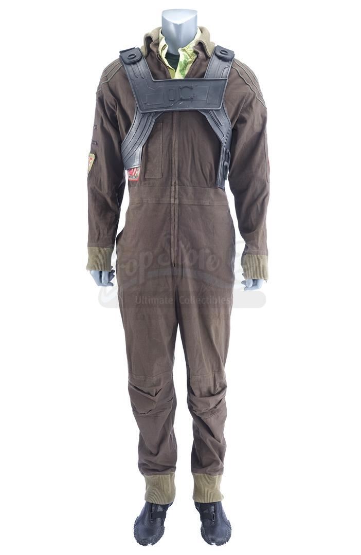 This lot will be auctioned on Thursday, July 1st. The auction will begin at 9:00am PDT and lots are sold sequentially via live auctioneer; tune in to the live streaming broadcast on auction day to follow the pace. Note other lots in the auction may close on June 29th or June 30th. Hoban "Wash" Washburne's (Alan Tudyk) jumpsuit and green shirt costume from Joss Whedon's sci-fi adventure Serenity. Wash wore his costume when he piloted Serenity. This lot consists of a dark green cotton blend zip-up jumpsuit with three patches on the chest and arms and "Wash" marked on the collar; a black rubber and urethane chest guard; a green floral-patterned button-up cotton shirt marked "W" on the collar; a dark green cotton shirt marked "W" on the collar; and two black cotton and rubber sneakers. It exhibits minor signs of wear from production, but remains in excellent overall condition. Estimate: $1,000 - 1,500