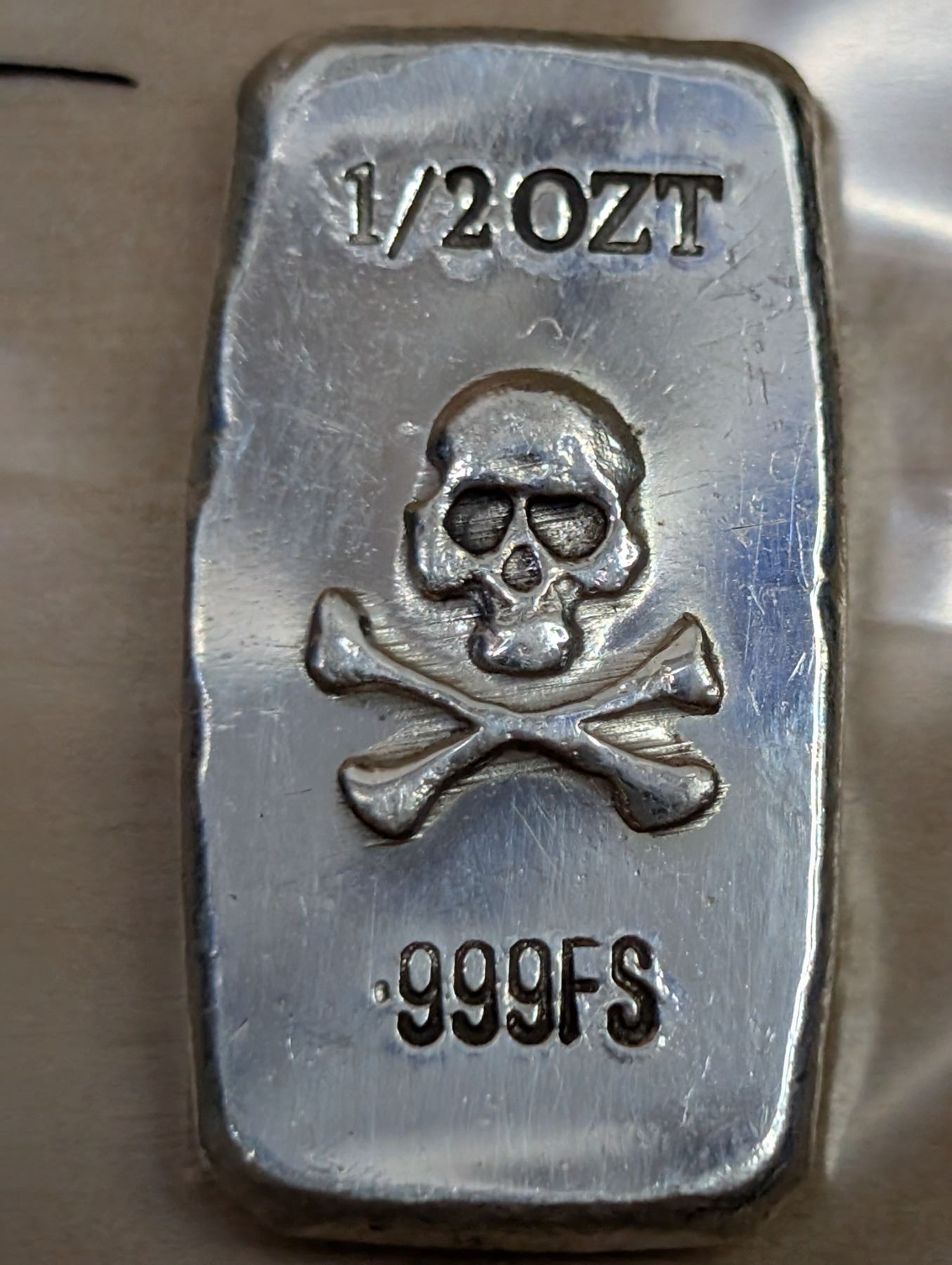 The 1/2 oz Pirate Skull silver round is made from .999 fine silver and features a design of a pirate skull, often paired with crossbones or other pirate-themed elements. These rounds are popular with collectors and enthusiasts of pirate lore, offering a unique and edgy design. The value is influenced by the current silver price and collector demand for this thematic piece.