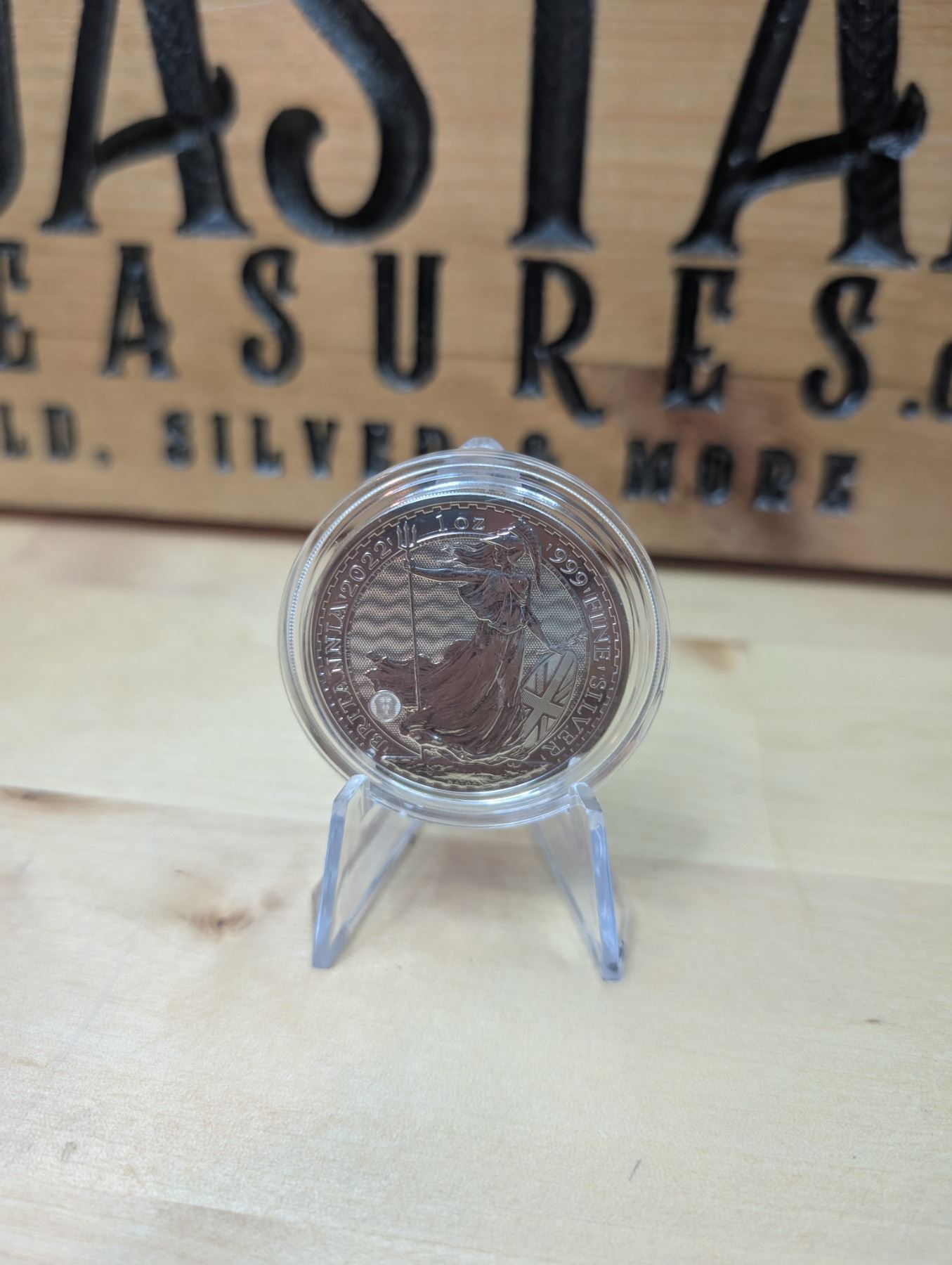 Britannia 2022 Silver Coin is part of the popular Britannia series, produced by the Royal Mint. It contains 1 ounce of .999 fine silver and features the iconic image of Britannia, symbolizing strength and resilience. The 2022 edition features an updated design with enhanced security features, such as a new background wave pattern and a holographic foil that changes in the light, making it more difficult to counterfeit. The coin is widely sought after by collectors and investors alike.