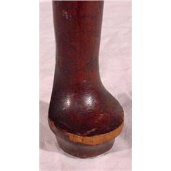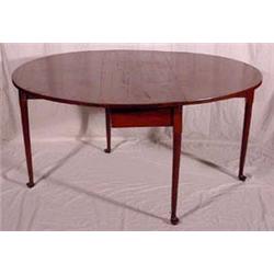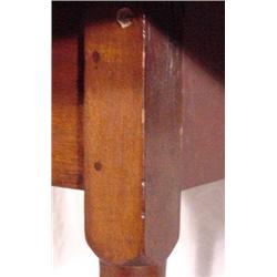 Cherry Queen Anne Type Swing Leg Drop Leaf Table; This is a nice old table that has been worked on. It appears that this table was pieced together about 100 years ago. It shows quality craftsmanship and has a nice surface throughout. Ca. 1900. 29"h x 57"w x 47"d with leaves open, 16.25"w with leaves down. Est. $200 - $300.