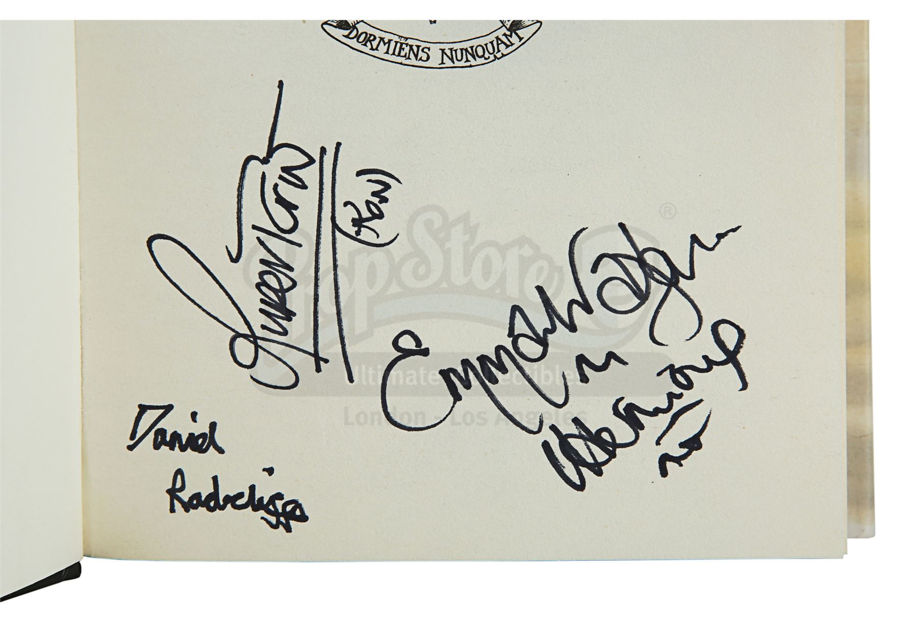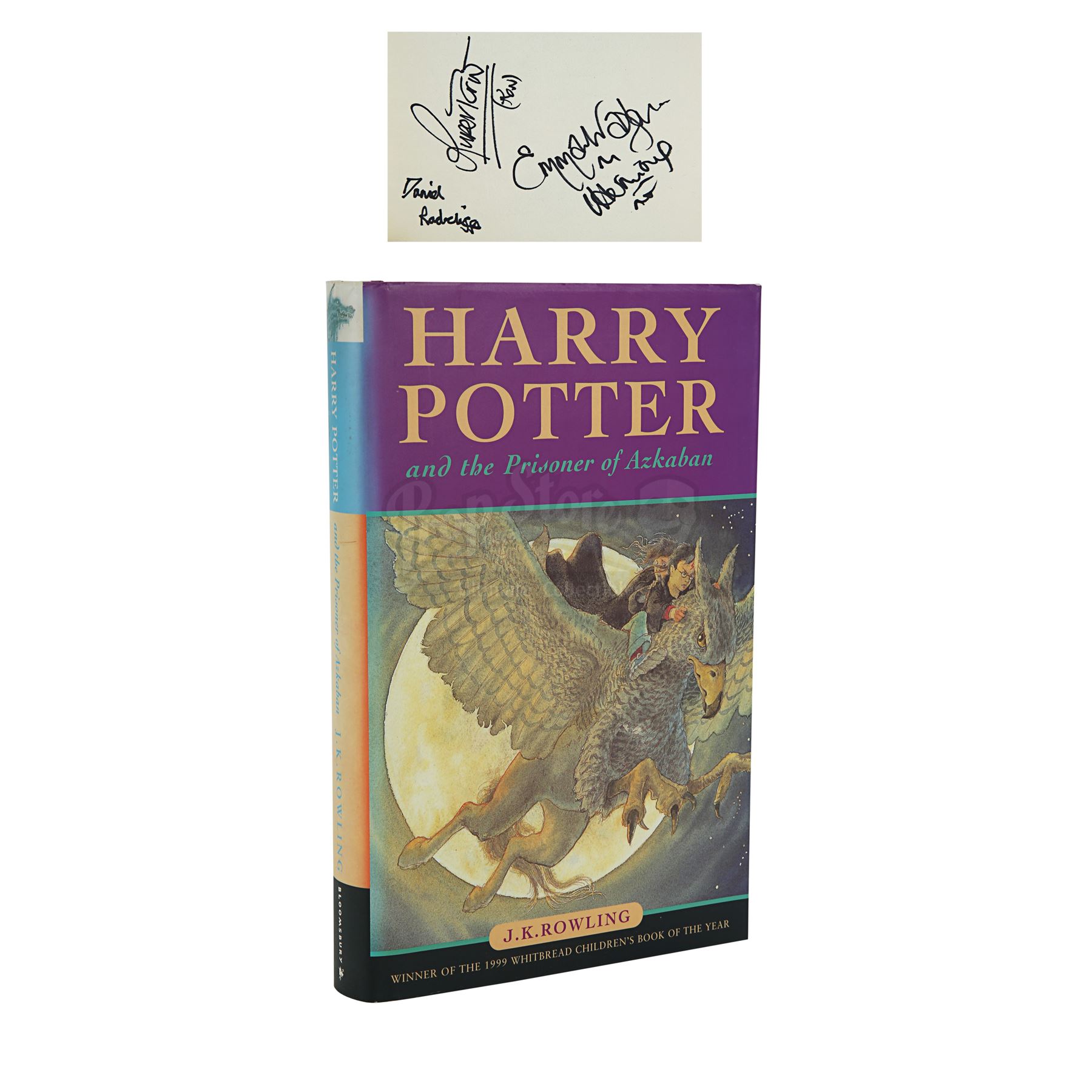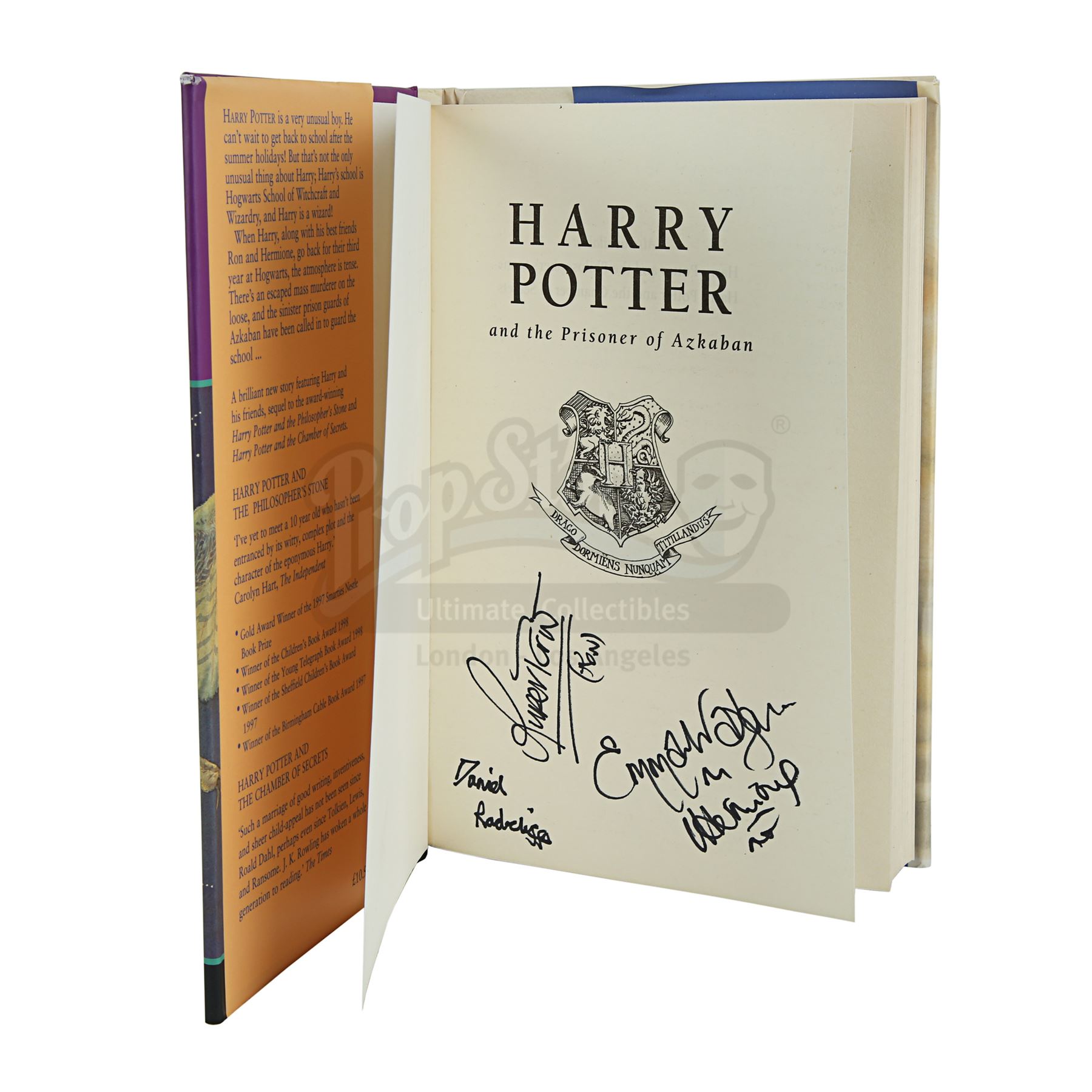 This lot will be auctioned on Tuesday, June 29th. The auction will begin at 9:00am PDT and lots are sold sequentially via live auctioneer; tune in to the live streaming broadcast on auction day to follow the pace. Note other lots in the auction may close on June 30th or July 1st. A hardback copy of Harry Potter and the Prisoner of Azkaban autographed by stars Daniel Radcliffe, Rupert Grint, and Emma Watson. The signatures are in black ink on the title page. The book jacket has some fading on the spine and creasing around the edges, but remains in overall excellent overall condition. Dimensions: 8.25" x 5.25" x 1.25" (21 cm x 31.5 cm x 3 cm) Estimate: $1,000 - 1,500