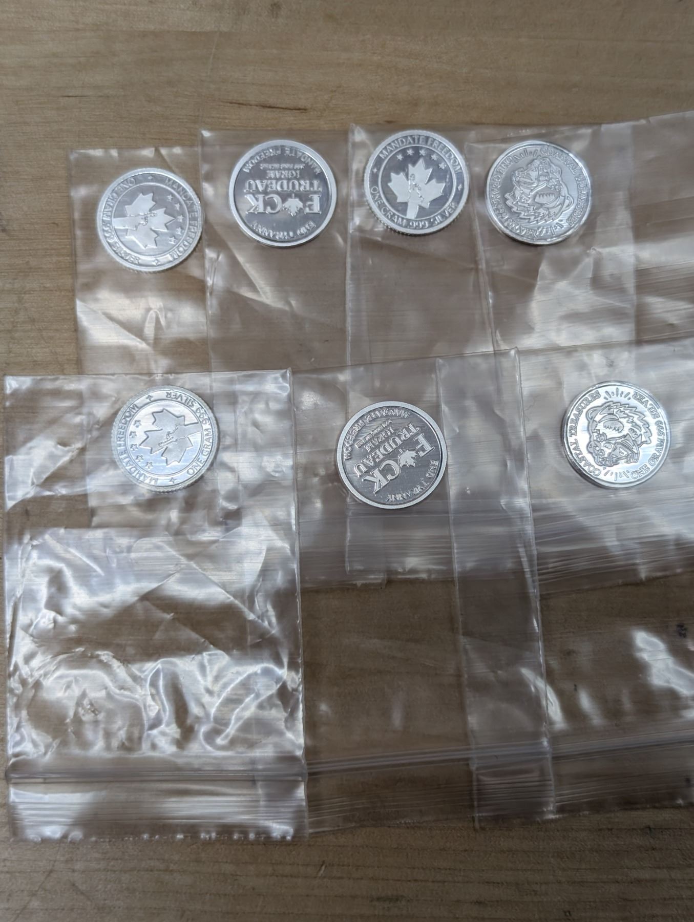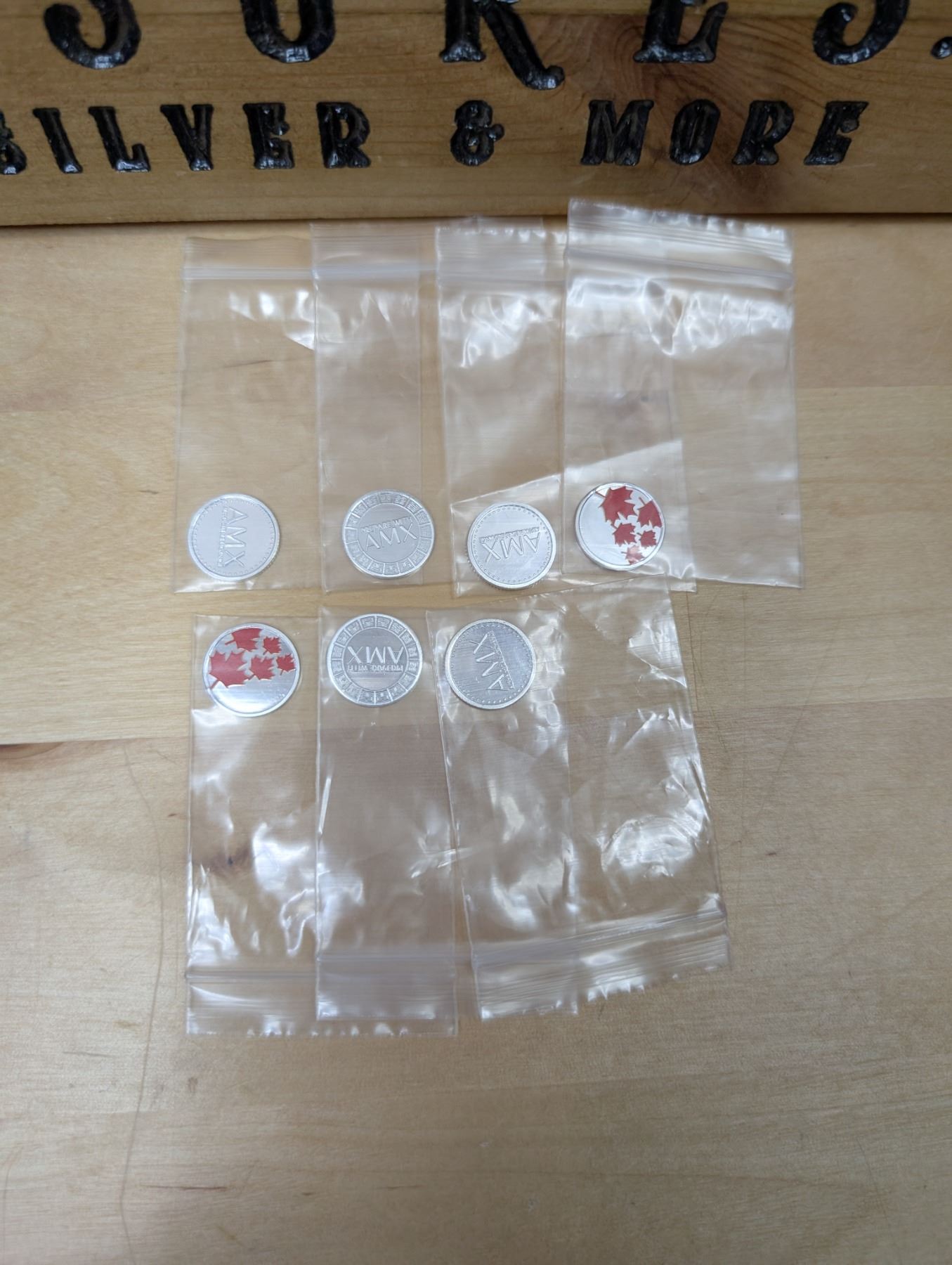 The 7 x 1g Mixed silver coins are a set of small silver coins, each weighing 1 gram, for a total of 7 grams of silver. These coins may feature various designs from different mints or themes. Popular among collectors, they offer a variety of artistic representations, and the value is determined by the current silver price and the uniqueness of the designs.