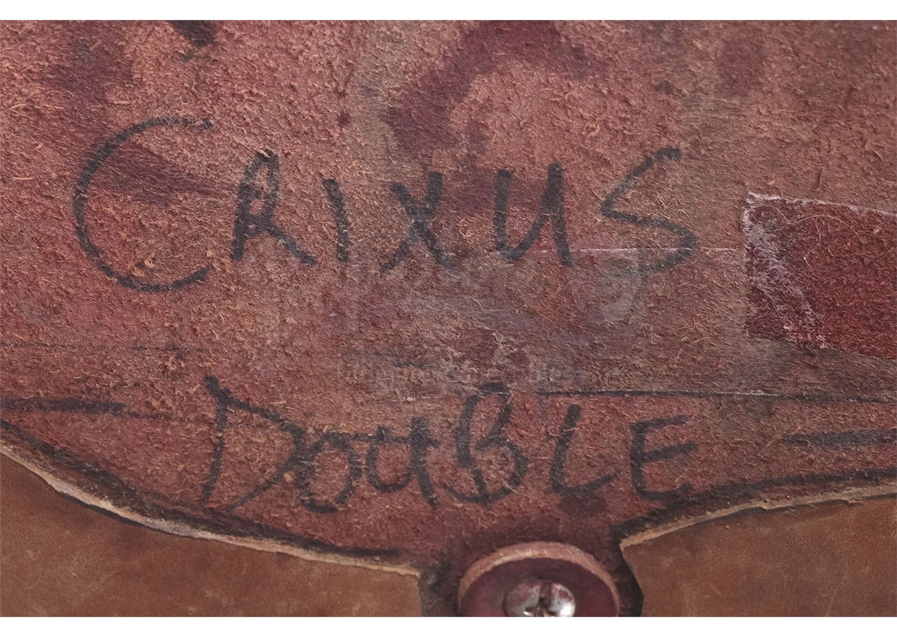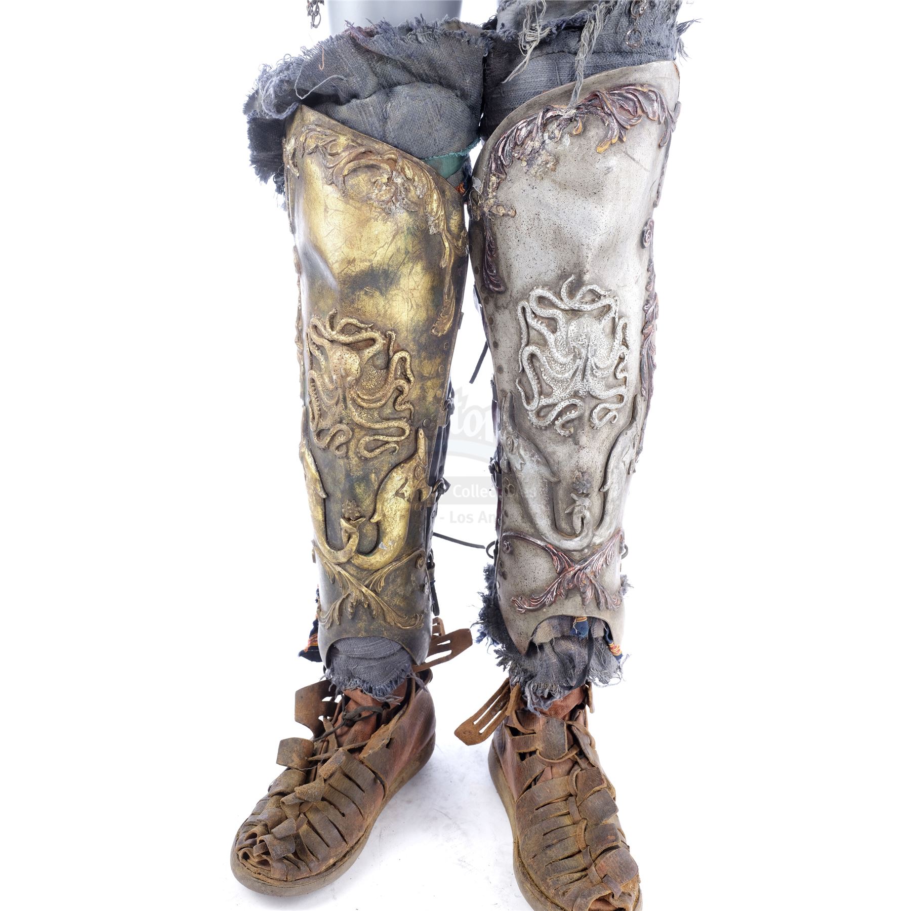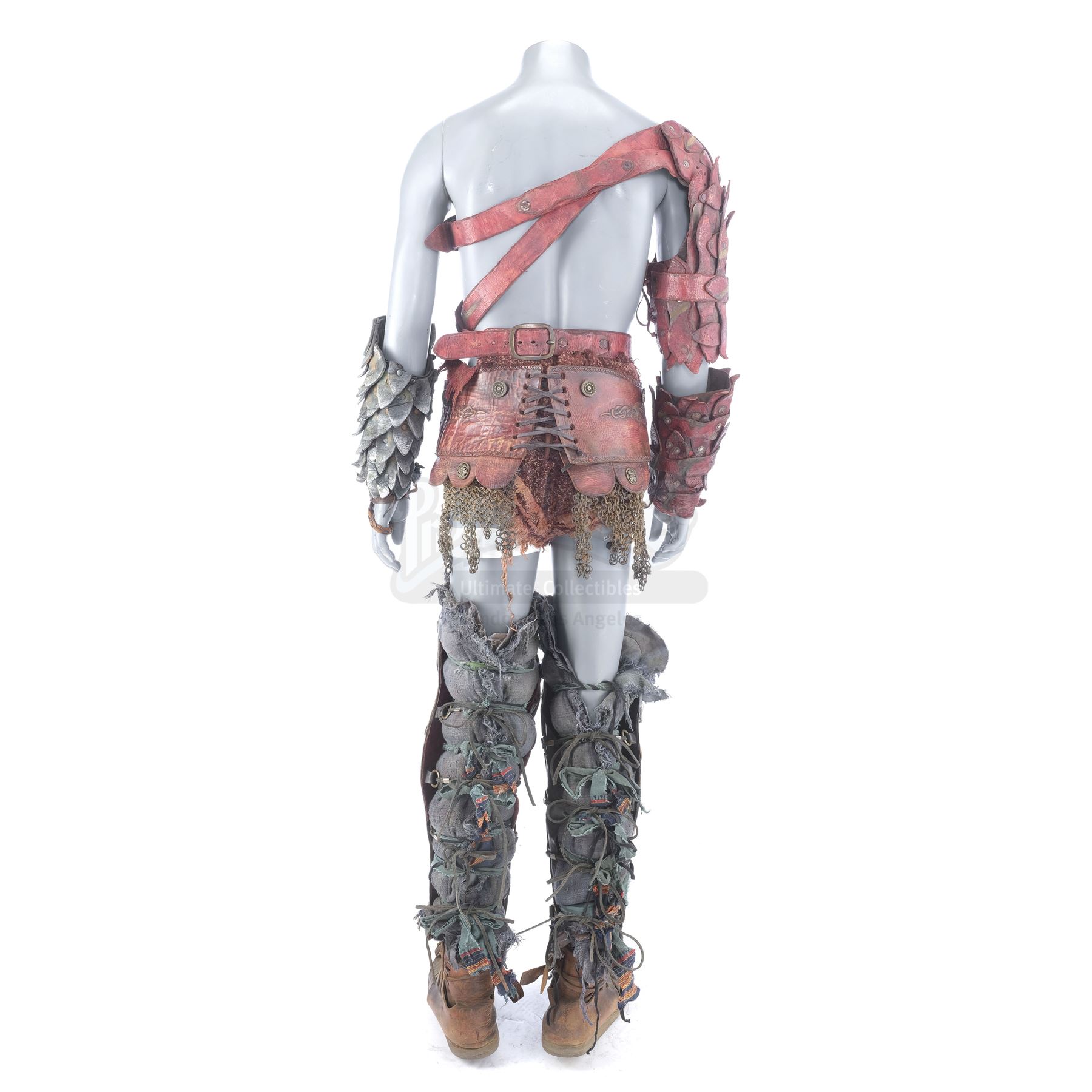 This lot will be auctioned on Thursday, July 1st. The auction will begin at 9:00am PDT and lots are sold sequentially via live auctioneer; tune in to the live streaming broadcast on auction day to follow the pace. Note other lots in the auction may close on June 29th or June 30th. Crixus' (Manu Bennett) battle armor from Steven S. DeKnight's historical action series Spartacus. Champion fighter Crixus wore his costume while he battled alongside fellow warrior Spartacus (Andy Whitfield/Liam Mcintyre) in the gladiatorial arena. This costume consists of a crimson leather manica with metal details, a silver-colored leather and metal gauntlet, a brown lace-up stunt leather belt with metal details, a brown cotton loincloth, a pair of gold-color and silver-color metal greaves with decorative accents throughout, a pair of blue cotton pads with decorative tassels, and a pair of brown leather sandals. Also included are three certificates of authenticity. The lot exhibits signs of use and wear, but remains in excellent overall condition Estimate: $2,000 - 3,000