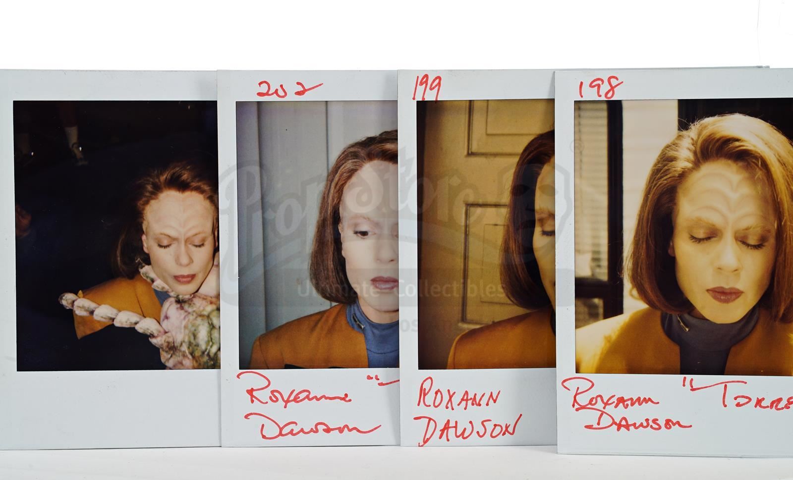 This lot will be auctioned on Thursday, July 1st. The auction will begin at 9:00am PDT and lots are sold sequentially via live auctioneer; tune in to the live streaming broadcast on auction day to follow the pace. Note other lots in the auction may close on June 29th or June 30th. Key cast continuity photographs from the production of the sci-fi series Star Trek: Voyager. In the series, Kathryn Janeway (Kate Mulgrew) attempted to bring the U.S.S. Voyager home after it got stranded in the Delta Quadrant. This lot consists of 244 hand-marked make-up and wardrobe continuity Polaroids of the key cast, including Mulgrew, Roxann Dawson (Torres), Garrett Wang (Kim), and Robert Duncan McNeill (Paris), each hole-punched for storage and protected with plastic sleeves. All are in excellent overall condition with minimal bending or creasing from production use. Dimensions (each): 4" x 4" (10.25 cm x 10.25 cm) Estimate: $2,500 - 3,500