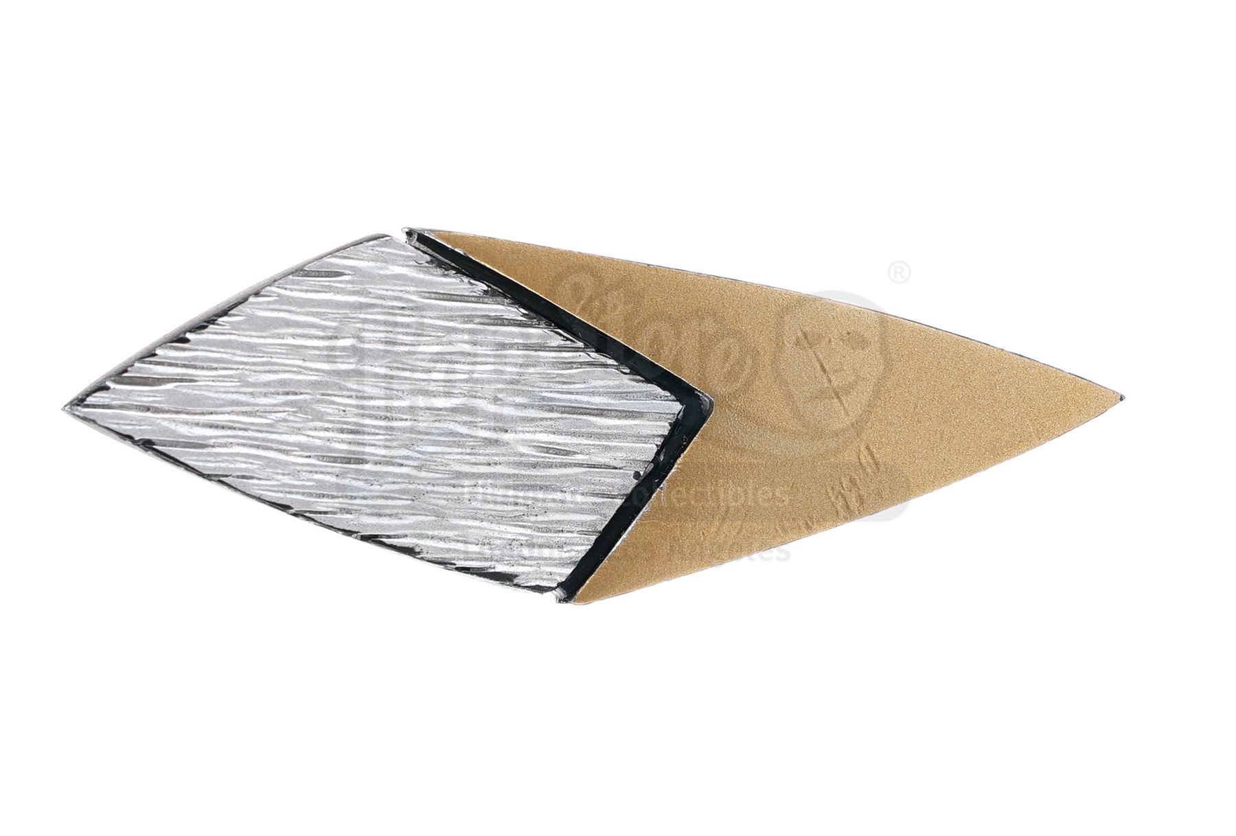 This lot will be auctioned on Thursday, July 1st. The auction will begin at 9:00am PDT and lots are sold sequentially via live auctioneer; tune in to the live streaming broadcast on auction day to follow the pace. Note other lots in the auction may close on June 29th or June 30th.  A 29th century Starfleet combadge from from the sci-fi television series Star Trek: Voyager. Starfleet officers aboard the 29th century Federation timeships Aeon and Relativity wore their unique combadges as they interacted with the crew of 24th century starship Voyager throughout the series. This resin combadge features a gold-color Starfleet delta against a textured silver-color backing with a black fastening strip adhered to the rear. It is in good overall condition with some wear from production and age, including a scuffing to the paint. Dimensions: 3" x 1" x 0.25" (7.75 cm x 2.75 cm x 0.75 cm)  Estimate: $1,000 - 1,500