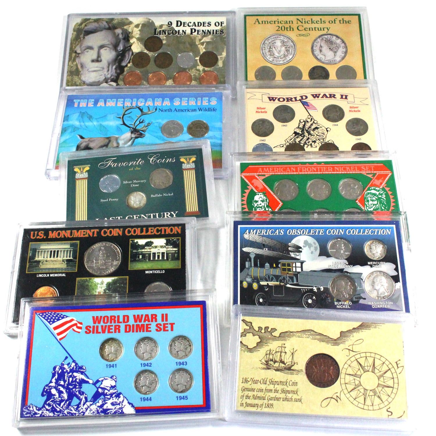 Lot 10x United States Assorted collectable themed coin set. All in protective sealed cases. Many with silver business strike US coins. 10pcs
