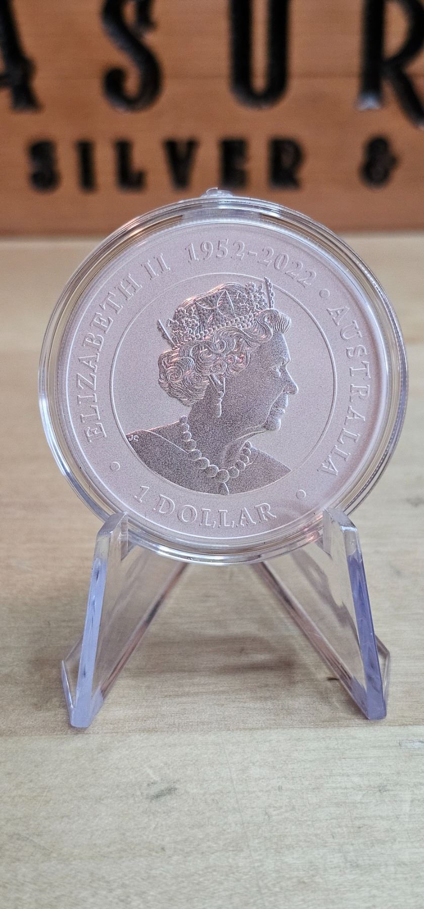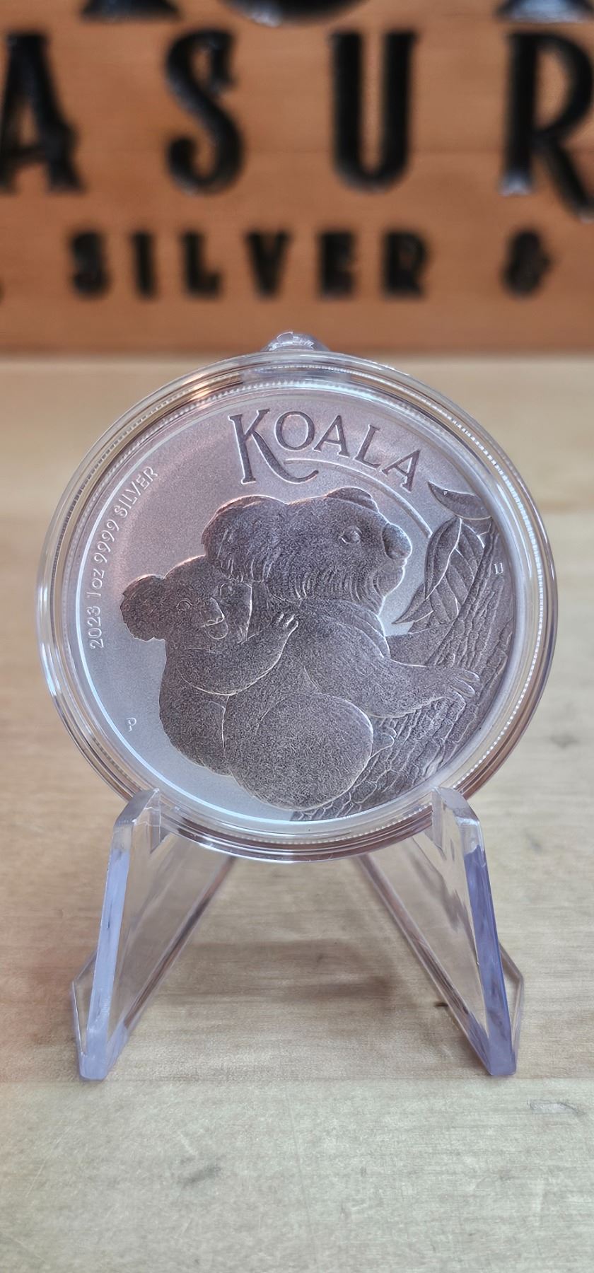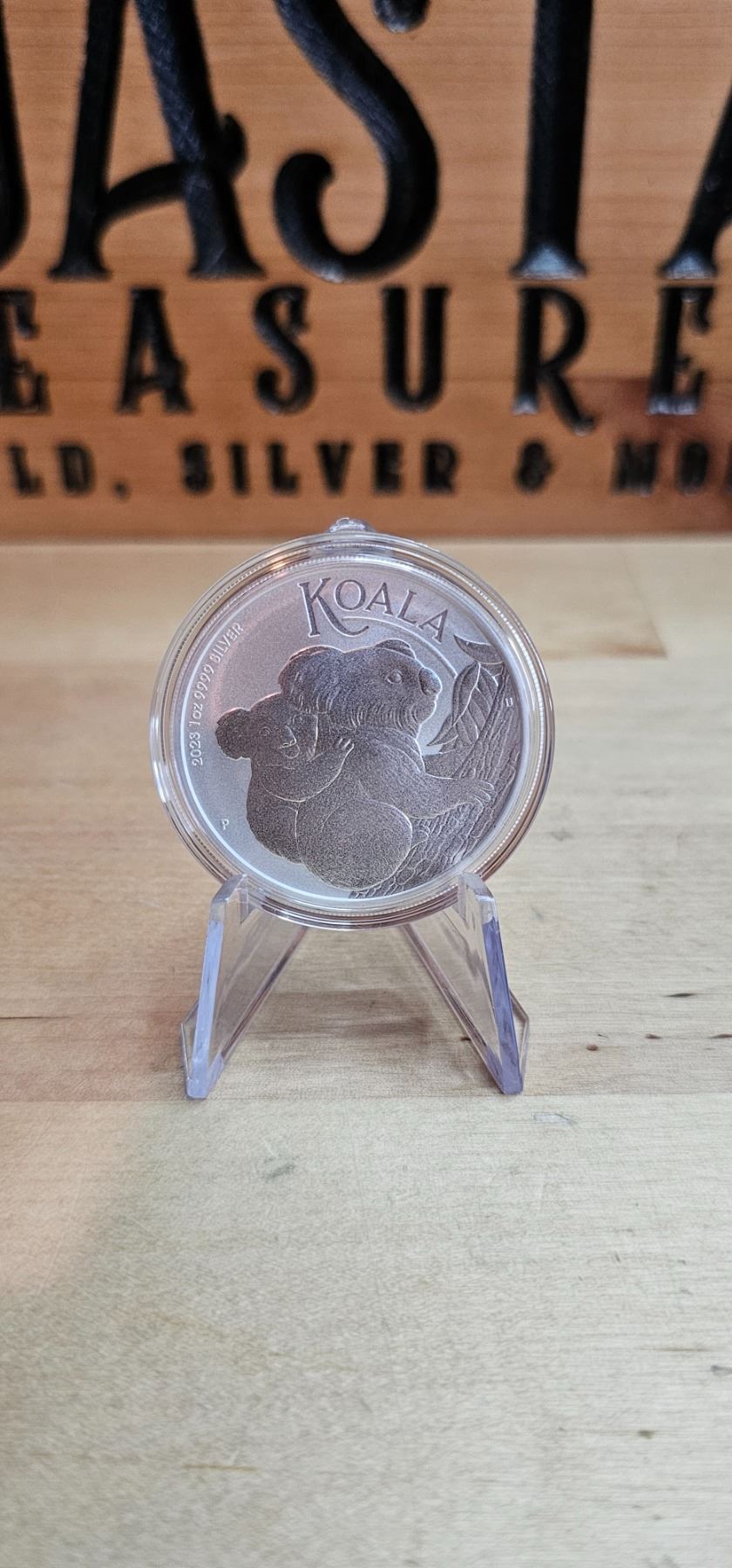 The 2023 1 Oz Silver Australian Koala Coin is crafted from .9999 fine silver and features a beautifully detailed depiction of a koala in its natural habitat. This limited-edition coin celebrates Australia’s iconic wildlife and is a sought-after collectible for both investors and animal lovers.