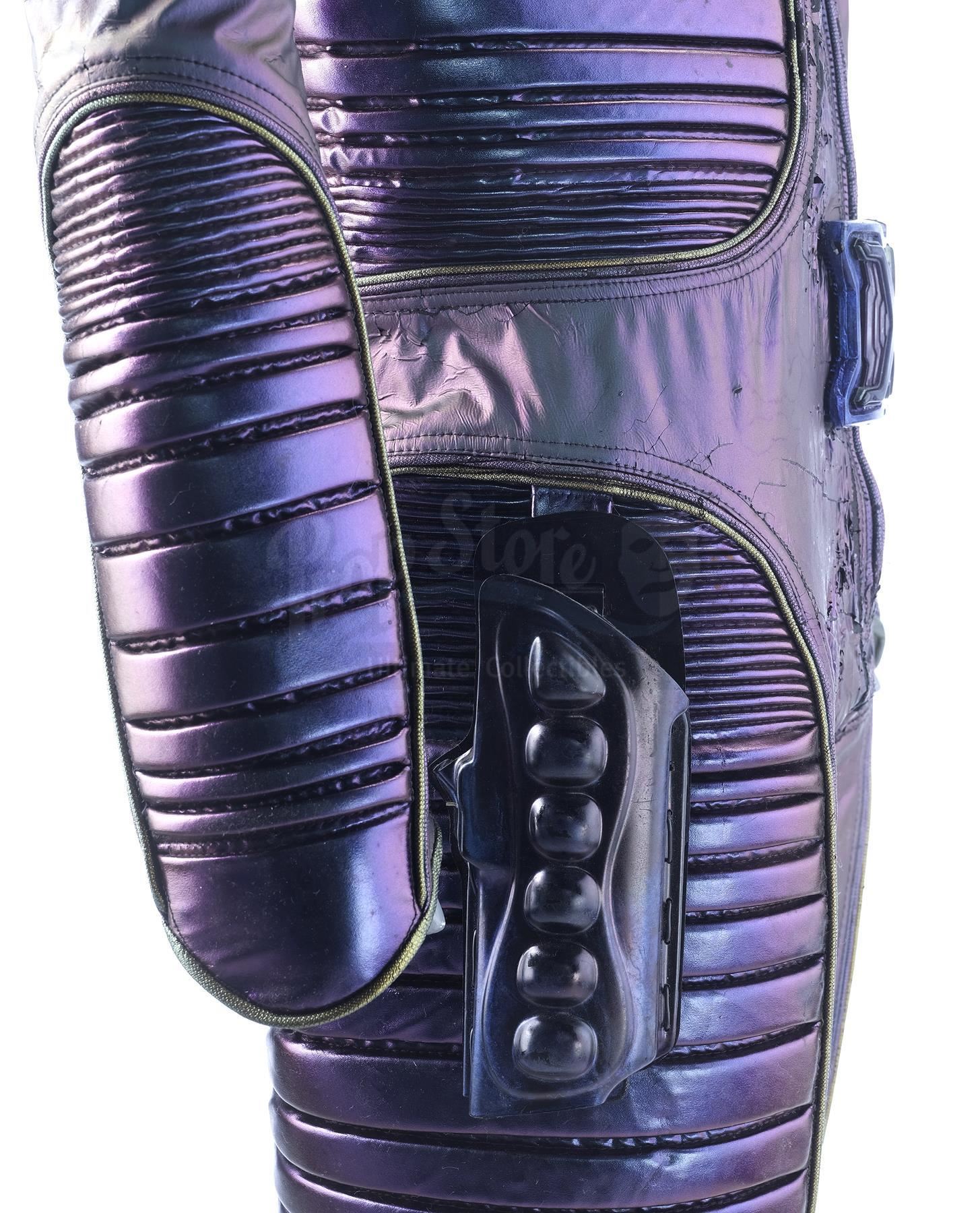 This lot will be auctioned on Thursday, July 1st. The auction will begin at 9:00am PDT and lots are sold sequentially via live auctioneer; tune in to the live streaming broadcast on auction day to follow the pace. Note other lots in the auction may close on June 29th or June 30th. A Reman costume from Stuart Baird's sci-fi sequel Star Trek: Nemesis. Former slaves of the Romulans, Reman soldiers wore their costumes while they attempted to gain independence from both Romulus and the Federation under the command of Praetor Shinzon (Tom Hardy). This costume consists of a zip-up vinyl jumpsuit with a layer of iridescent latex paint and gold-color piping accents. It has been affixed with a series of PVC and hard plastic armor details throughout, as well as an upper chest piece with pointed shoulder details, a plastic belt buckle accent and a plastic sidearm holster. It exhibits signs of use and wear, including extensive paint chipping throughout, but remains in fair overall condition Estimate: $2,500 - 3,500