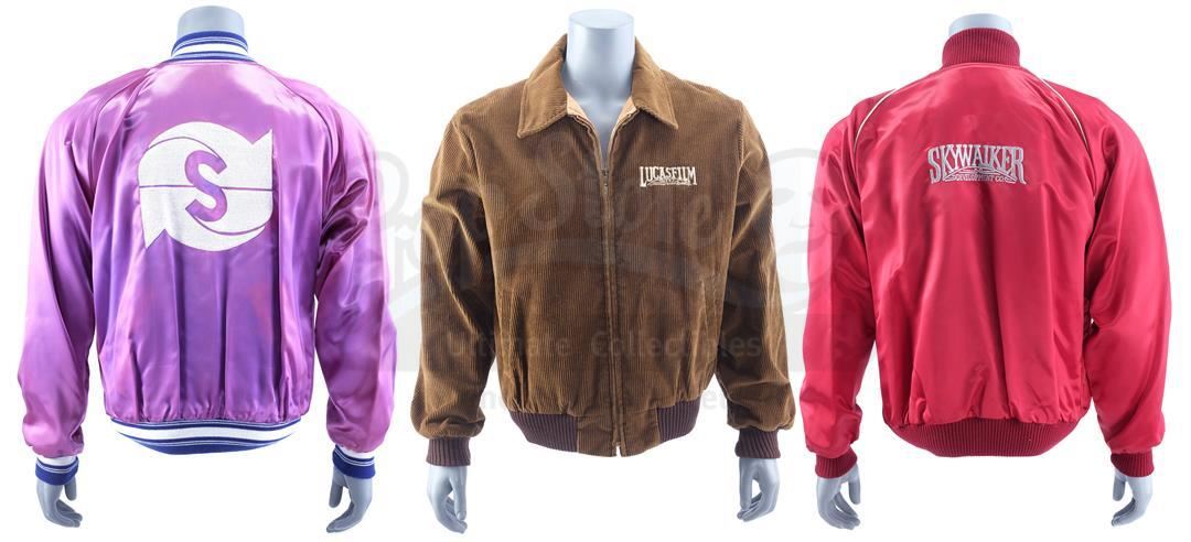 This lot will be auctioned on Thursday, July 1st. The auction will begin at 9:00am PDT and lots are sold sequentially via live auctioneer; tune in to the live streaming broadcast on auction day to follow the pace. Note other lots in the auction may close on June 29th or June 30th. A set of three early Lucasfilm company jackets issued to the staff of Industrial Light & Magic (ILM). These jackets represented different divisions of the company and were each presented in different styles and colors. This lot consists of a purple and white satin and cotton jacket from Sprocket Systems, the editing division, a red and gray satin and cotton jacket from Skywalker Development Co., and a brown corduroy Lucasfilm jacket. Each jacket features graphics and symbols representing its own division. These jackets feature signs of wear from age and use but remain in excellent overall condition. Estimate: $500 - 700