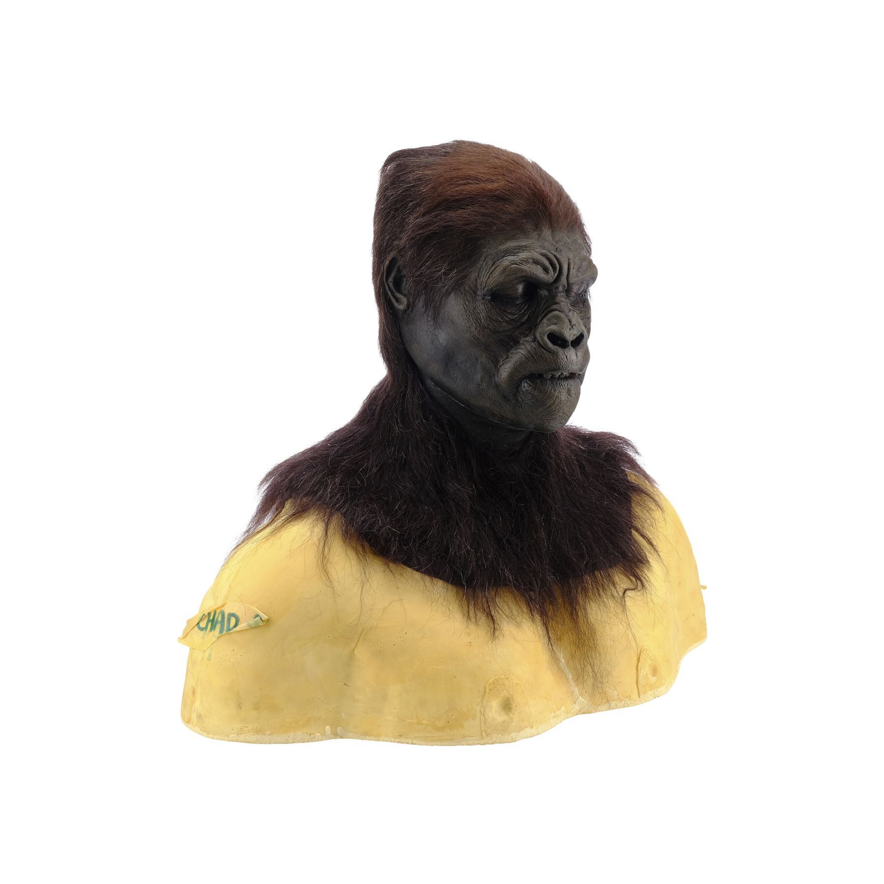 PLANET OF THE APES (2001) - Man Hunt Ape (Chad Bannon) Make-Up Test Head - A Man Hunt Ape (Chad Bannon) makeup test head from TIm Burton's action-sci-fi film Planet of the Apes. Man Hunt Ape tracked down Leo Davidson (Mark Wahlberg) and other humans he freed as they escaped ape custody.