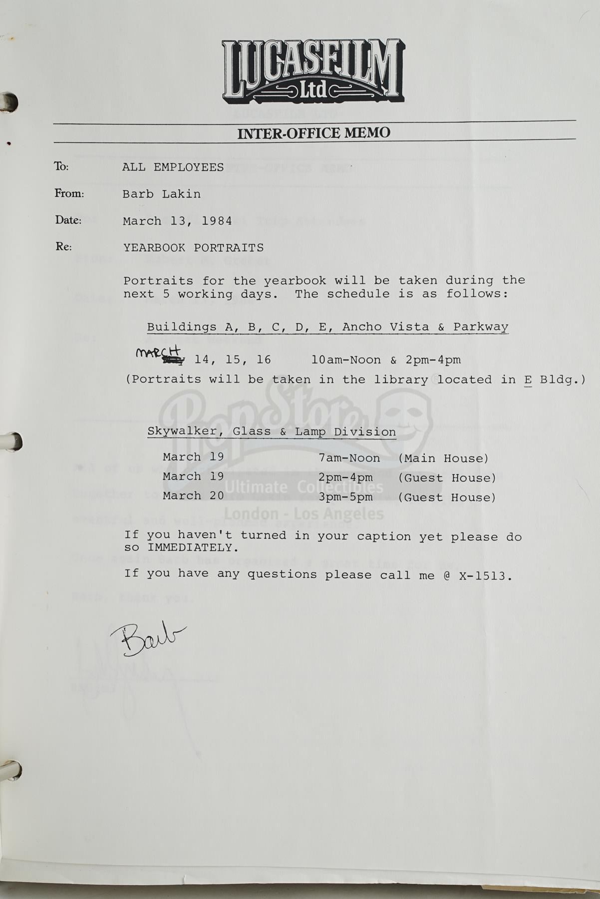 Lot # 1115: INDUSTRIAL LIGHT & MAGIC (ILM) - Archive of 1980s Memos and Internal Documents