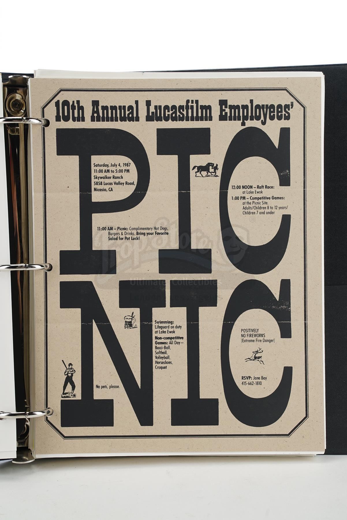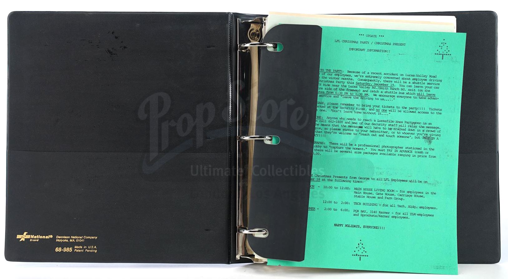 This lot will be auctioned on Thursday, July 1st. The auction will begin at 9:00am PDT and lots are sold sequentially via live auctioneer; tune in to the live streaming broadcast on auction day to follow the pace. Note other lots in the auction may close on June 29th or June 30th. Archive of 1980s memos and internal documents from Industrial Light & Magic. This lot consists of a pair of black plastic and metal three-ring binders containing several hundred inter-office memos and documents from the 1980s. They include information about events, holiday celebrations, and wrap parties; and documents pertaining to productions including "Willow," "Star Trek II," and "Howard the Duck." Included are photocopied articles from several magazines related to "Star Wars." They exhibit signs of wear from age and use, including document creasing, but remain in good overall condition. Dimensions: 11.75" x 11.5" x 5.5" (30 cm x 29.25 cm x 14 cm) Estimate: $800 - 1,200