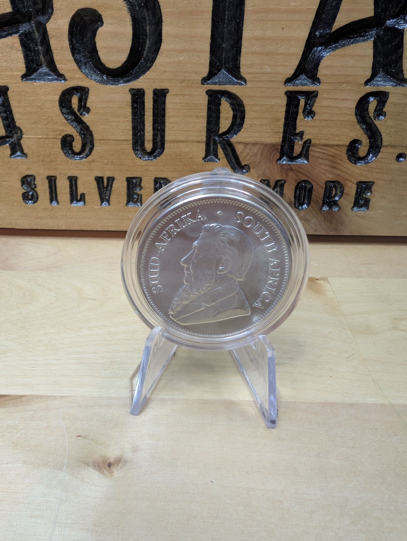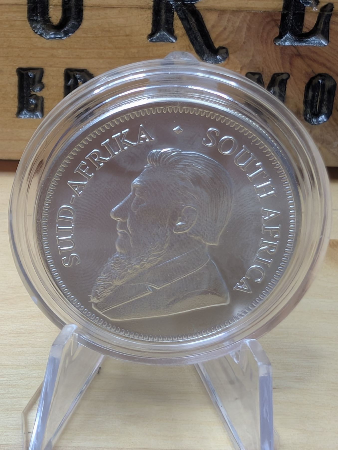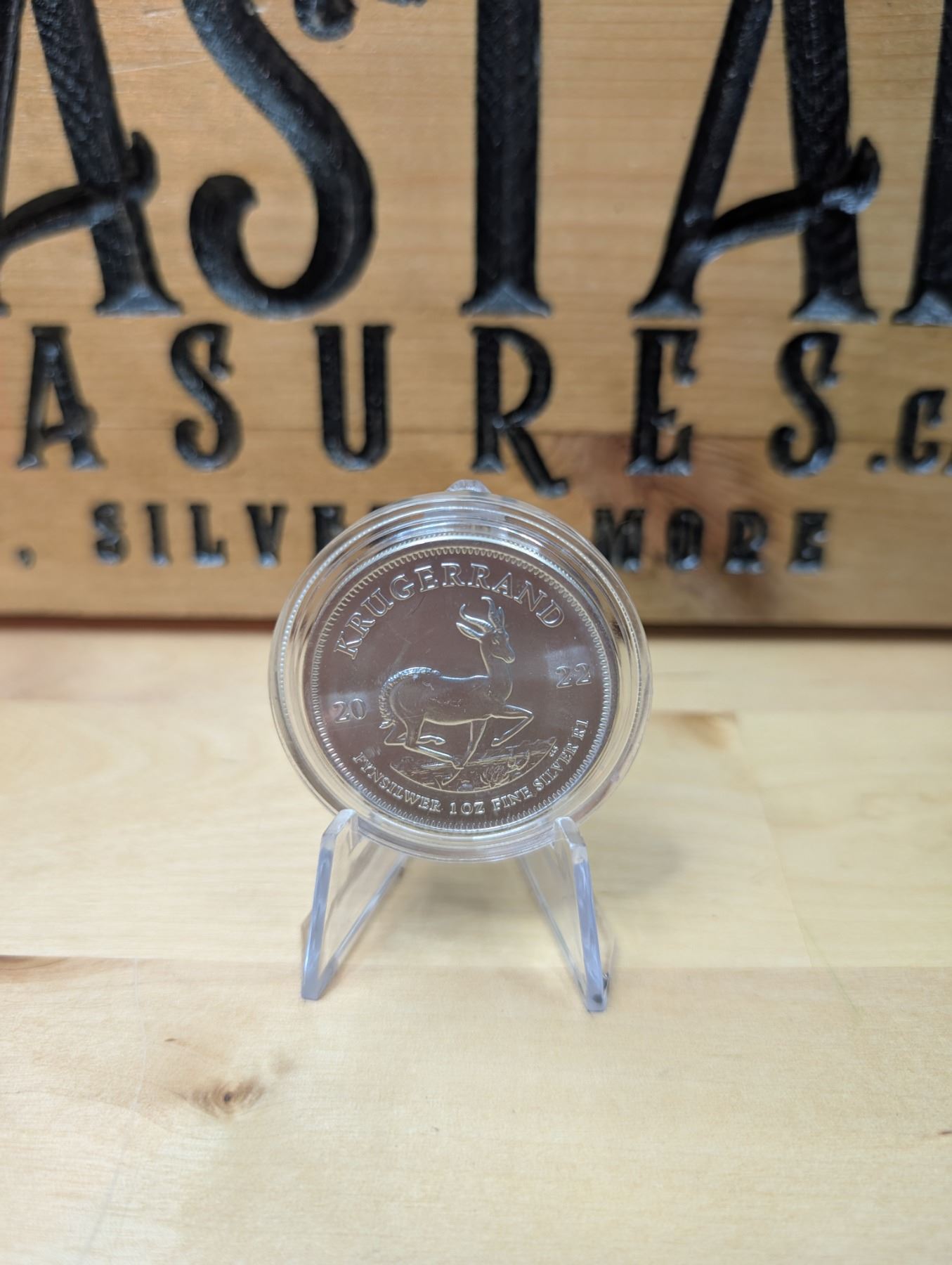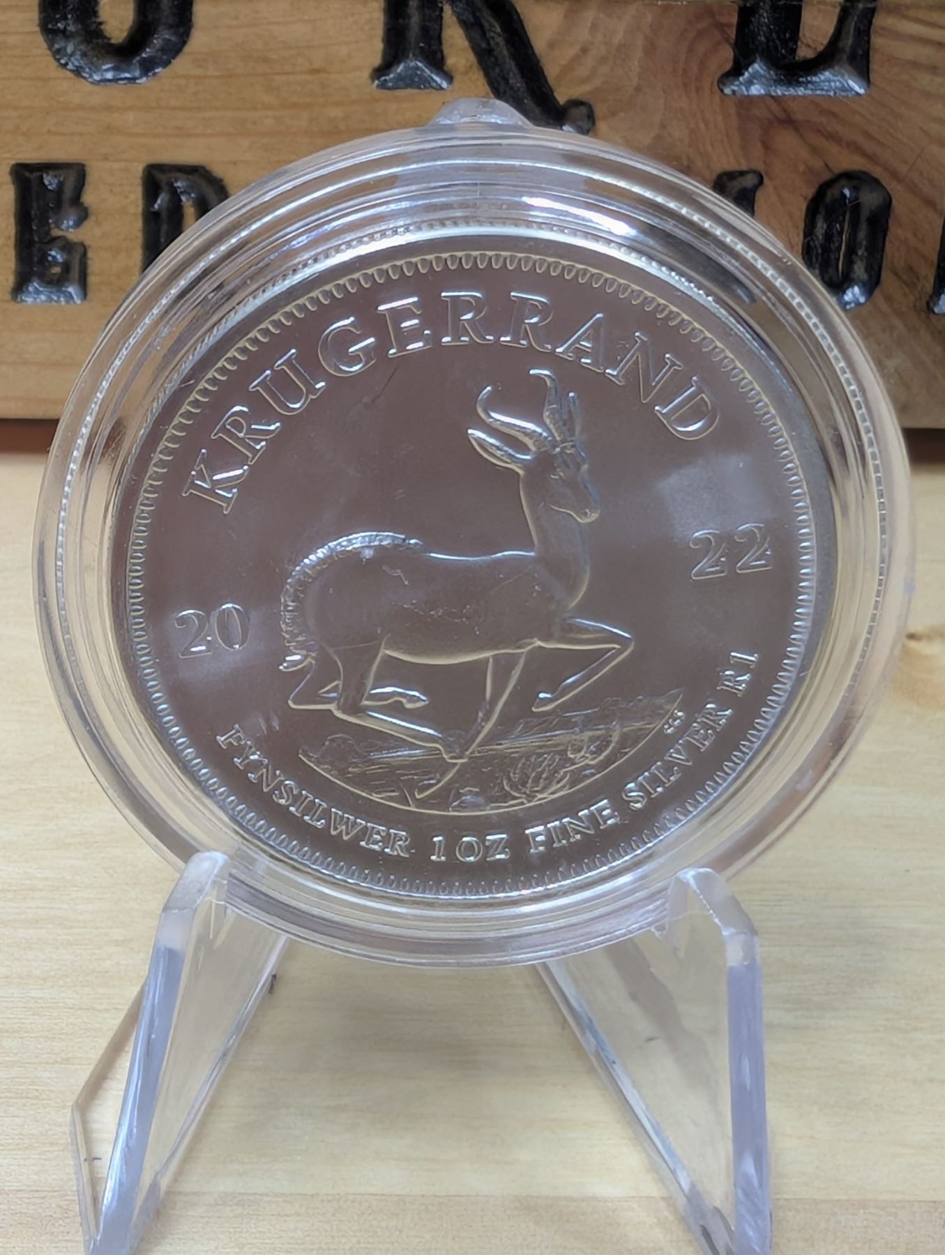 Krugerrand 2022 Silver Coin is a silver bullion coin issued by The South African Mint. It contains 1 ounce of .999 fine silver and is part of the Krugerrand series, which is famous for its gold version first minted in 1967. The 2022 silver edition features the iconic Springbok antelope on the reverse, and on the obverse, the coin typically depicts the image of Paul Kruger, the former president of the South African Republic, from whom the coin gets its name. The Krugerrand is one of the most well-known and widely recognized bullion coins globally, making it popular with collectors and investors alike.