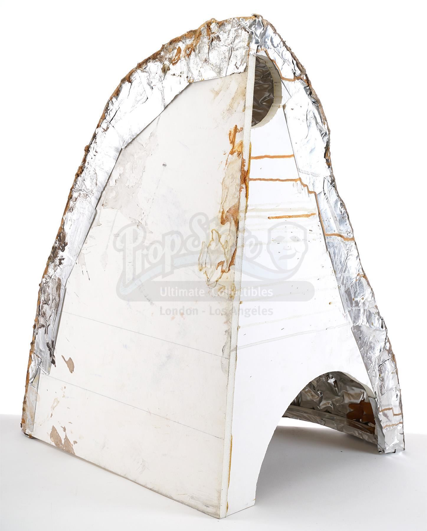 This lot will be auctioned on Thursday, July 1st. The auction will begin at 9:00am PDT and lots are sold sequentially via live auctioneer; tune in to the live streaming broadcast on auction day to follow the pace. Note other lots in the auction may close on June 29th or June 30th. A Geonosis outcropping model miniature from George Lucas' Star Wars: Attack of the Clones. The Clone Wars were initiated when the Confederacy of Independent Systems and the Galactic Republic fought in the Battle of Geonosis. Industrial Light & Magic (ILM) rendered the planet's towering rock formations by creating and photographing physical model miniatures, then projecting them as large-scale environmental elements. This model miniature for a Geonosian outcropping surrounding the arena is constructed of particle board and foil, painted in shades of tan and blue to appear rocky and weathered to appear textured. It is in excellent overall condition with visible signs of use from production, including scuffed paint throughout. Dimensions: 25" x 16.5" x 23.5" (63.5 cm x 42 cm x 59.75 cm) Estimate: $2,000 - 3,000