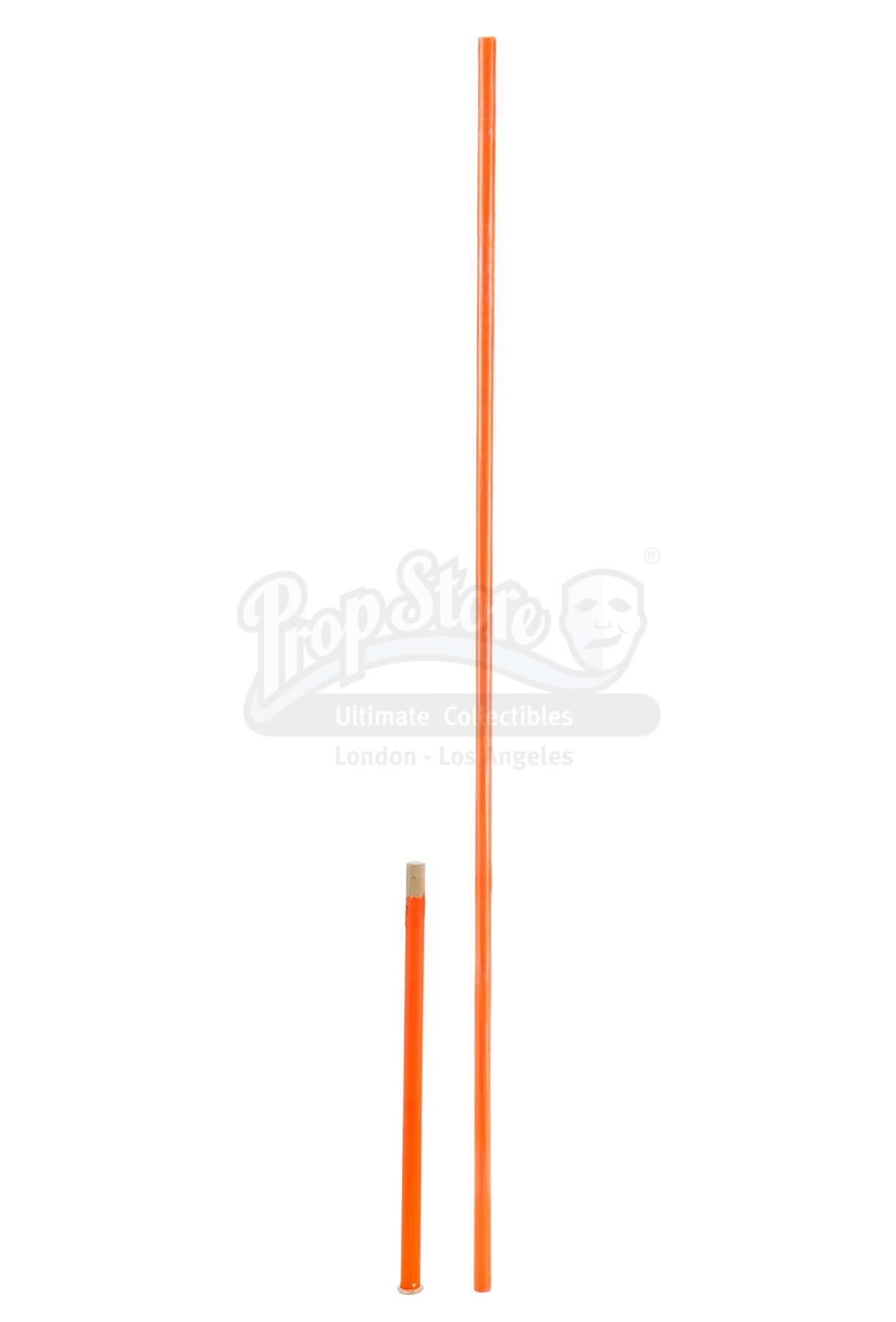 This lot will be auctioned on Thursday, July 1st. The auction will begin at 9:00am PDT and lots are sold sequentially via live auctioneer; tune in to the live streaming broadcast on auction day to follow the pace. Note other lots in the auction may close on June 29th or June 30th. A production lightsaber blade from George Lucas' Star Wars prequel trilogy. Jedi masters wielded their signature lightsabers in battle throughout the films, most prominently during the battle with Jango Fett (Temuera Morrison) and the Separatist Droid Army in Star Wars: Attack of the Clones. This long carbon fiber lightsaber "blade" (staff) is hand-painted bright orange. Staff such as these were used in dueling sequences by affixing them to lightsaber hilts, though this piece is likely unused since it is not attached to a threaded metal rod, as the final filming "blades" were. It exhibits some flaking paint and chips from production use, but remains in good overall condition. Dimensions: 37" x 1.5" x 1.5" (94.75 cm x 4 cm x 4 cm) Estimate: $1,000 - 1,500