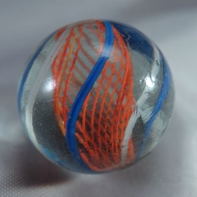 Red Latticinio Core Swirl. Beautiful example. A couple of tiny surface bits. Germany, circa 1860-1920. 25/32". Mint(-) (9.1).