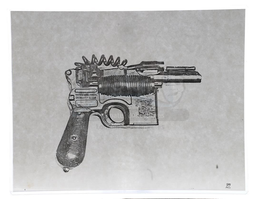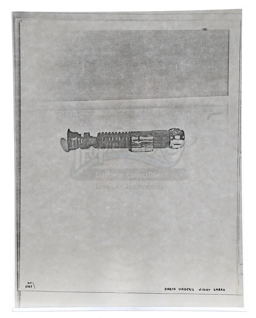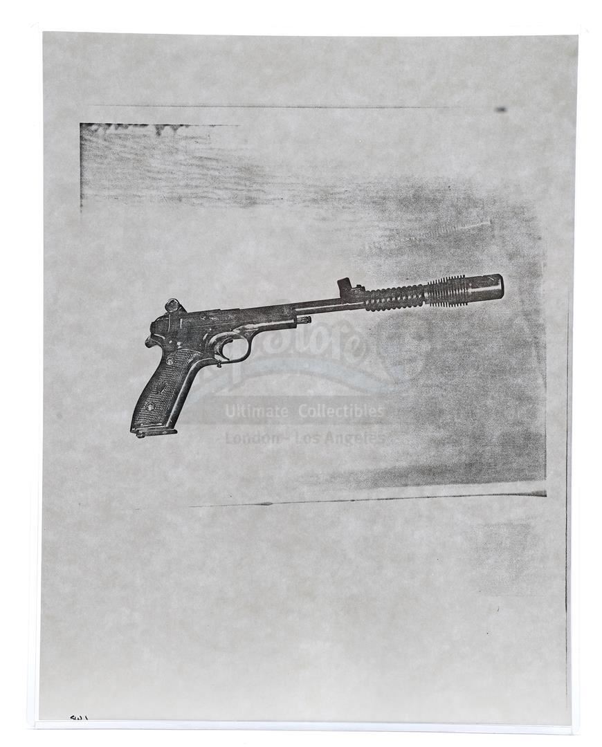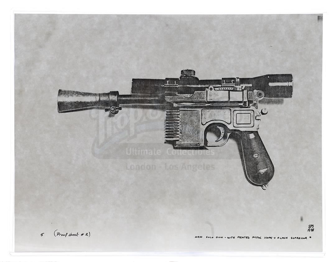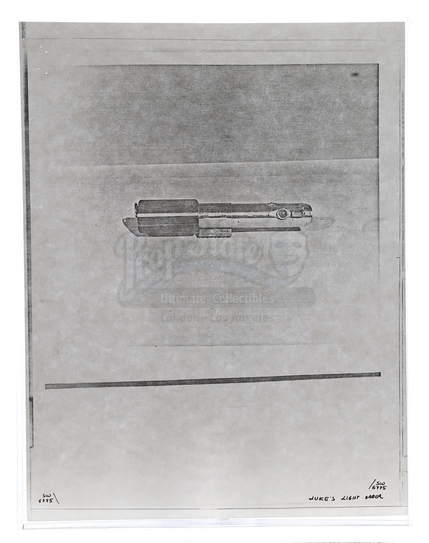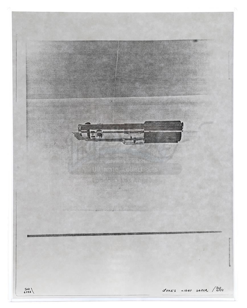 This lot will be auctioned on Thursday, July 1st. The auction will begin at 9:00am PDT and lots are sold sequentially via live auctioneer; tune in to the live streaming broadcast on auction day to follow the pace. Note other lots in the auction may close on June 29th or June 30th. Weapons research images from George Lucas's Star Wars: A New Hope. This set of 62 black-and-white photostats of original photographs was created by Industrial Light & Magic (ILM) art director James L. Schoppe to document the original weapon designs seen in the film. Among the weapons featured are Han Solo's (Harrison Ford) blaster, Princess Leia's (Carrie Fisher) blaster and belt, Chewbacca's (Peter Mayhew) bowcaster, Stormtrooper blaster rifles, and Obi-Wan Kenobi (Alec Guinness) and Darth Vader's (James Earl Jones) lightsabers. The archive exhibits creasing, slight tears, and storage wear, but remains in good overall condition. Dimensions (each): 8" x 11.5" (3.14 cm x 4.5 cm) Estimate: $800 - 1,200