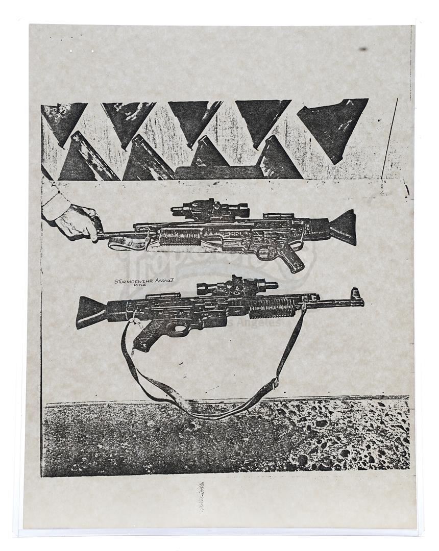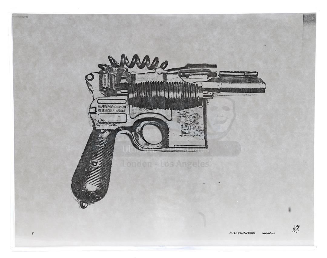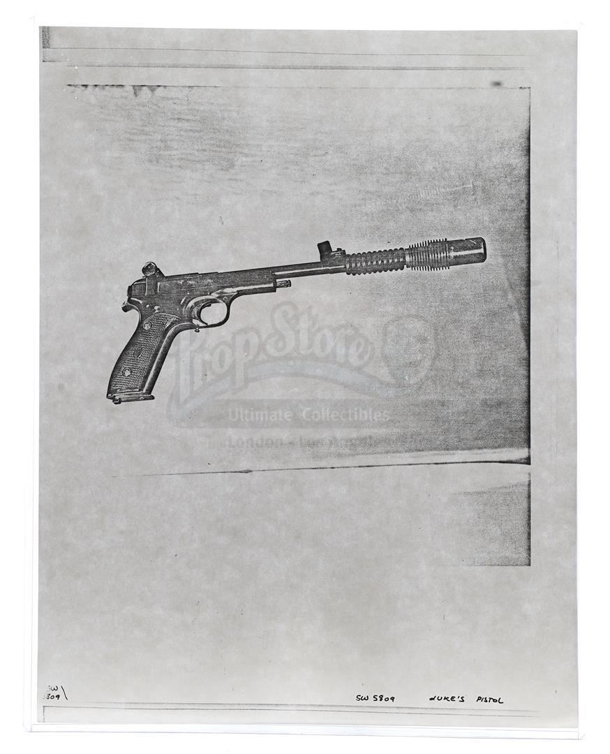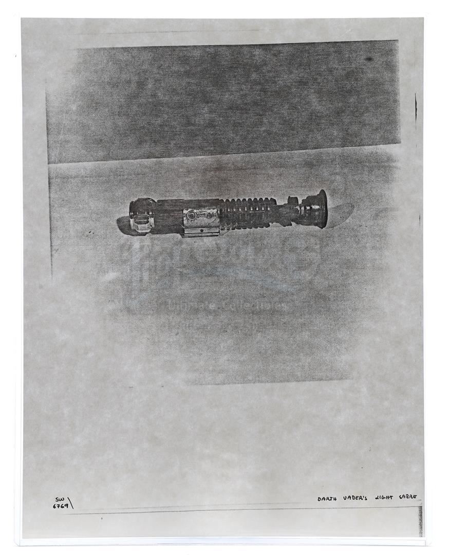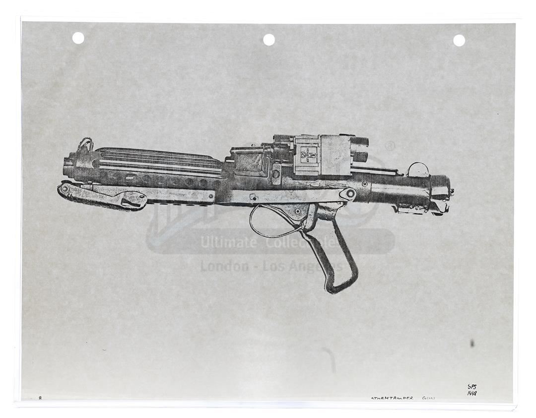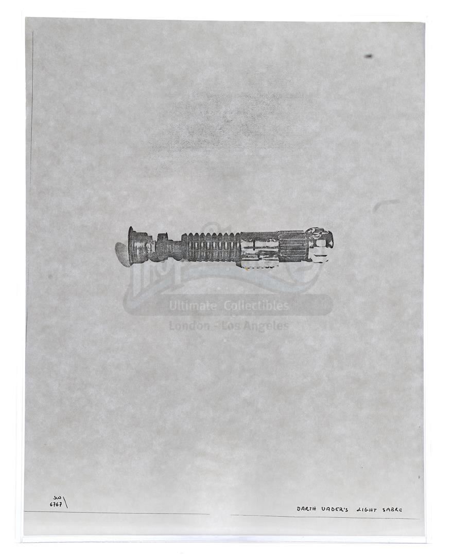This lot will be auctioned on Thursday, July 1st. The auction will begin at 9:00am PDT and lots are sold sequentially via live auctioneer; tune in to the live streaming broadcast on auction day to follow the pace. Note other lots in the auction may close on June 29th or June 30th. Weapons research images from George Lucas's Star Wars: A New Hope. This set of 62 black-and-white photostats of original photographs was created by Industrial Light & Magic (ILM) art director James L. Schoppe to document the original weapon designs seen in the film. Among the weapons featured are Han Solo's (Harrison Ford) blaster, Princess Leia's (Carrie Fisher) blaster and belt, Chewbacca's (Peter Mayhew) bowcaster, Stormtrooper blaster rifles, and Obi-Wan Kenobi (Alec Guinness) and Darth Vader's (James Earl Jones) lightsabers. The archive exhibits creasing, slight tears, and storage wear, but remains in good overall condition. Dimensions (each): 8" x 11.5" (3.14 cm x 4.5 cm) Estimate: $800 - 1,200