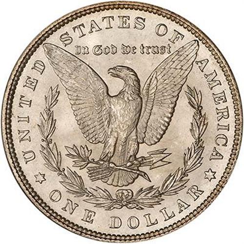 1885 Morgan Dollar. No deviation in the sharp relief seen, not even in the centers of the coin, as one might expect given the grade. What's more, from center to periphery the intense flood of silvery luster glows and gyrates. Superb! (#7158)