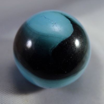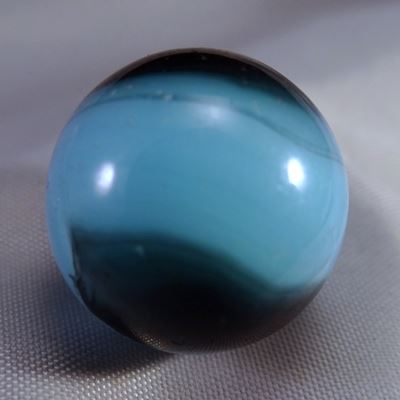 Baby blue base with black spiral snake. A tiny rub spot. Clarksburg WV, circa 1927-1935. 11/16". Mint(-) (9.0).