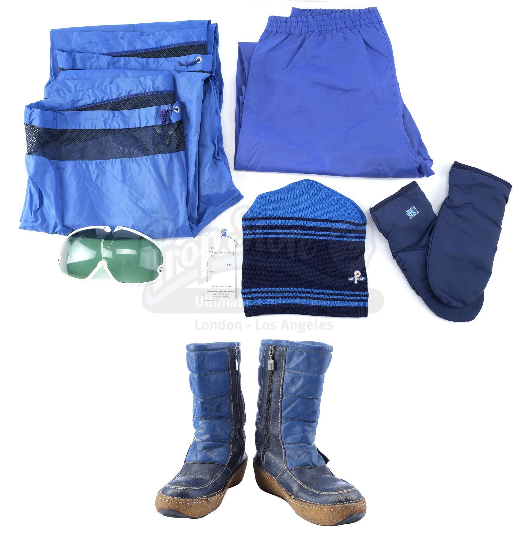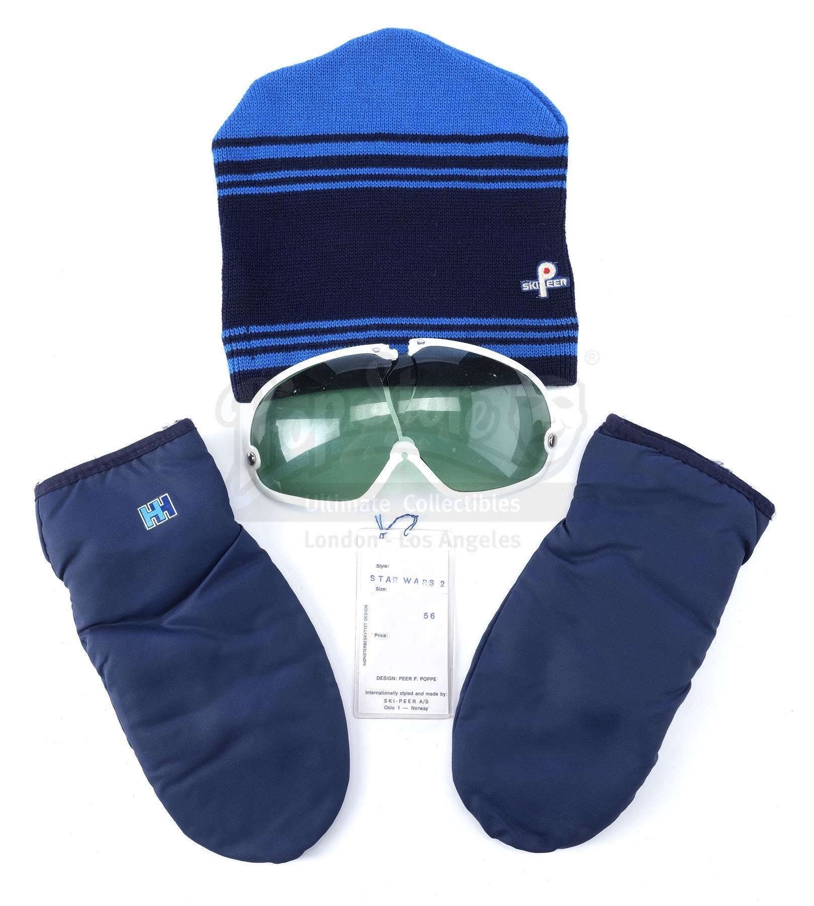 This lot will be auctioned on Thursday, July 1st. The auction will begin at 9:00am PDT and lots are sold sequentially via live auctioneer; tune in to the live streaming broadcast on auction day to follow the pace. Note other lots in the auction may close on June 29th or June 30th. Hoth crew gear from the production of Ivrin Kershner's sci-fi sequel Star Wars: The Empire Strikes Back. While filming the Planet Hoth sequences in Norway, crew members were given a variety of custom-made clothing to wear in the frigid climate. This lot consists of a navy wool hat with blue stripes, a green snow goggle lens, a pair of nylon navy mittens with wool interiors, three pairs of nylon blue pants, and a pair of blue leather and rubber boots with wool interiors. Also included is a wardrobe tag marked "STAR WARS 2." The lot shows wear due to production and age, including breaking and separation on the lens pieces, but remains in good overall condition. Estimate: $2,000 - 3,000