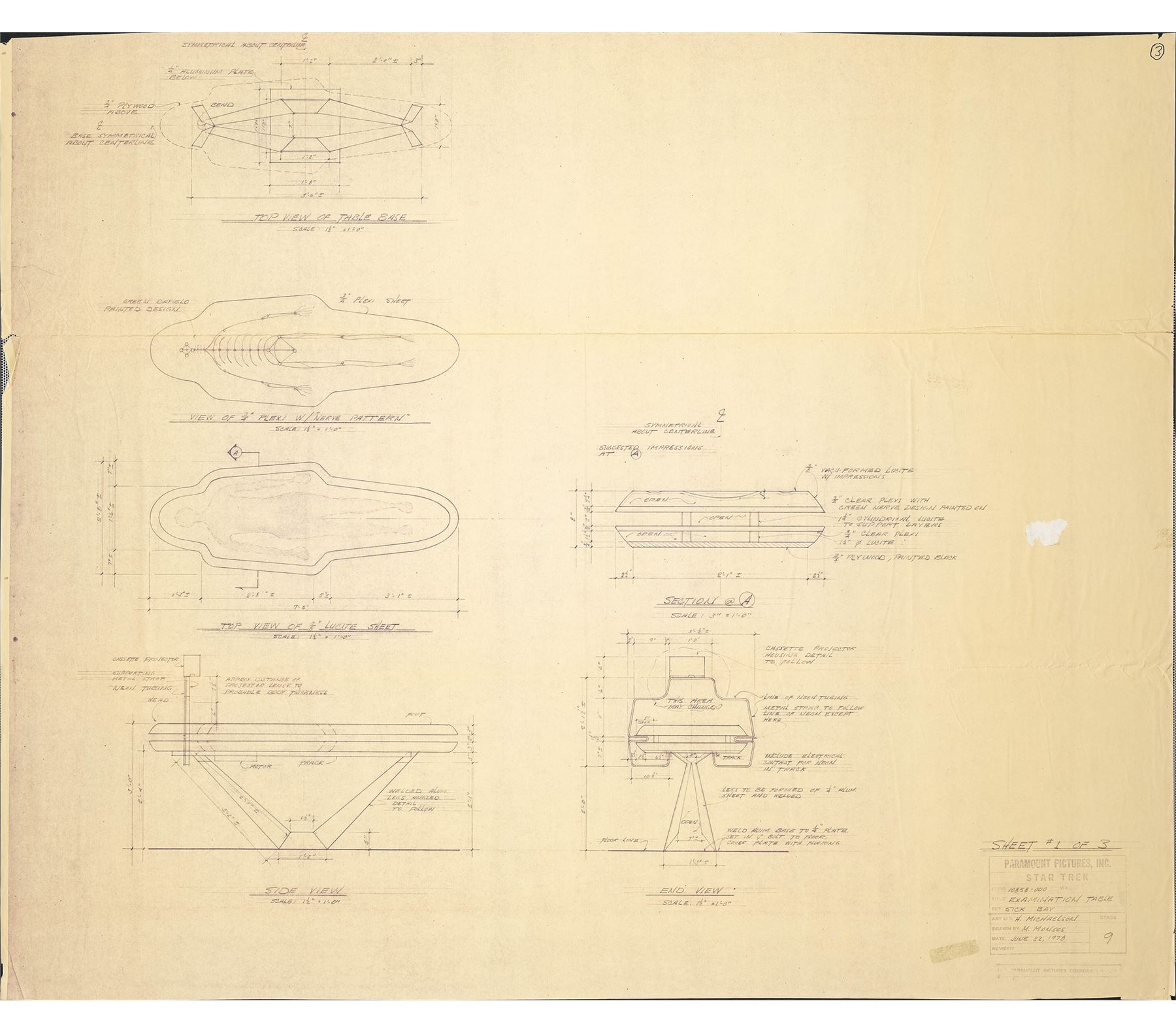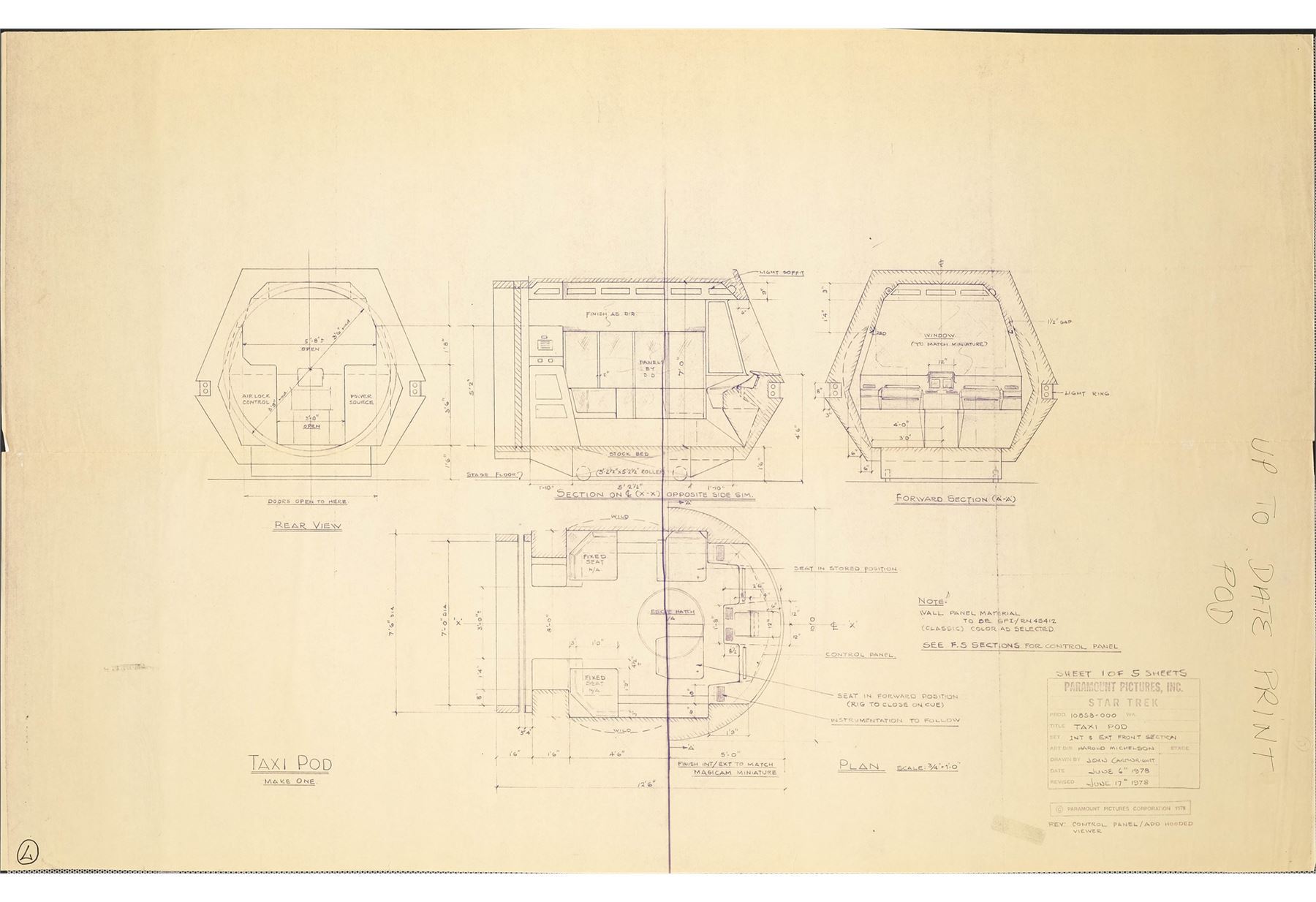 STAR TREK: THE MOTION PICTURE (1979) - Set of Nine Production Blueprints - A set of nine blueprints from the production of Robert Wise's sci-fi film Star Trek: The Motion Picture. Blueprints were used in the design and construction in many of the film's futuristic sets.