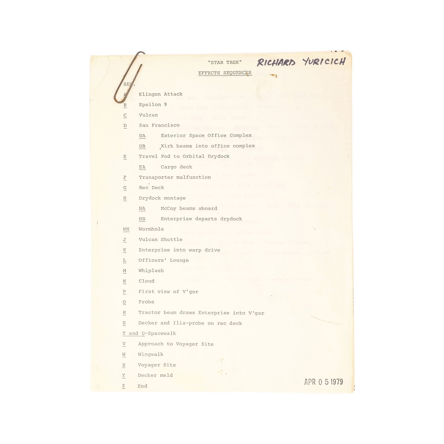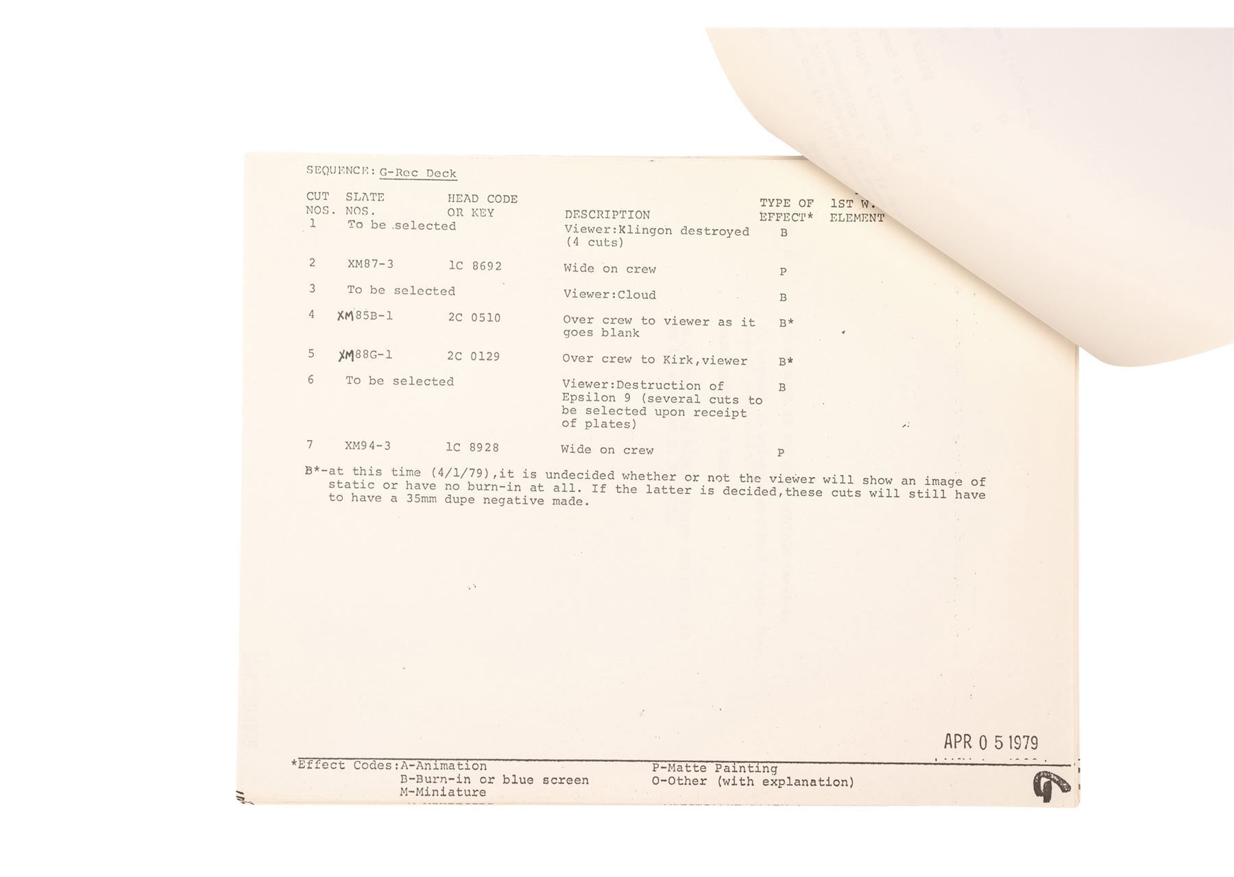STAR TREK: THE MOTION PICTURE (1979) - Pair of Storyboards and Effects Sequences Binders - Storyboards and effects sequences paperwork from Robert Wise's sci-fi film Star Trek: The Motion Picture. These were used to plan and document the film's special effects.