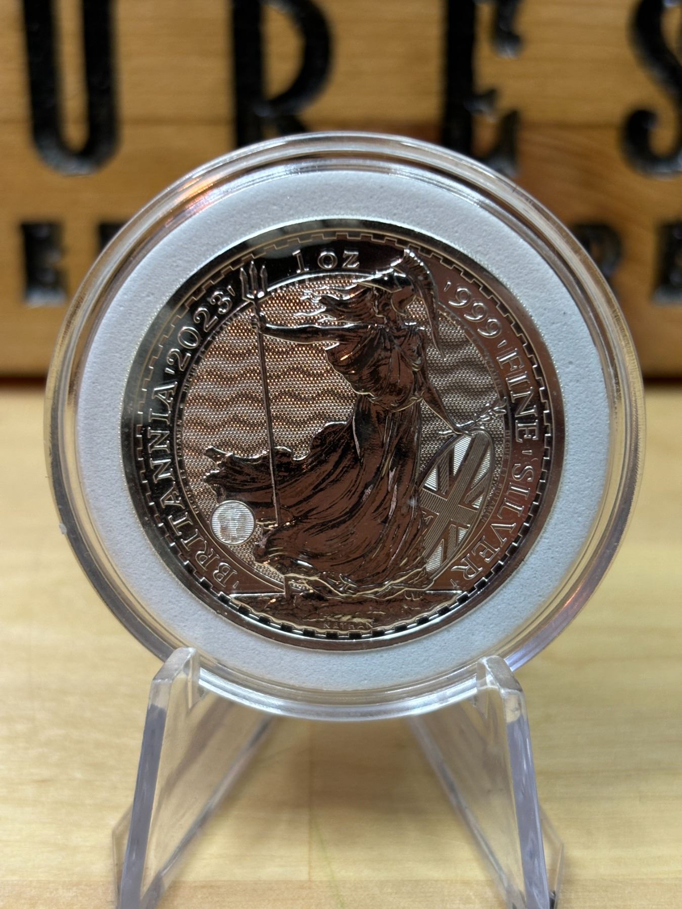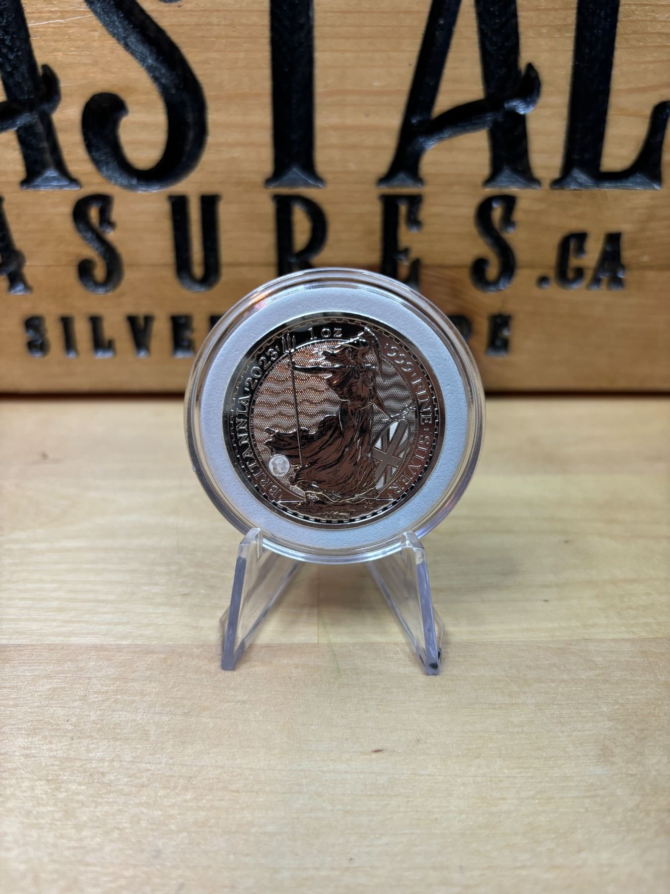 The 1 oz Britannia 2023 Silver Coin is part of the popular Britannia series, produced by the Royal Mint. It contains 1 ounce of .999 fine silver and features the iconic image of Britannia, symbolizing strength and resilience. The 2023 edition features an updated design with enhanced security features, such as a new background wave pattern and a holographic foil that changes in the light, making it more difficult to counterfeit. The coin is widely sought after by collectors and investors alike.