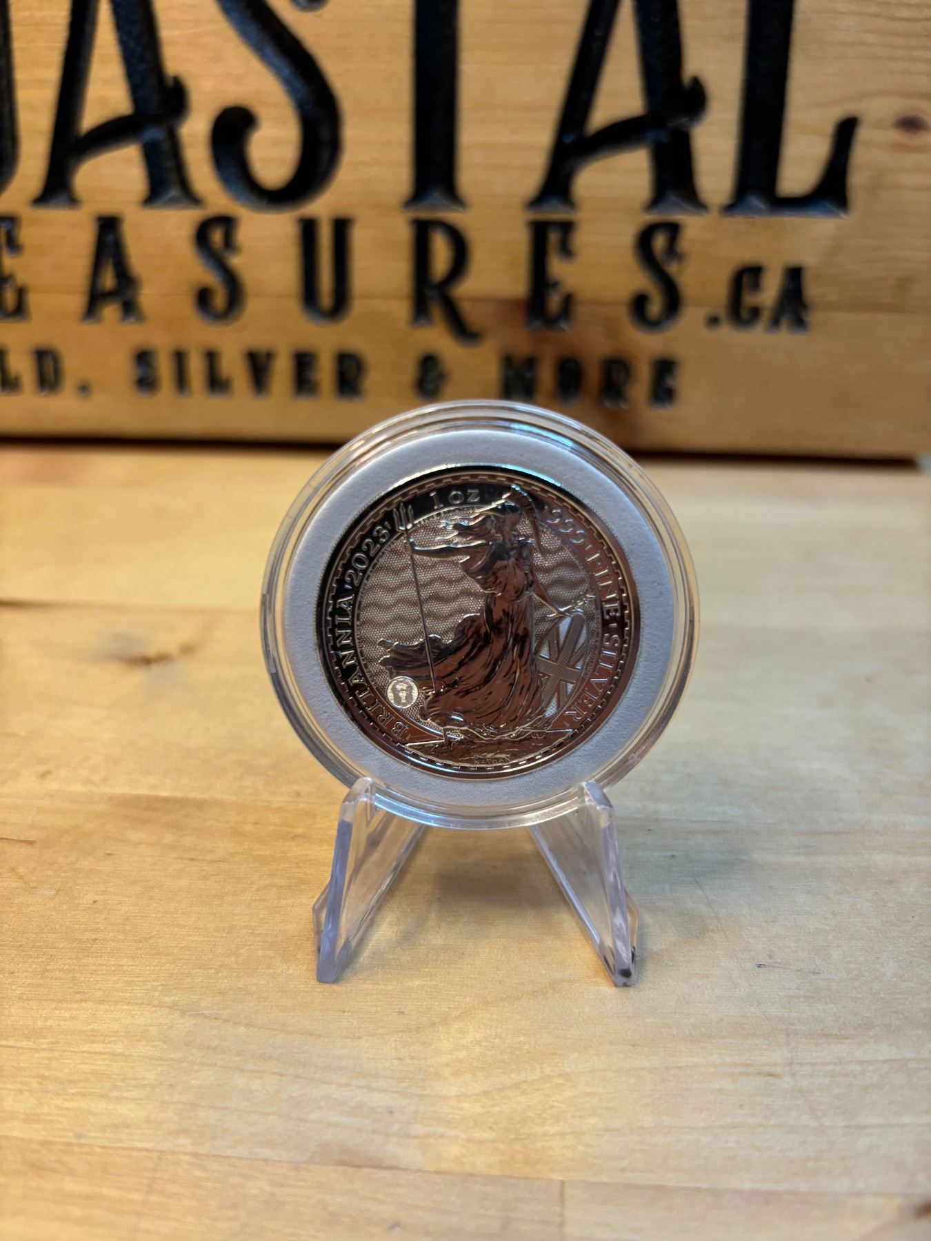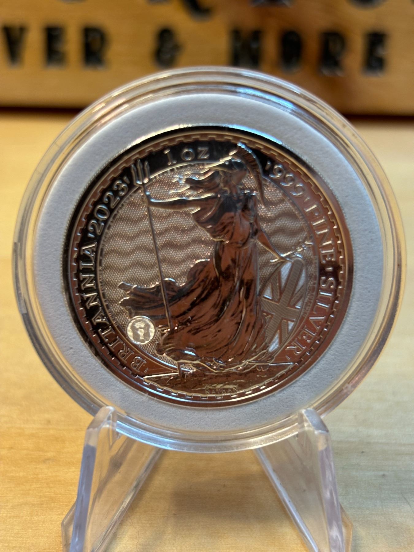 The 1 oz Britannia 2023 Silver Coin is part of the popular Britannia series, produced by the Royal Mint. It contains 1 ounce of .999 fine silver and features the iconic image of Britannia, symbolizing strength and resilience. The 2023 edition features an updated design with enhanced security features, such as a new background wave pattern and a holographic foil that changes in the light, making it more difficult to counterfeit. The coin is widely sought after by collectors and investors alike.