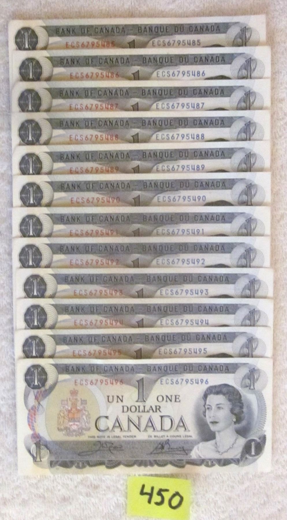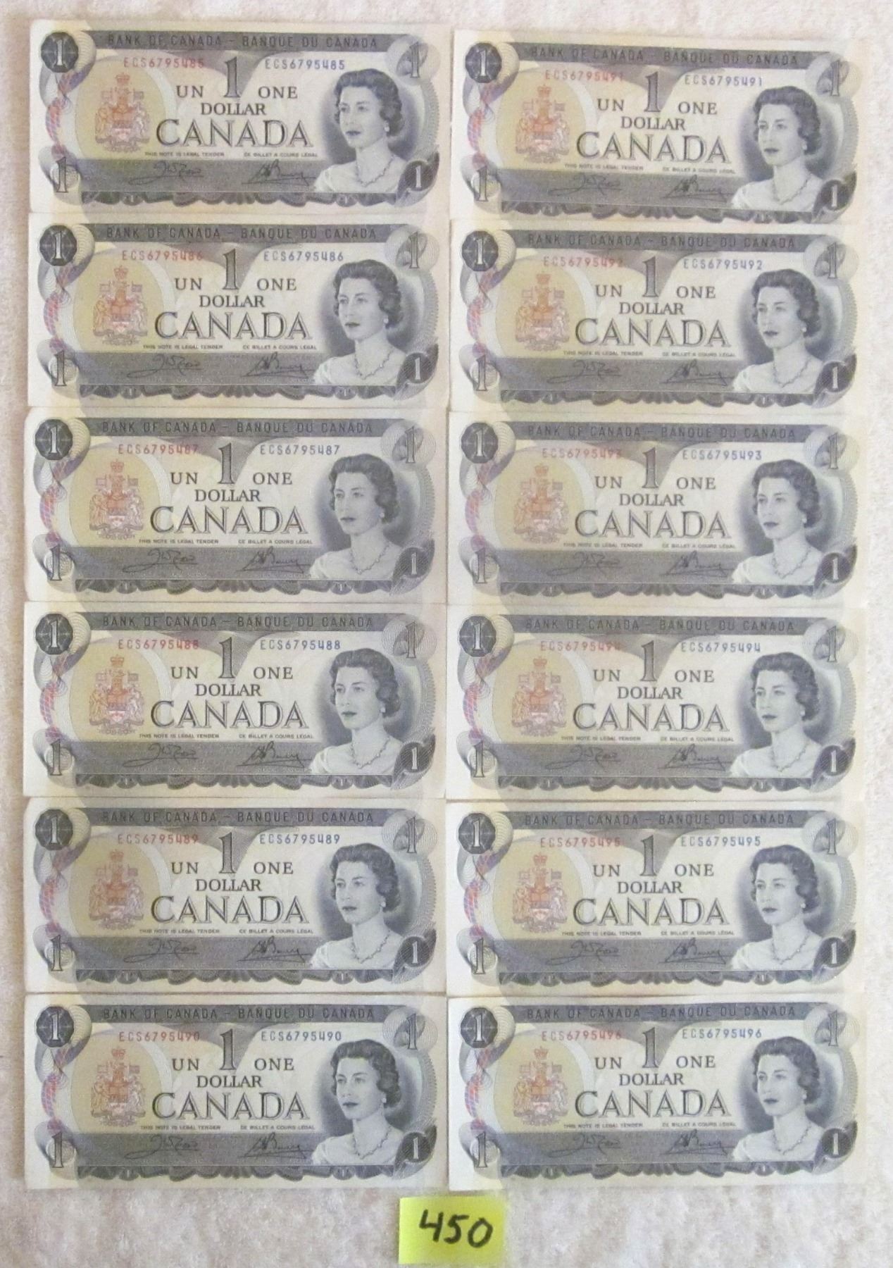 Lot 12 1973 Bank of Canada Uncirculated consecutive #'s $1 bill/banknotes ECS6795485-ECS6795496
