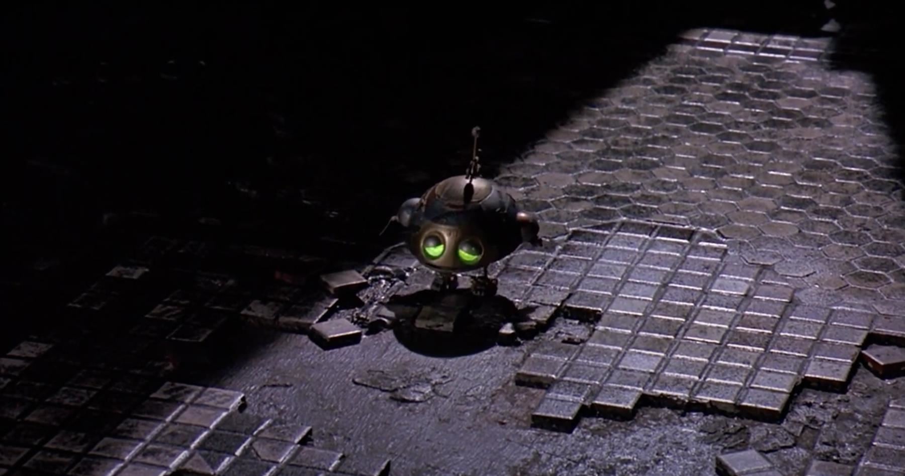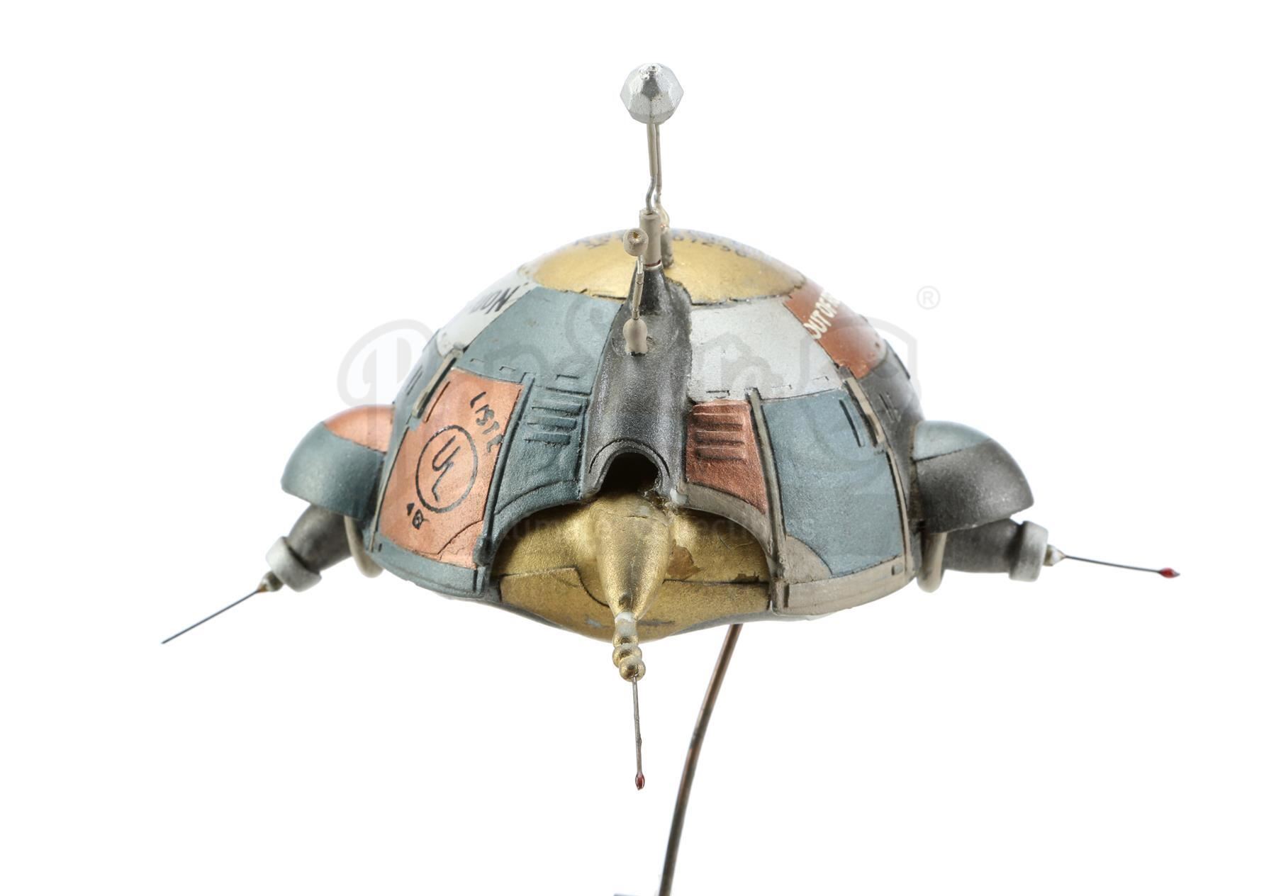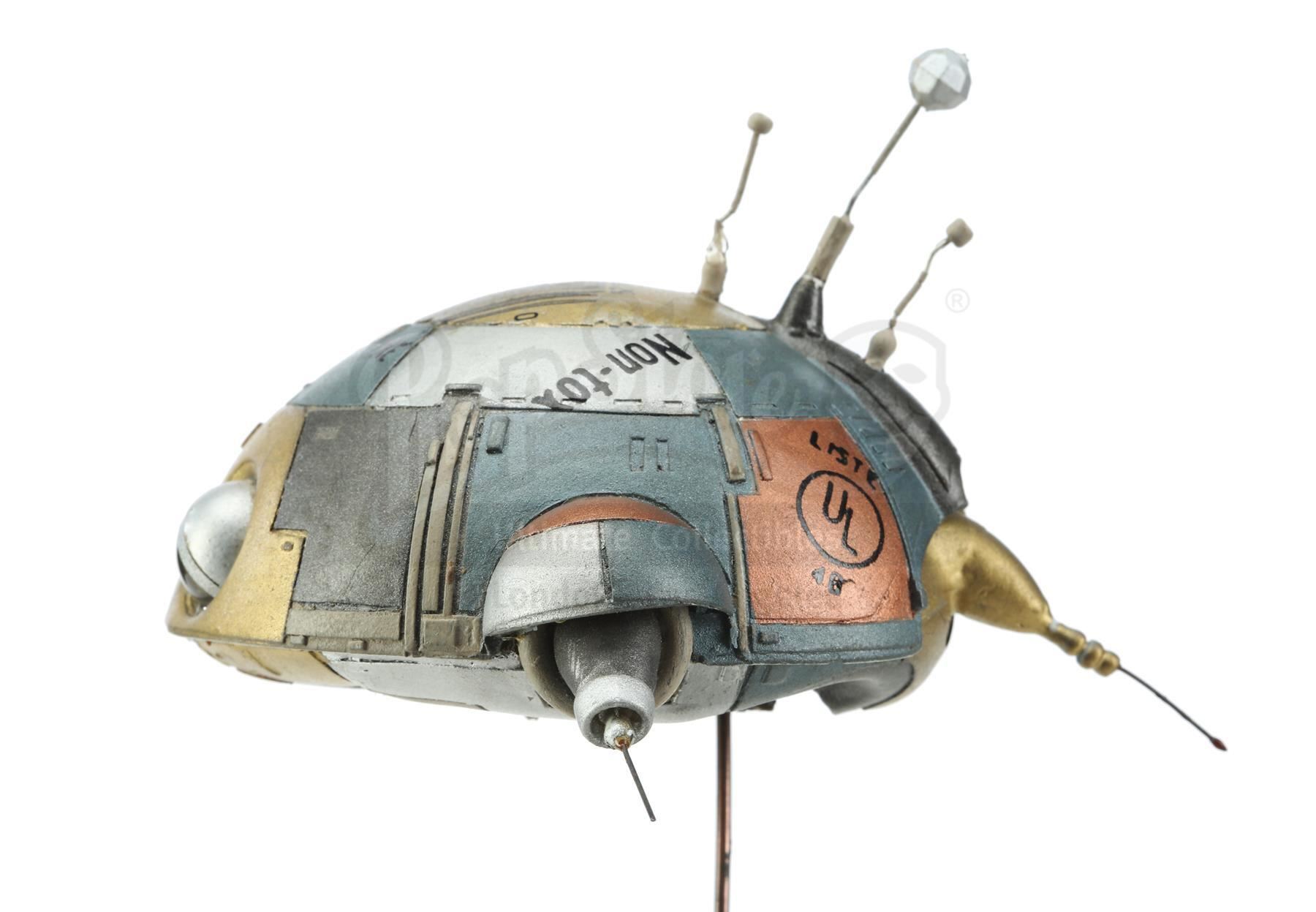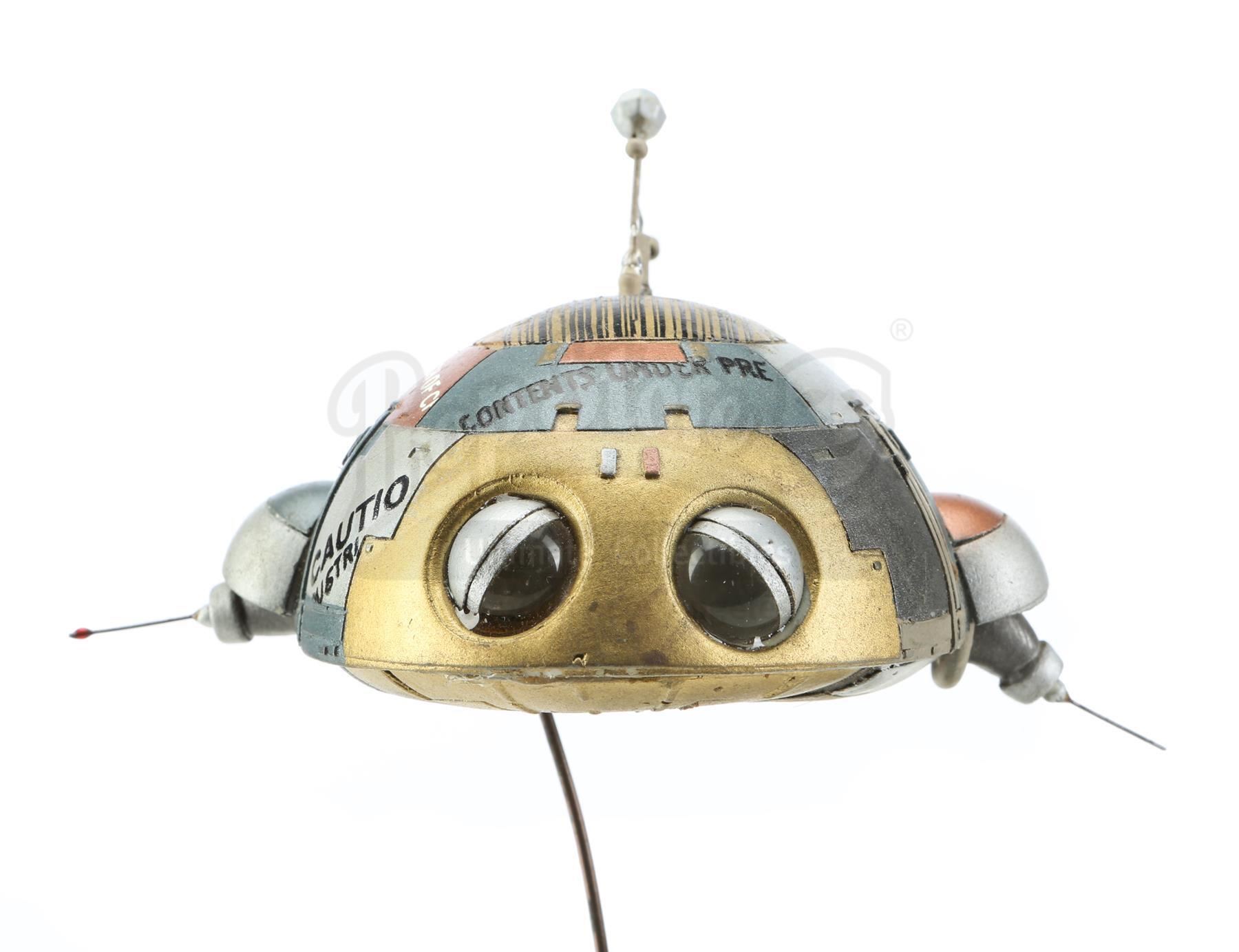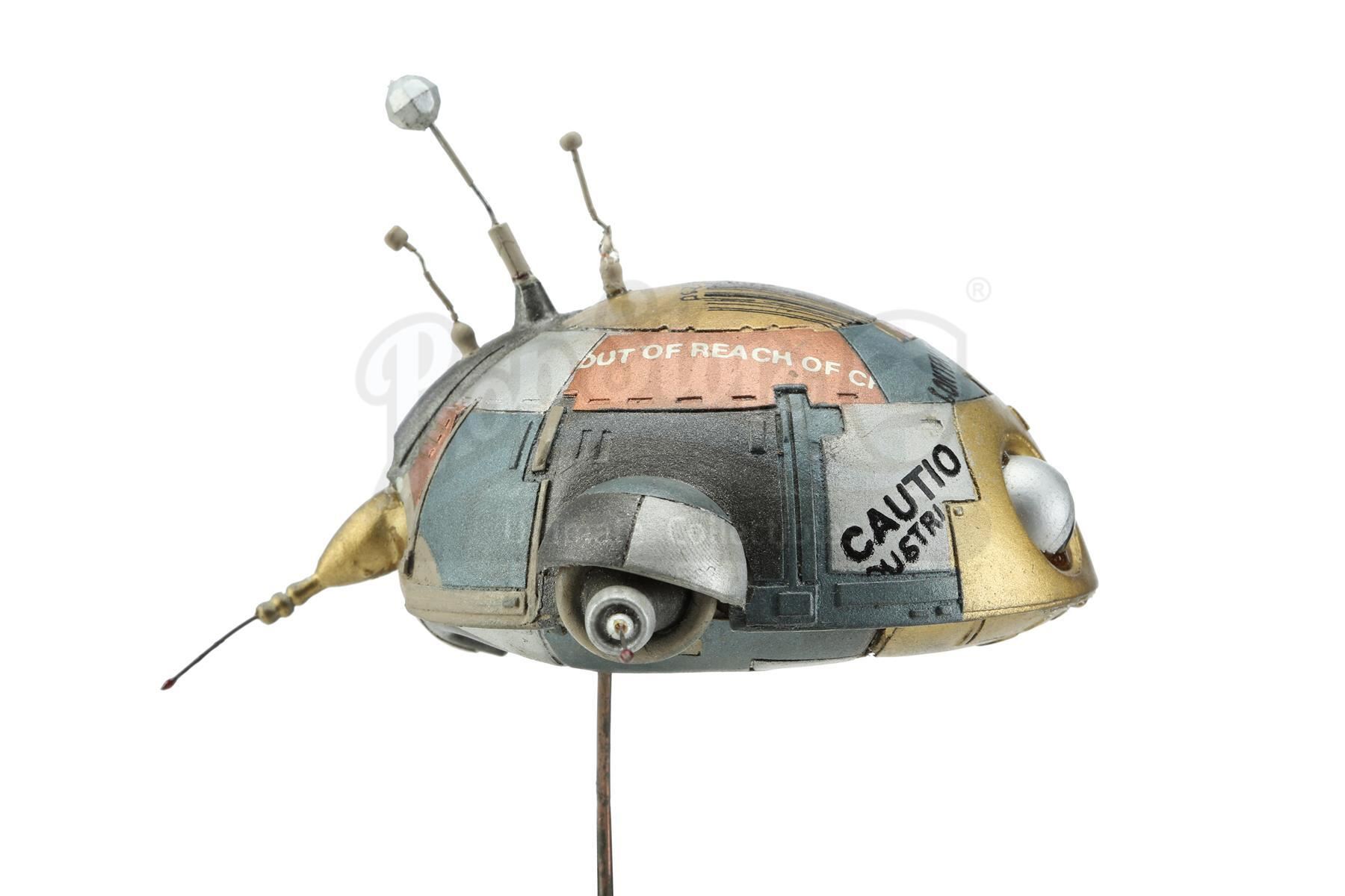 A Wheems robot puppet model from Matthew Robbins' sci-fi comedy batteries not included. Wheems, also known as "Little Guy", and his family of extraterrestrial, sentient spaceships returned to Earth to help the tenants of a destitute apartment complex.