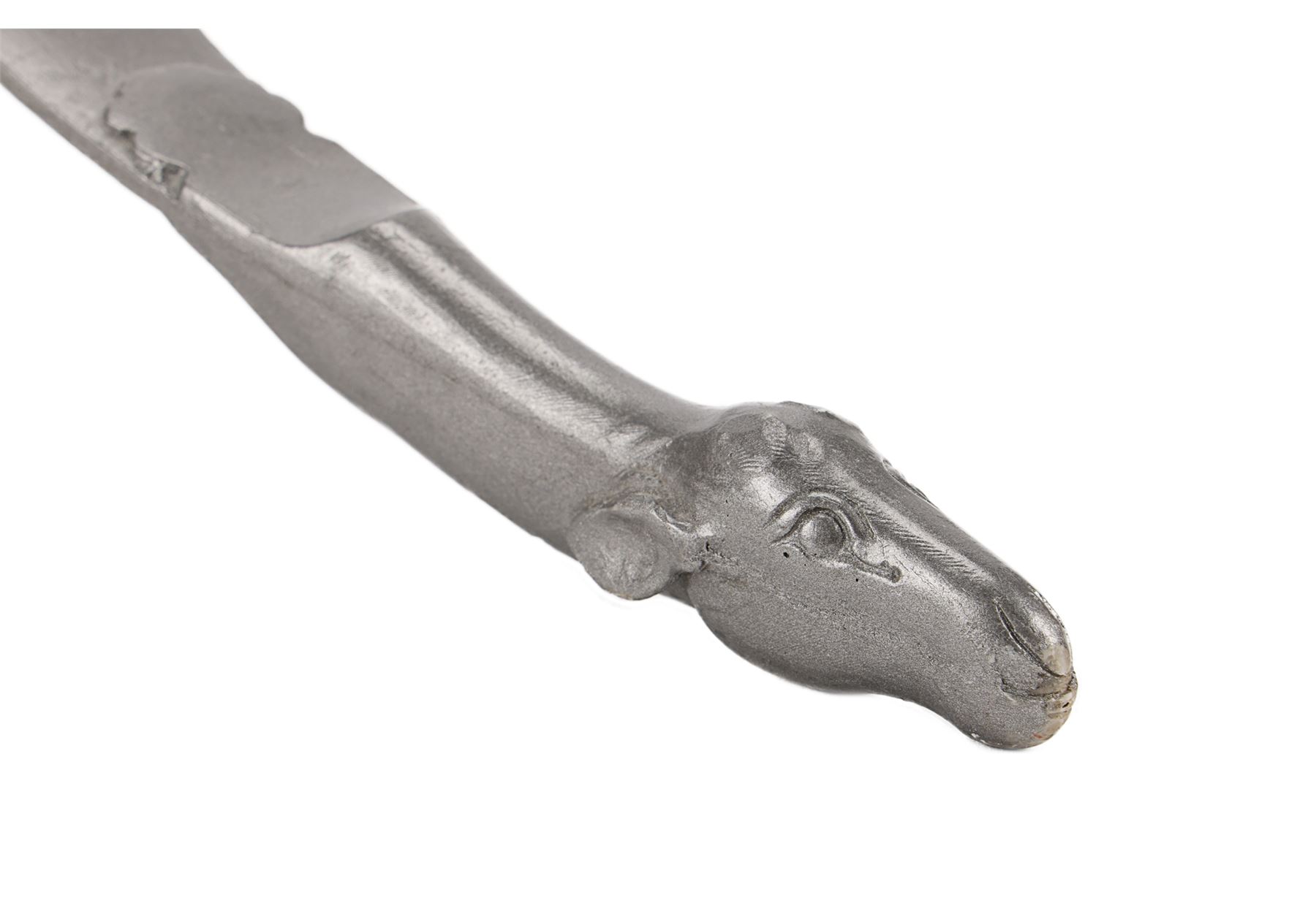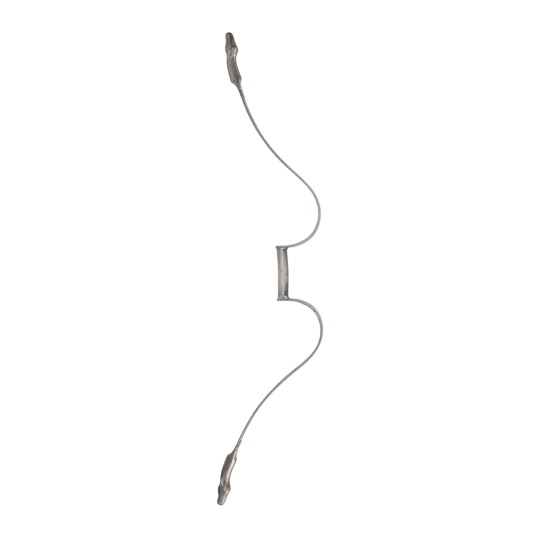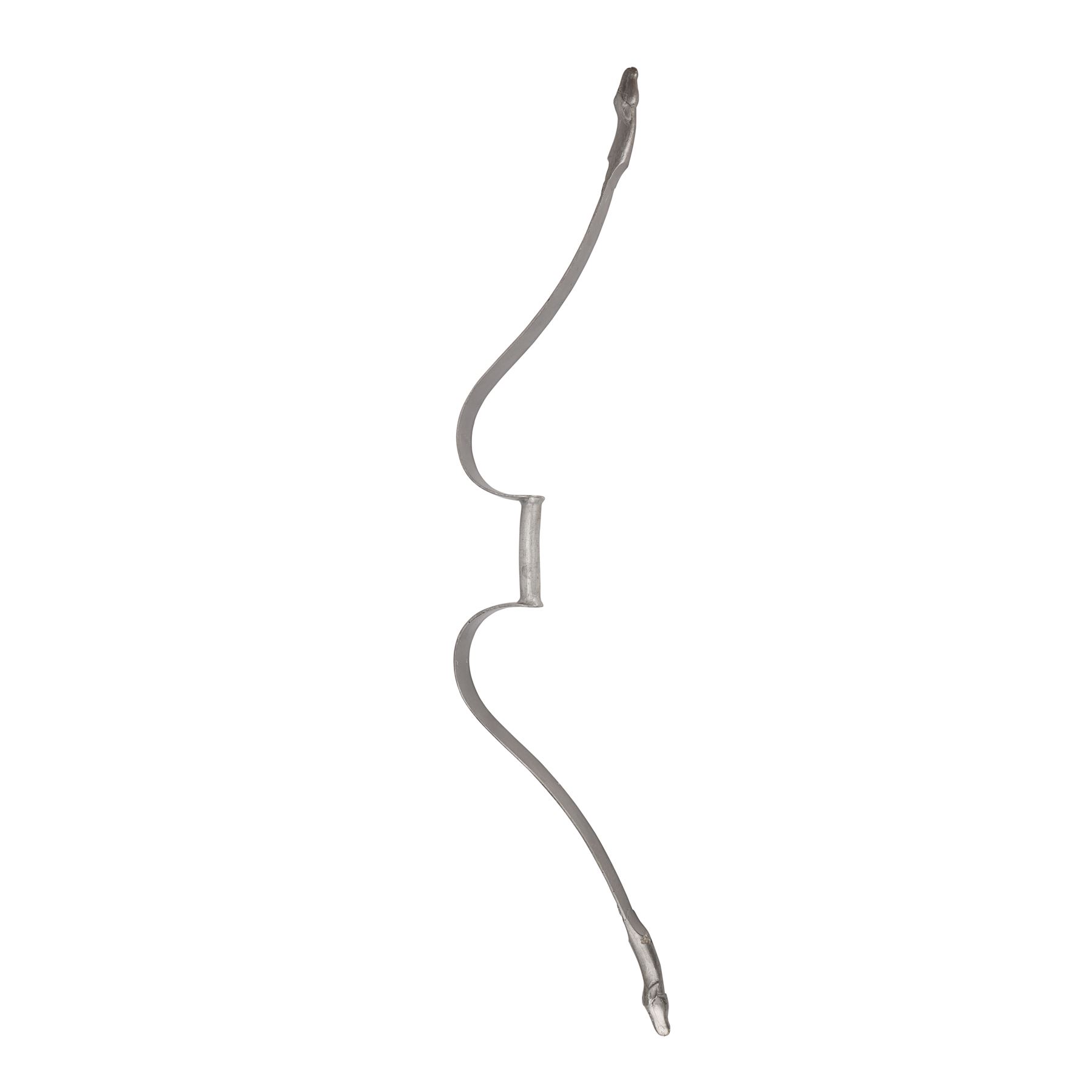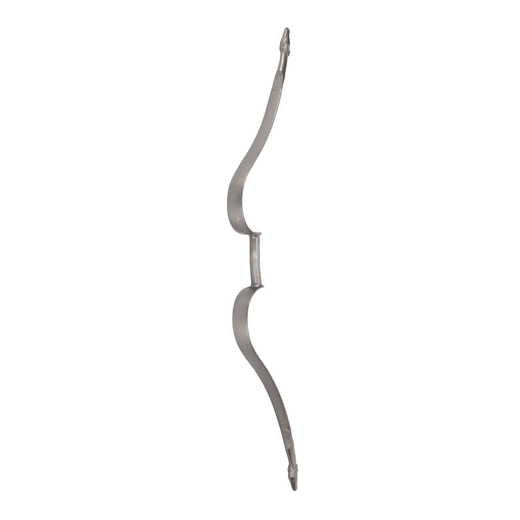 The bow is made of lightweight fibreglass and features a lamb's head at each tip. It does not include a bowstring and exhibits minor scuffs, scratches to the paint, and a chip below one of the lambs from production use and storage. Dimensions: 106 cm x 26 cm x 4.5 cm (41 3/4" x 10 1/4" x 1 3/4")