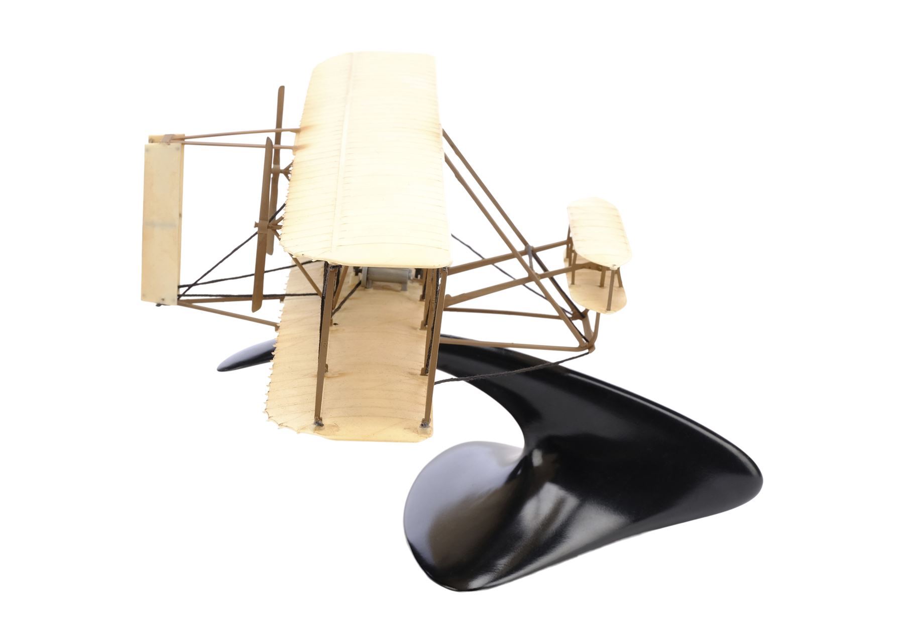 Created by Quantum Mechanix's artisan prop and model shop, QMx FX Cinema Arts, these models are made of mixed media, including plastic and resin, with detailed lettering and graphics on the rockets and black strings in the wings of the Wright Flyer. All models include black bases with felt bottoms. The finish exhibits minimal scratching. Dimensions: (largest) 8" x 24.5" x 7" (20.5 cm x 61.75 cm x 18 cm)