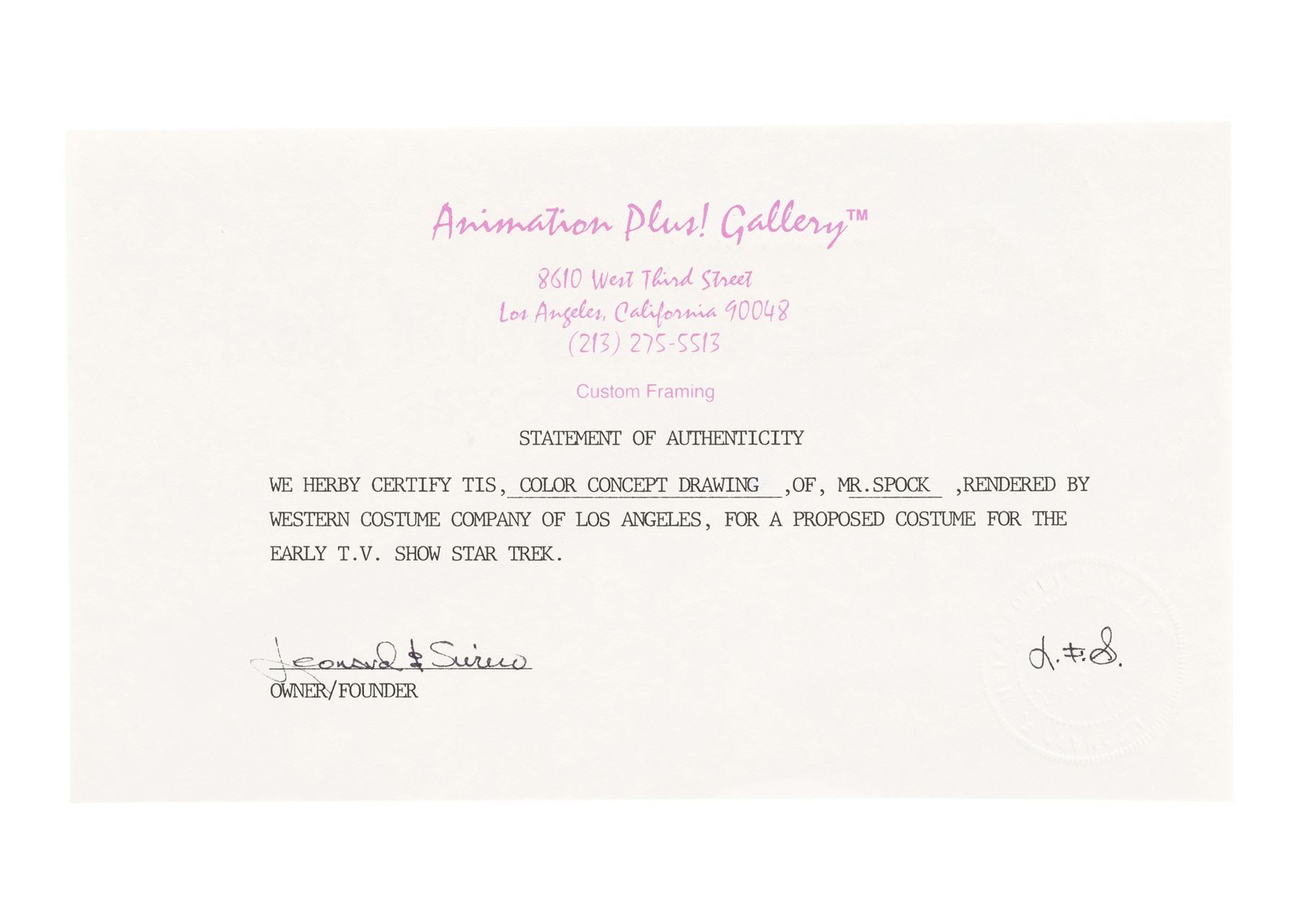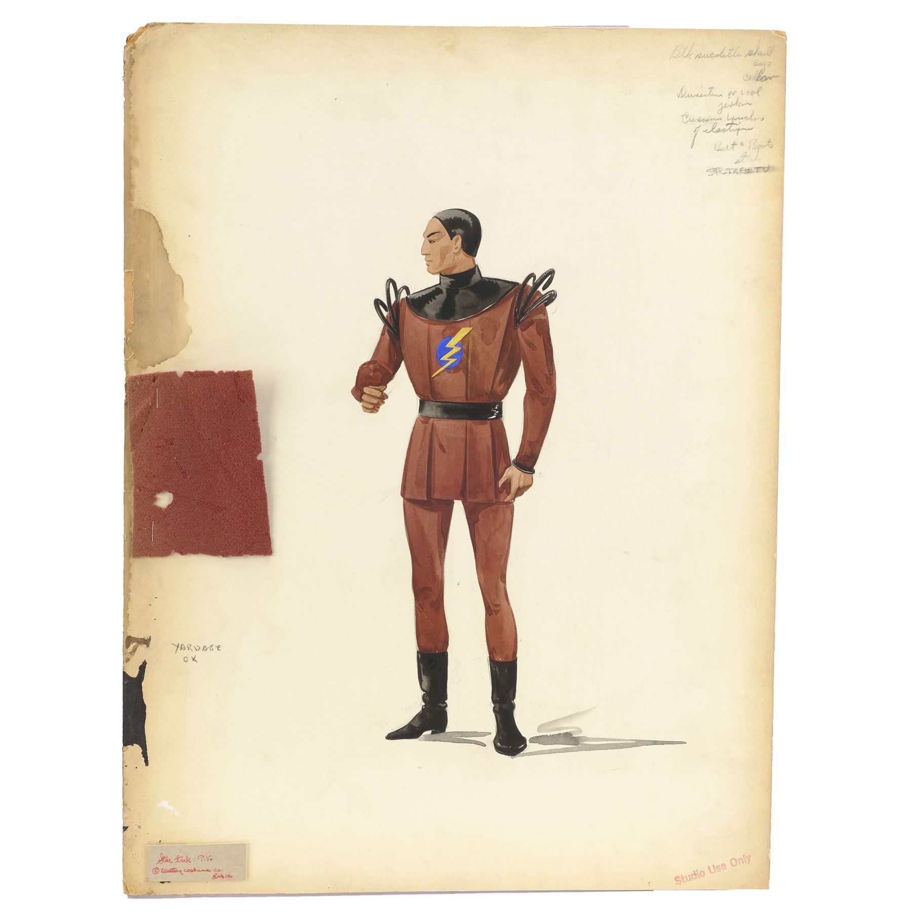 STAR TREK: THE ORIGINAL SERIES (1966-1969) - Hand-Painted Spock Costume Concept Artwork - A hand-painted Spock costume concept artwork from the production of Gene Roddenberry's Star Trek: The Original Series. Pre-dating costume designer William Ware Theiss' involvement, Western Costume Company created various costume concepts, thus making this an early piece of Star Trek history.