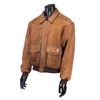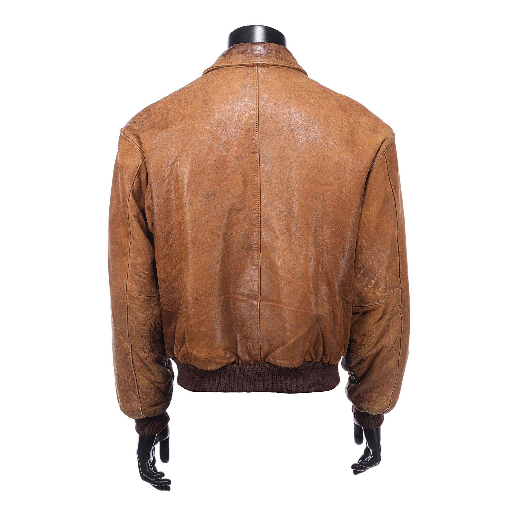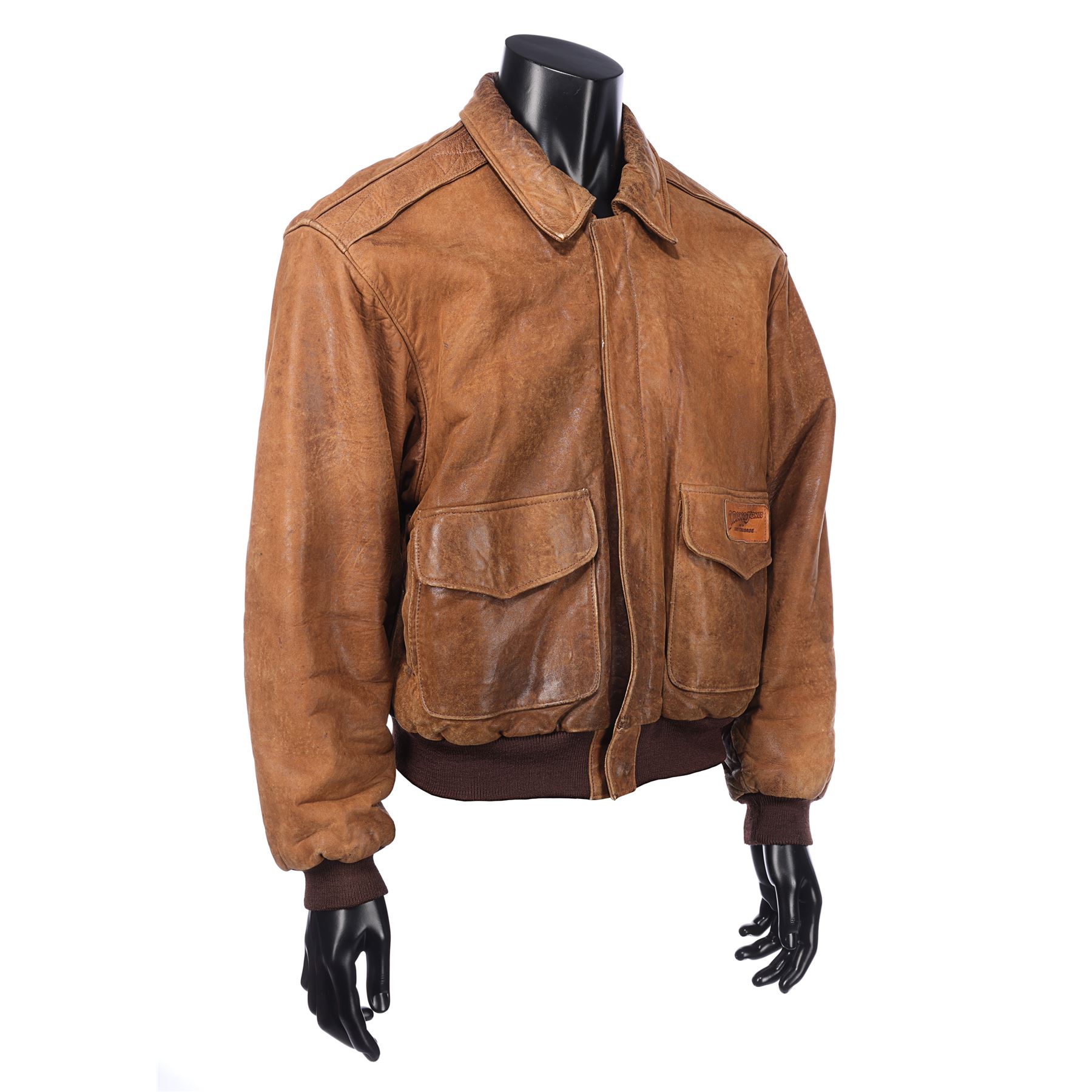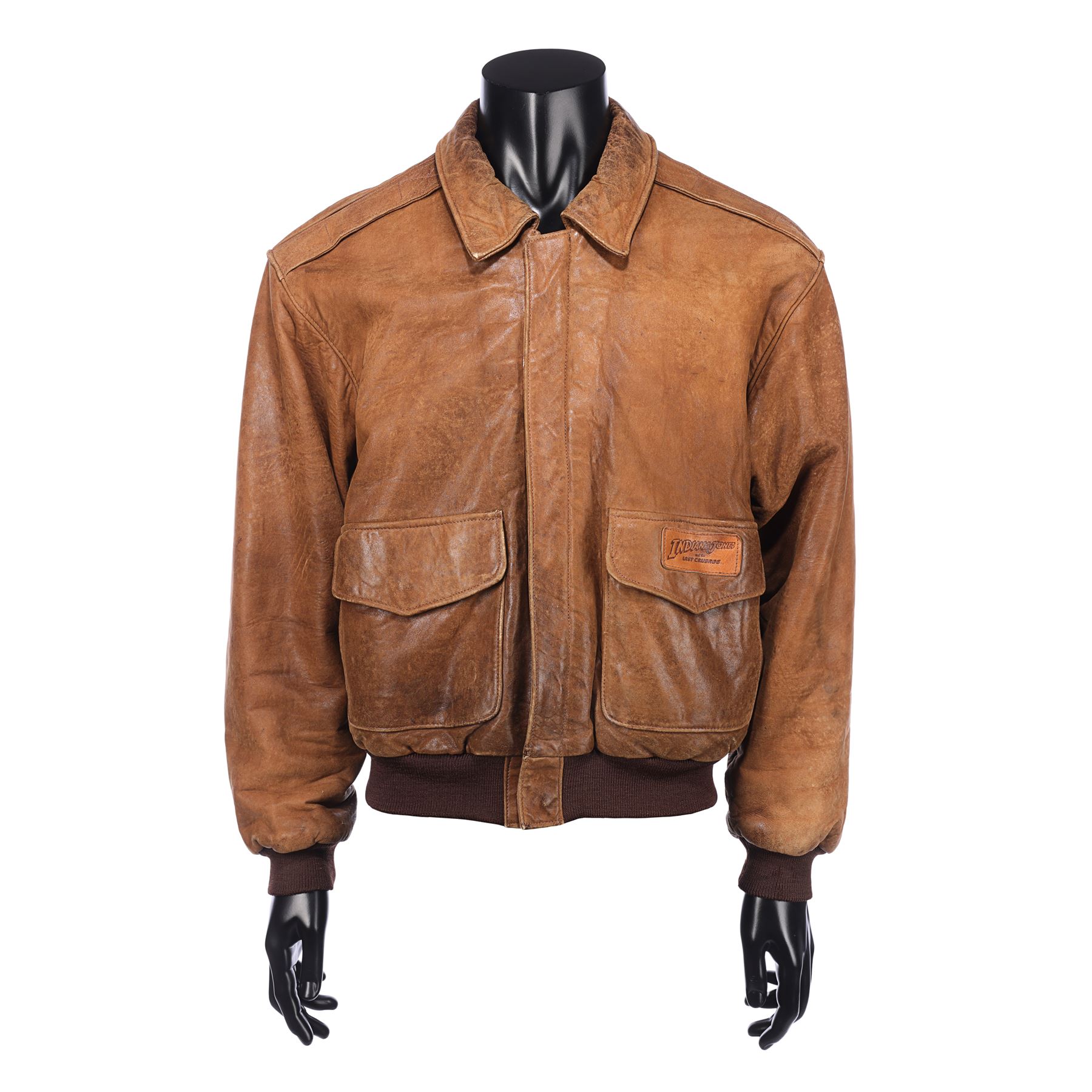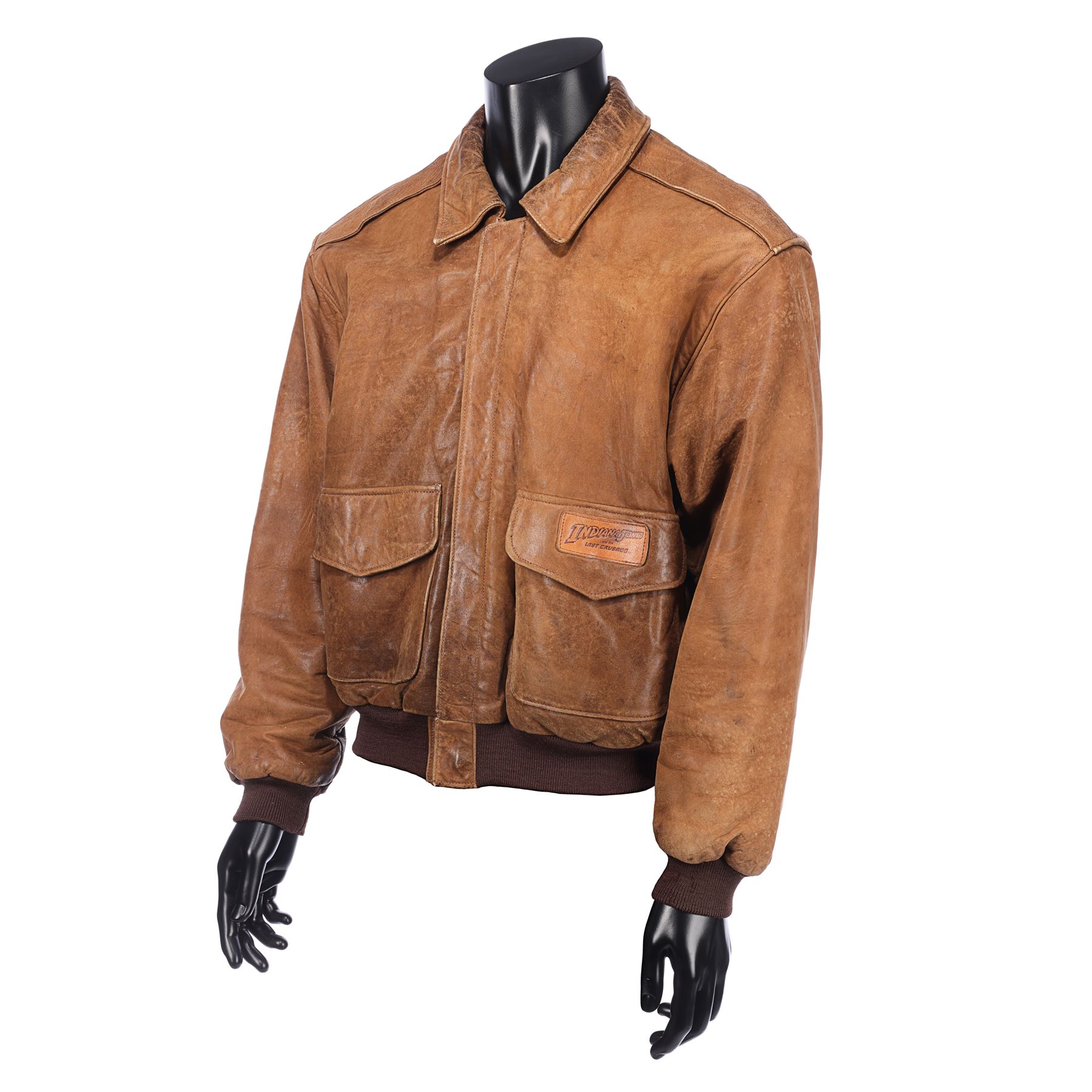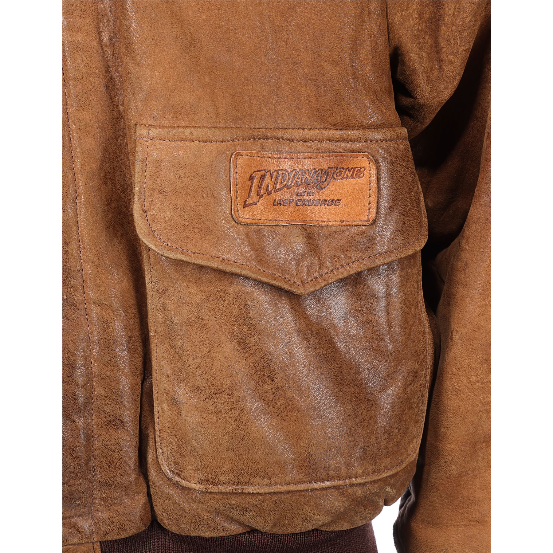 A crew jacket from the production of Steven Spielberg's action-adventure sequel Indiana Jones and the Last Crusade. Manufactured by Californian-based sportswear company Golden Bear, this size 42 zip-up jacket is made from leather, while the lining and trim are nylon and wool, respectively. There are two buttoned pockets at the bottom of the jacket's front, one of which has a leather label sewn into it stating the film's title. The jacket also features Thinsulate thermal insulation.