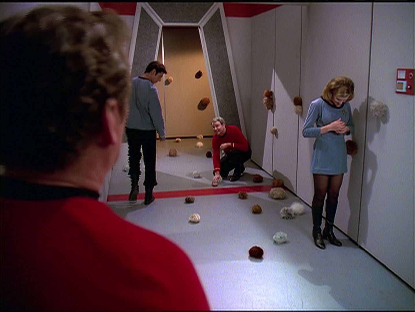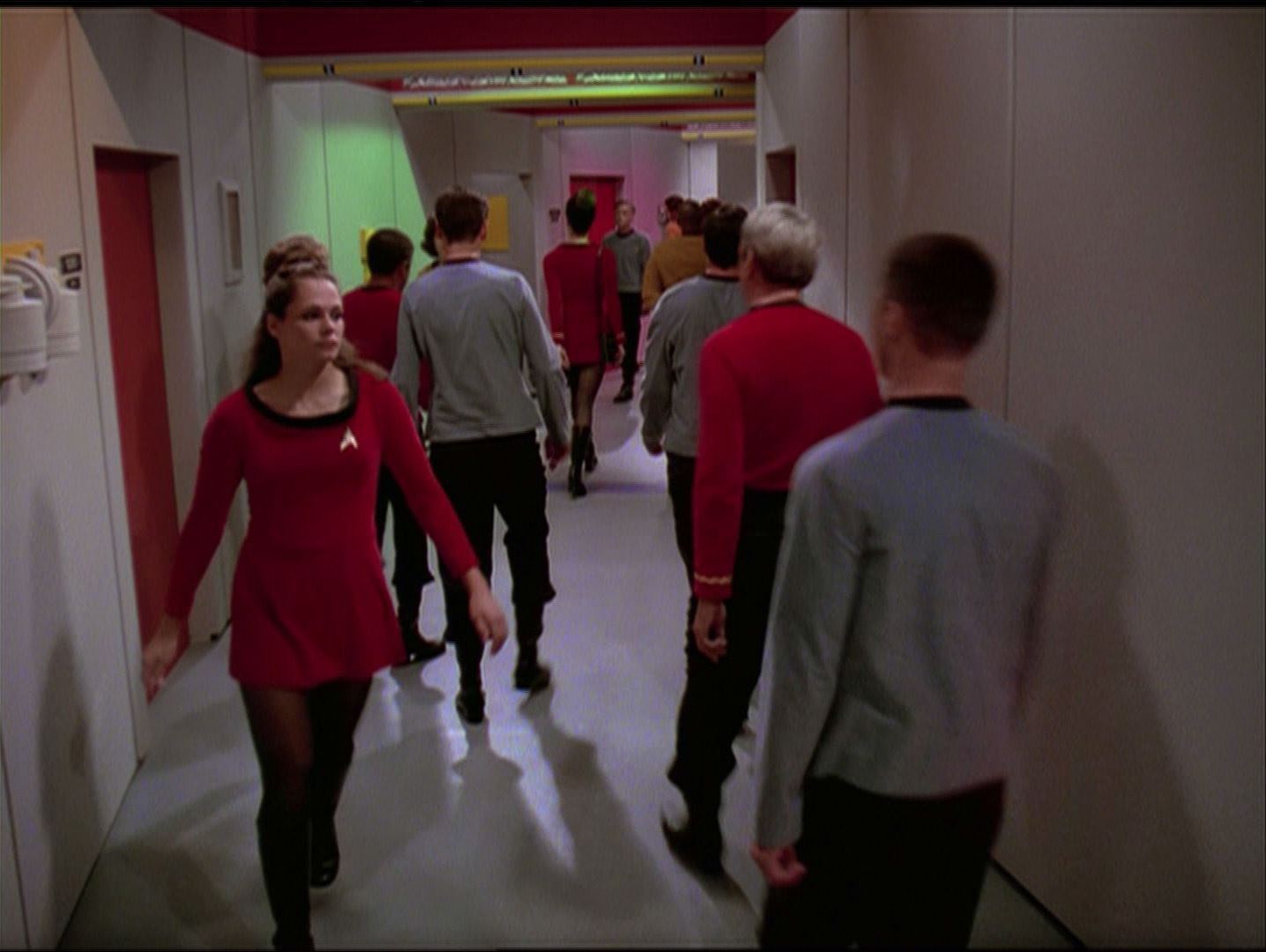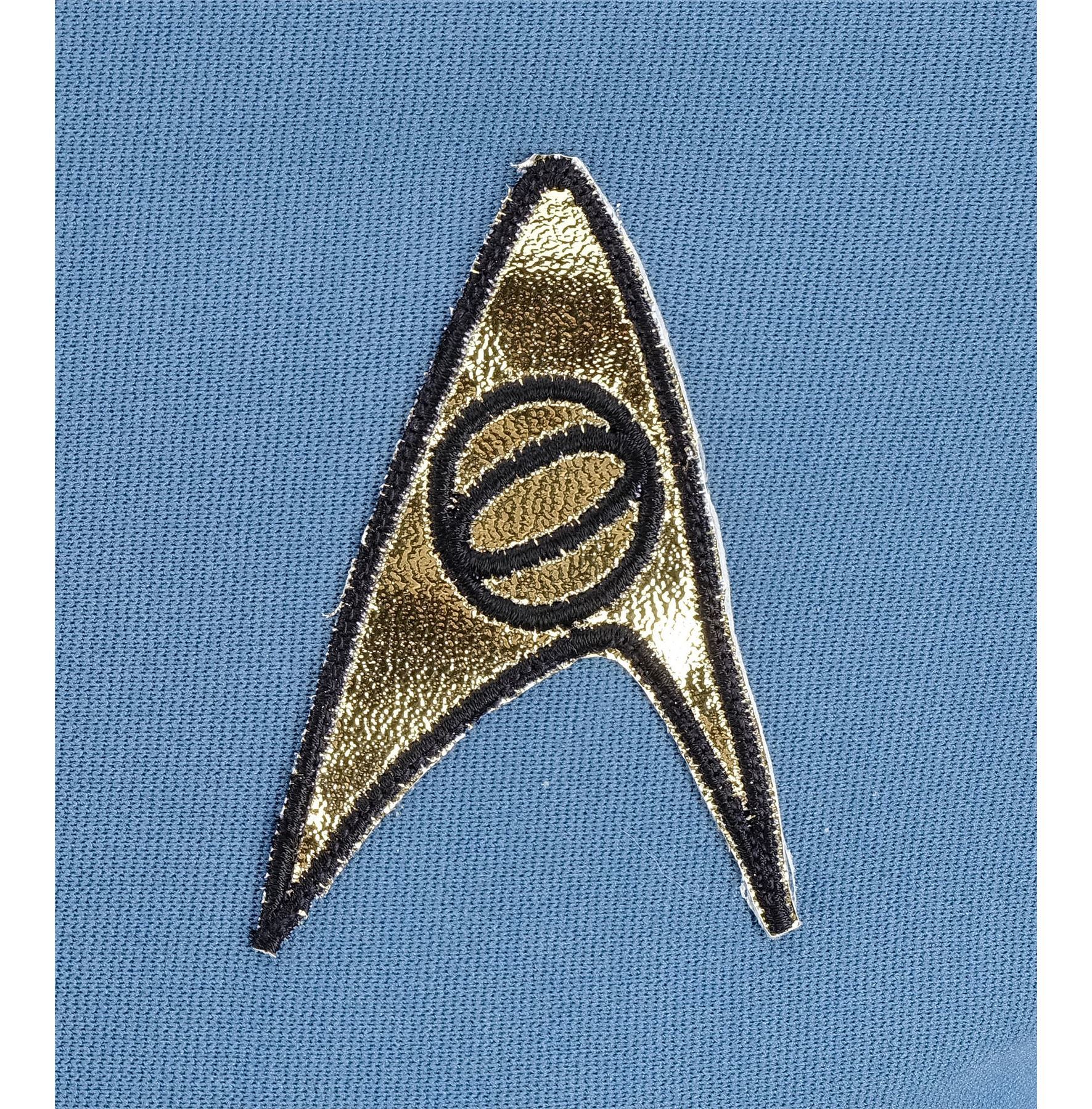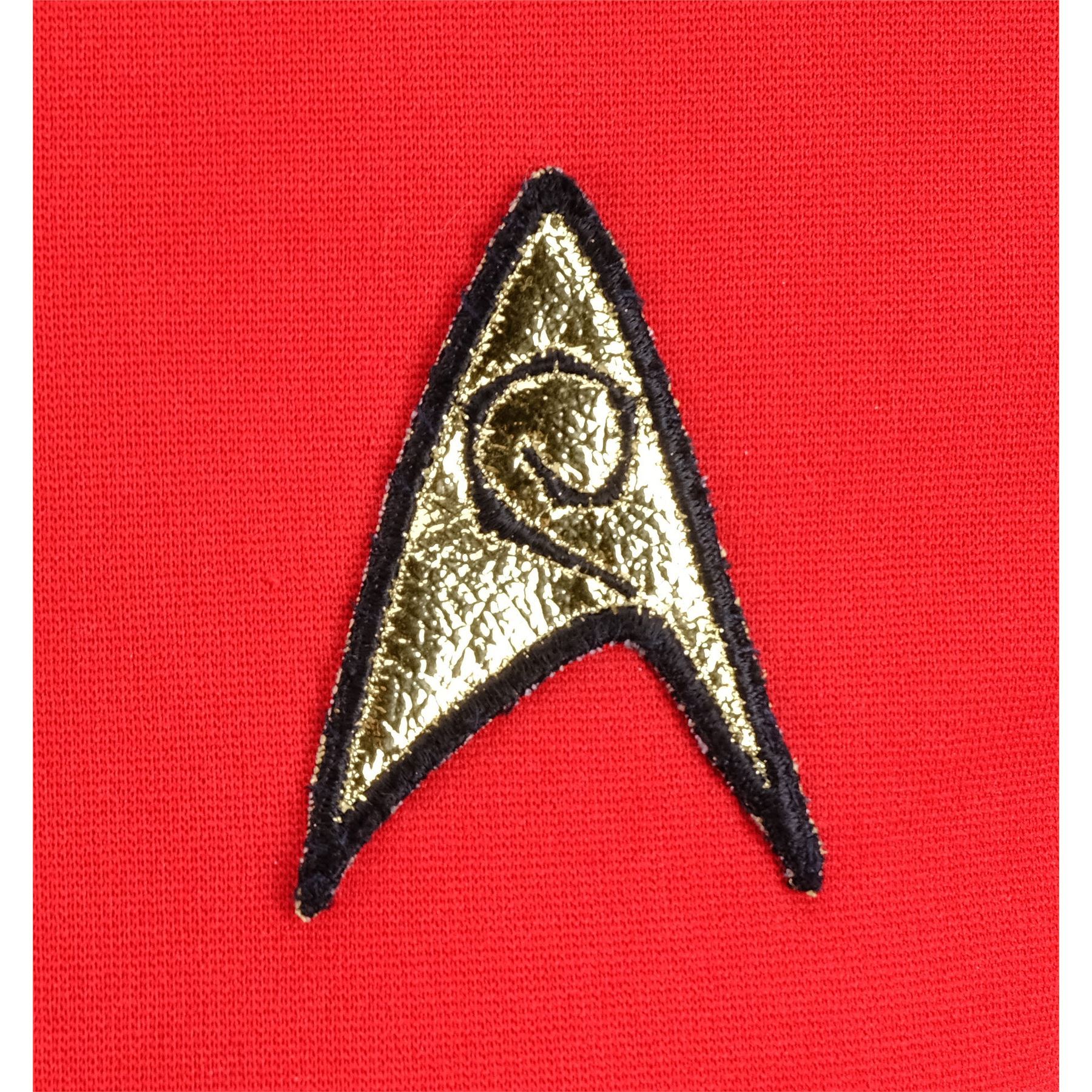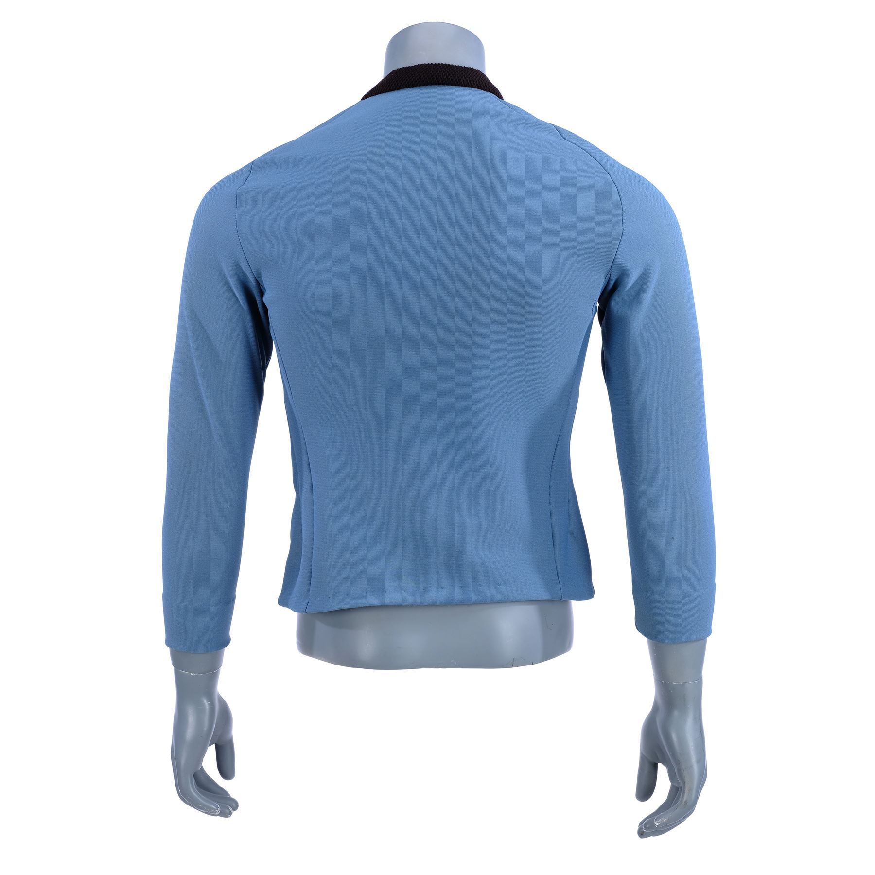 STAR TREK: DEEP SPACE NINE (1993-1999) - Pair of Science and Operations Divisions 23rd Century Starfleet Uniform Tunics - A pair of Science and Operations divisions 23rd Century Starfleet uniform tunics from the sci-fi television series Star Trek: Deep Space Nine. In the Season 5 episode "Trials and Tribble-ations," the Deep Space 9 crew wore 23rd Century uniforms to blend in amongst the crew of the Enterprise when they traveled back in time to the 2200s. This lot consists of two Spandex-blend tunics, one in blue with a gold-color Science division assignment patch and one in red with a gold-color Operations division assignment patch, both with hidden shoulder-seam zippers. The tunics exhibit minimal signs of wear from production, including loose threads in the collars.