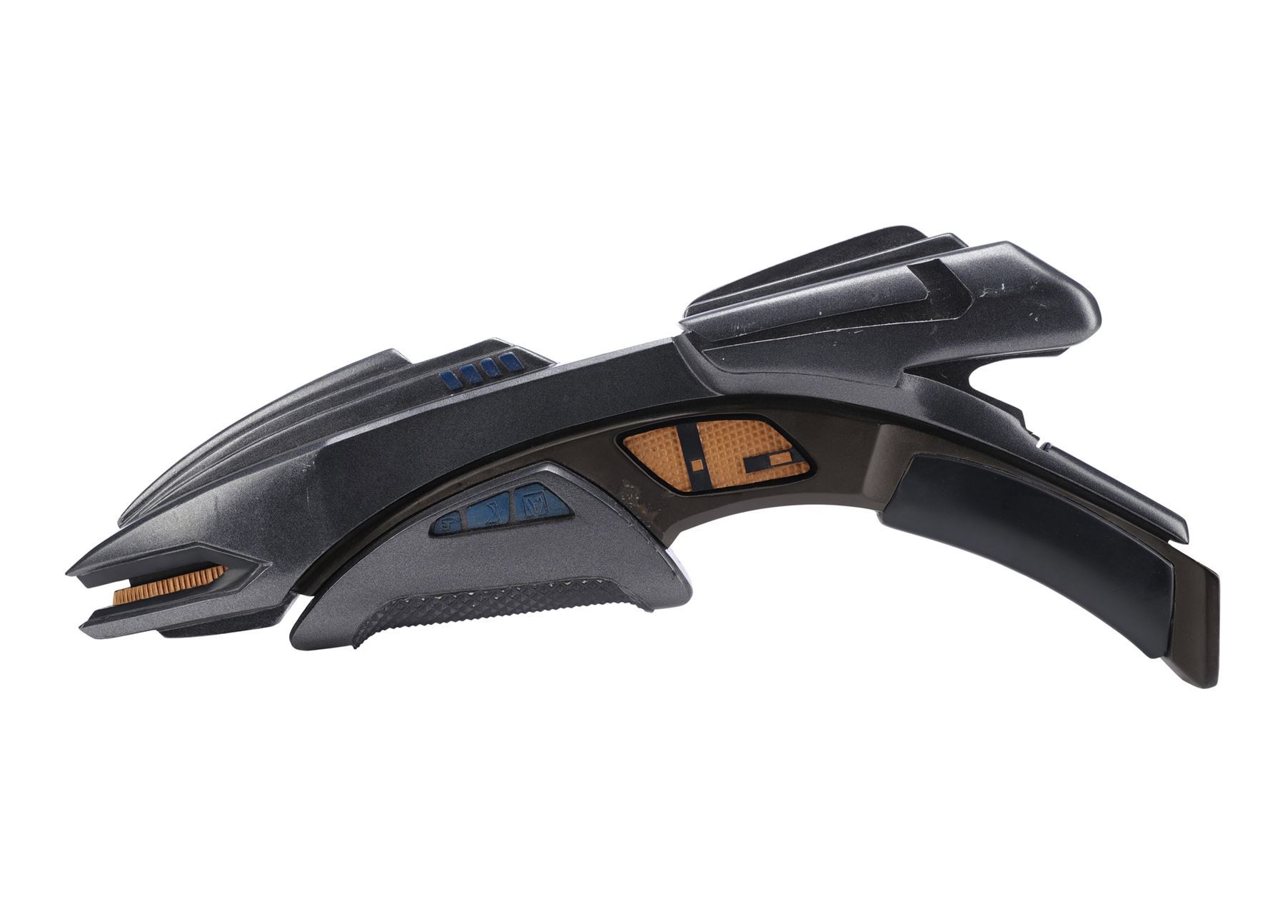 STAR TREK: DEEP SPACE NINE (1993-1999) - Romulan Disruptor Rifle - A Romulan disruptor rifle from the sci-fi series Star Trek: Deep Space Nine. Romulan soldiers carried their signature rifles throughout the series, including when Enabran Tain's (Paul Dooley) men took Elim Garak (Andrew J. Robinson) and Odo (Rene Auberjonois) hostage in the Season 3 episode "Improbable Cause."