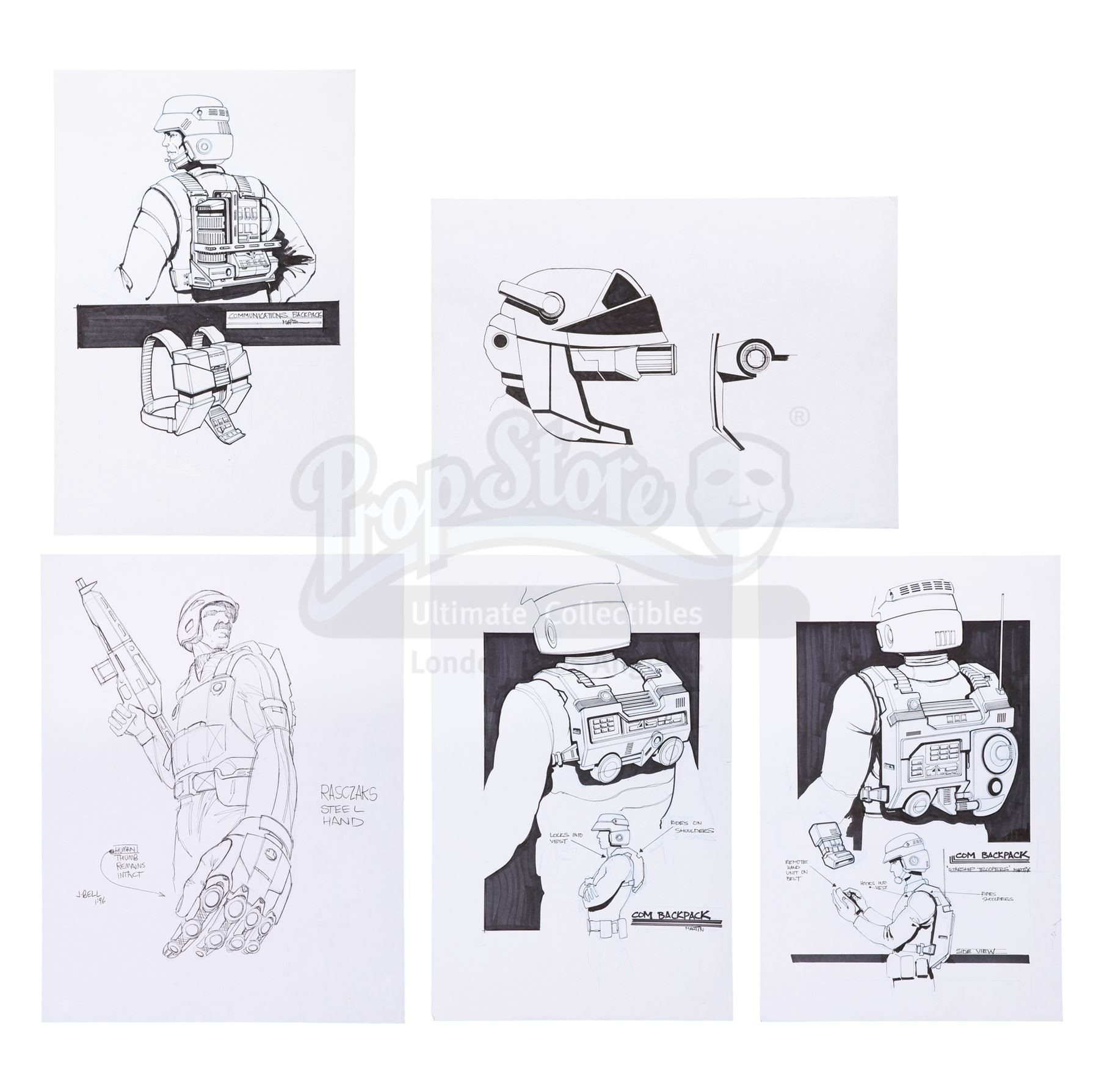 Lot # 1249: STARSHIP TROOPERS (1997) - Collection of Hand-Drawn Concept Artwork for Mobile Infantry