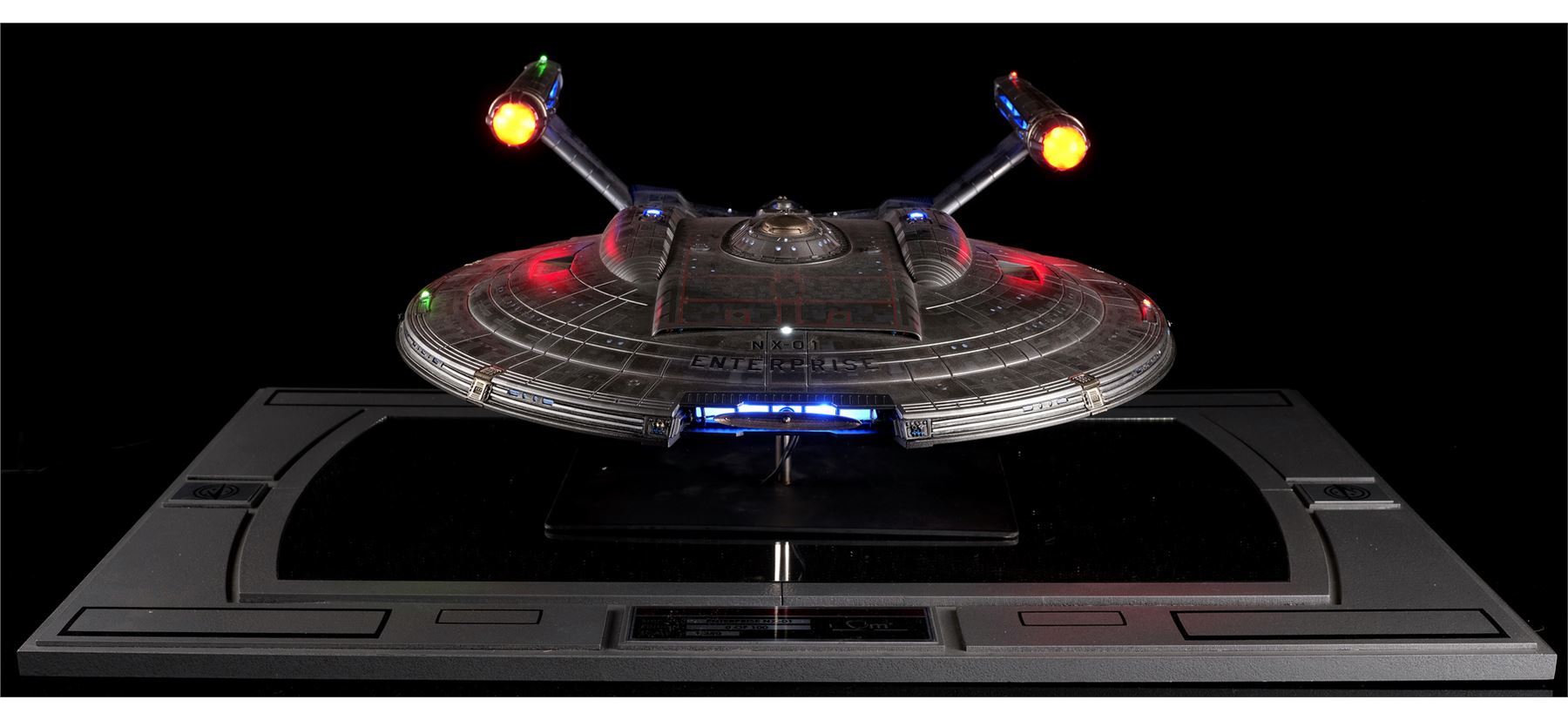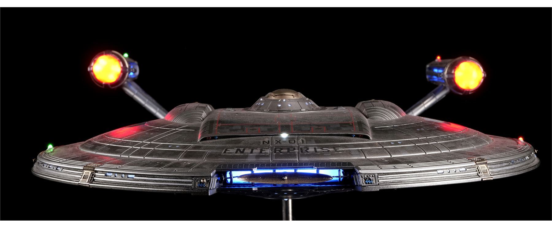 STAR TREK: ENTERPRISE (2001-2005) - Light-Up QMx Replica Studio-Scale Enterprise NX-01 Promotional Model - A light-up QMx replica studio-scale promotional model of the Enterprise NX-01 from the sci-fi series Star Trek: Enterprise. Captain Jonathan Archer (Scott Bakula) and his crew forged alliances and engaged in missions aboard Enterprise.