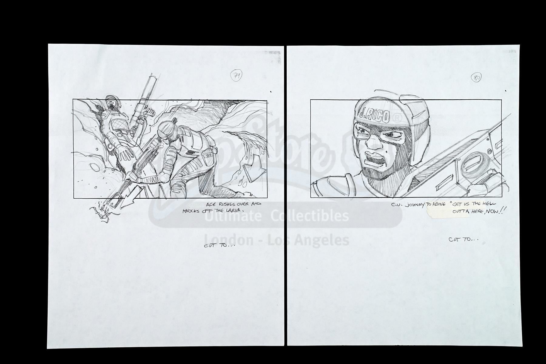 Lot # 1261: STARSHIP TROOPERS (1997) - 16 Hand-Drawn John Bell Arachnid Caves Storyboards