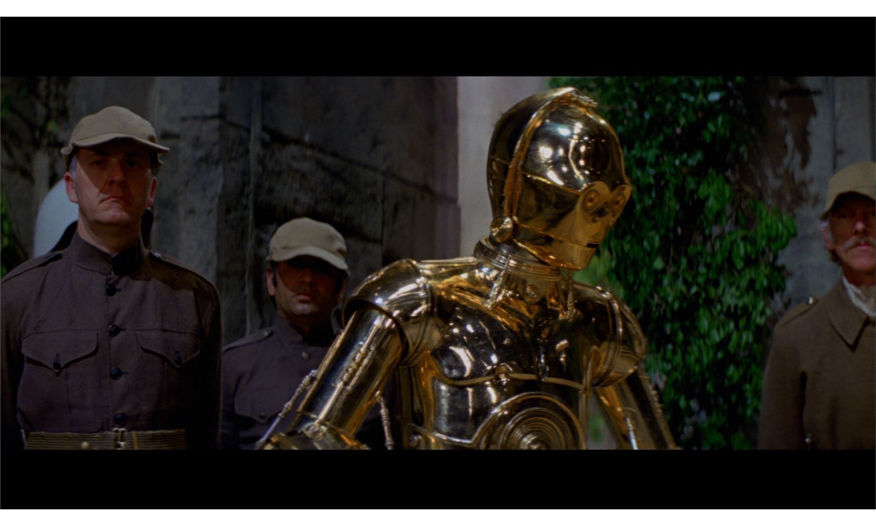 STAR WARS: EPISODE IV - A NEW HOPE (1977) - Rebel Trooper Ceremonial Uniform Costume - A Rebel Trooper ceremonial uniform costume from George Lucas' Star Wars: A New Hope. Rebel Troopers gathered in the Great Temple on Yavin 4 to honor and reward Luke Skywalker (Mark Hamill), Han Solo (Harrison Ford), and Chewbacca (Peter Mayhew) in their success of destroying the Death Star.
