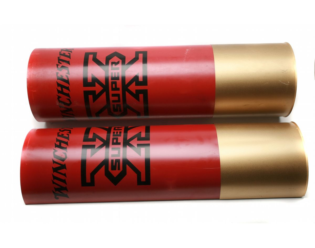 Two asst'd Winchester Super X shotshell displays - one 36"x 11" diameter complete plastic shell with two hanging hooks - one 36" half shell for wall mounting - both in used condition with some wear and handling marks - hard to find item - Oversize Shipping - non-ffl - 25VVFKIL115
