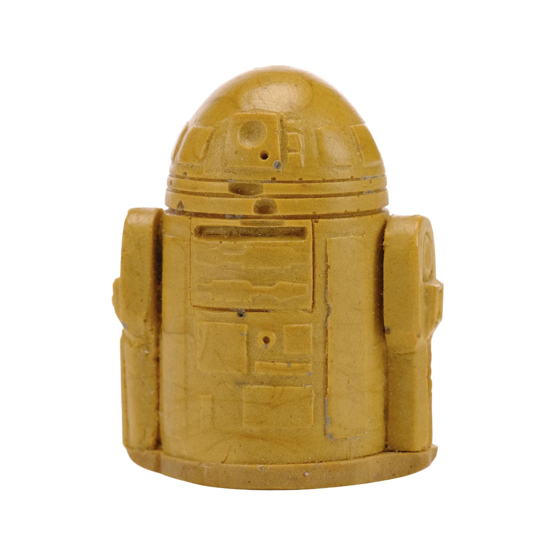 STAR WARS: EPISODE IV - A NEW HOPE (1977) - Dave Jones Collection: Production-Made R2-D2 Model Miniature - An R2-D2 model miniature from the production of George Lucas' Star Wars: A New Hope. R2 (Kenny Baker) aided Luke Skywalker (Mark Hamill) in his assault on the Death Star from the back of his X-wing.