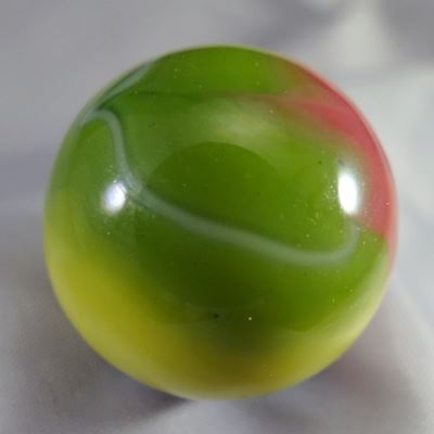 Mint (9.9-9.0). A marble that is in its original condition is identified as Mint. The surface is unmarked and undamaged. There may be some minor rubbing on the surface of the marble is as it came from the factory.