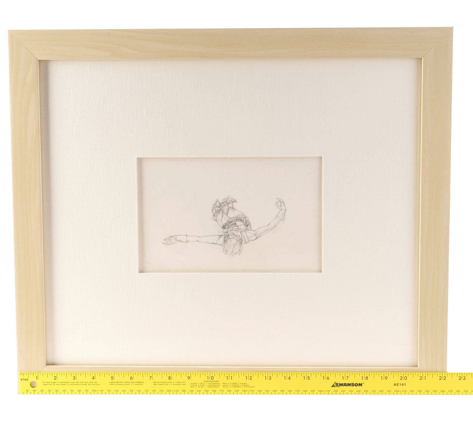 STAR WARS: EPISODE IV - A NEW HOPE (1977) - Framed Hand-Drawn Ralph McQuarrie Female Luke Skywalker Hanging from Tree Concept Sketch - A framed concept sketch of a female Luke Skywalker hanging from a tree hand-drawn by production illustrator Ralph McQuarrie for George Lucas' Star Wars: A New Hope. McQuarrie drew this sketch in between the second and third drafts of Lucas' screenplay, during which time the director considered using a female Luke. In the second draft, Luke's lifepod crashed into a tree.
