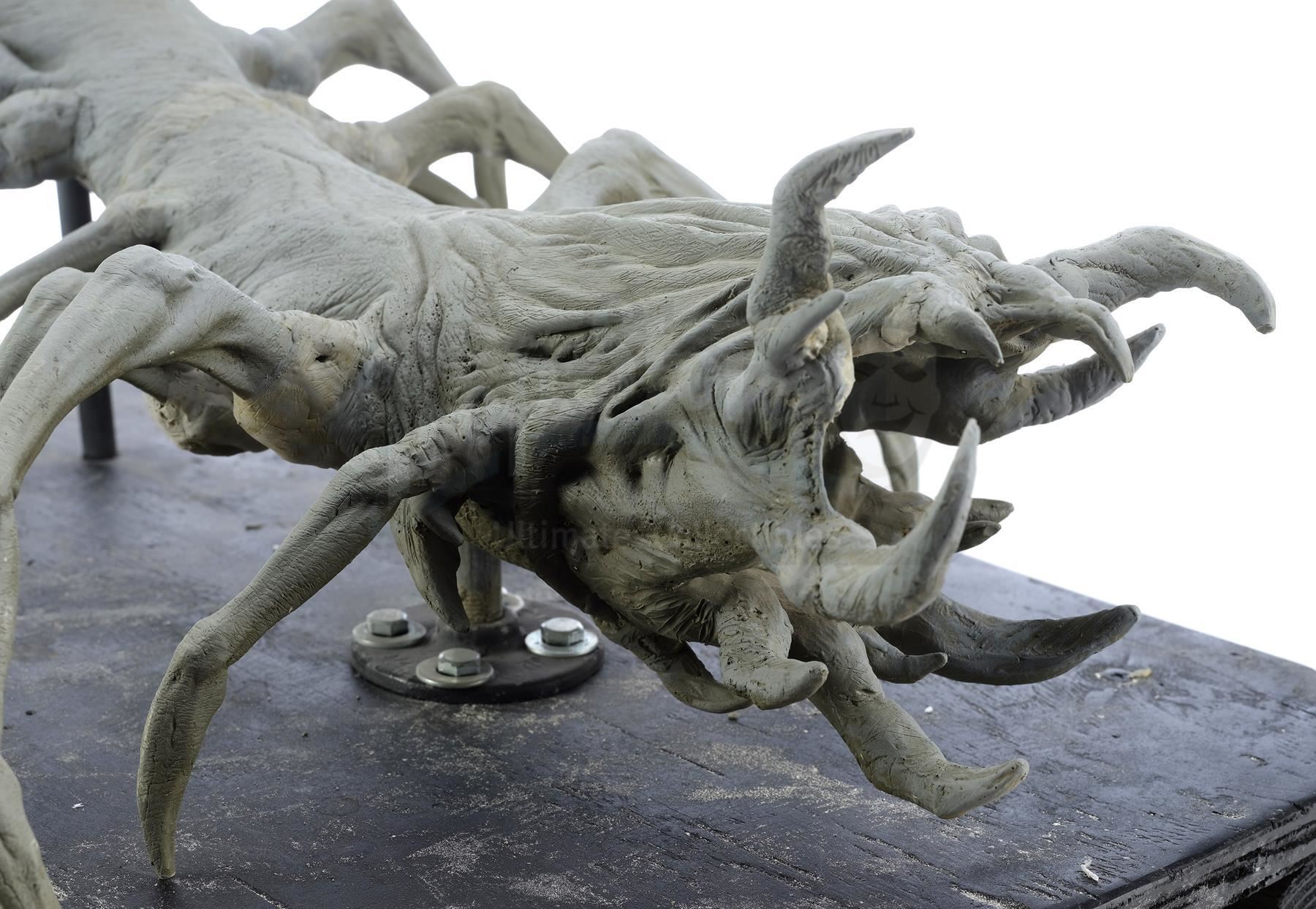 This lot will be auctioned on Thursday, July 1st. The auction will begin at 9:00am PDT and lots are sold sequentially via live auctioneer; tune in to the live streaming broadcast on auction day to follow the pace. Note other lots in the auction may close on June 29th or June 30th. An "Edvard Arm Centipede" scanning maquette from Matthijs van Heijningen's horror prequel The Thing. A parasitic Thing long frozen in the Antarctic permafrost took over Norwegian scientist Edvard Wolner's (Trond Espen Seim) body via his arm. Created by Academy Award-winning special effects group Amalgamated Dynamics, Inc. (ADI), this hand-painted gray clay maquette was created for digital scanning of the Edvard arm centipede. It comes mounted to a wood board affixed with tape by production and includes an ADI Certificate of Authenticity. The lot remains in good overall condition with minor scuffs to the clay. Dimensions: 22" x 14" x 20" (56 cm x 35.75 cm x 51 cm) Estimate: $1,200 - 1,800
