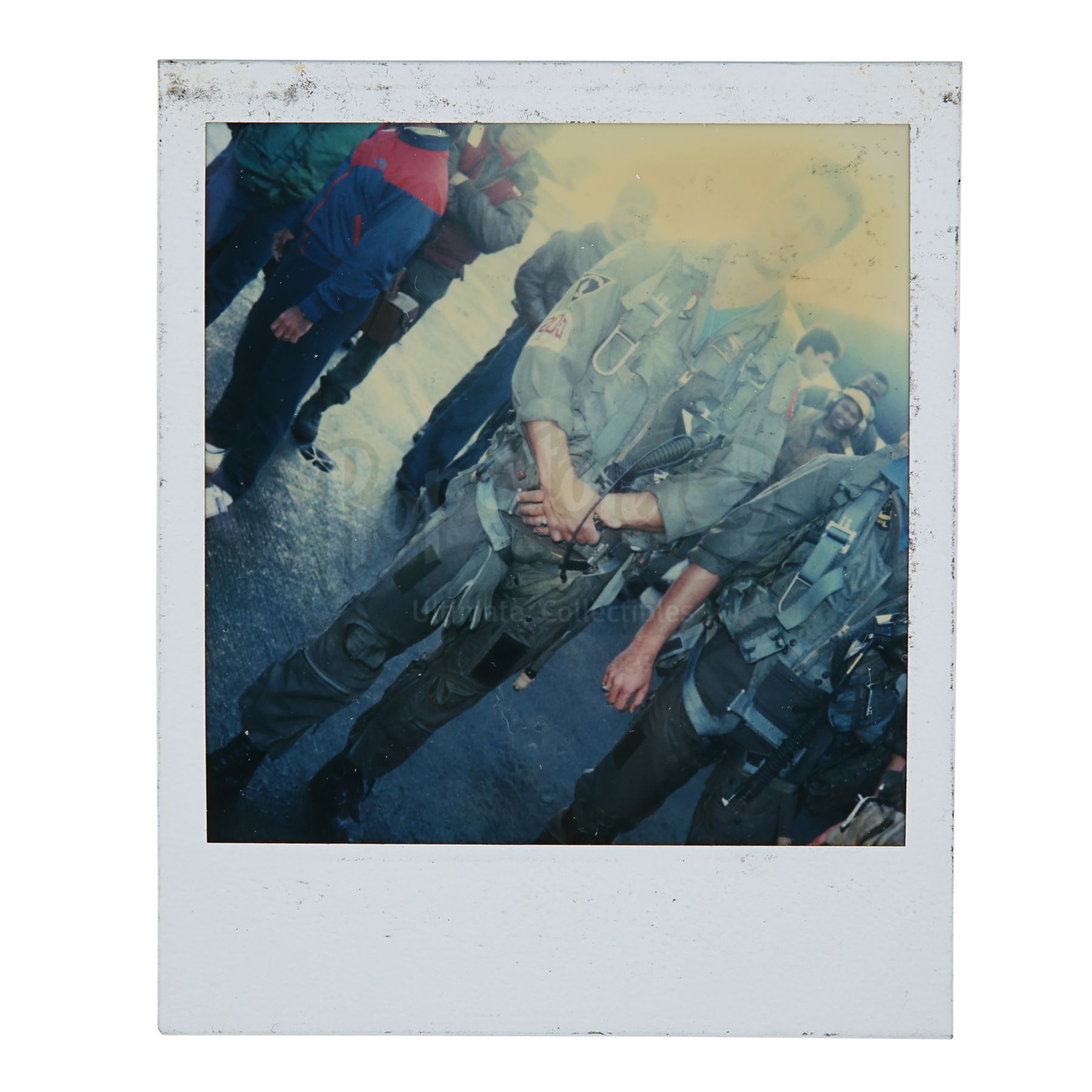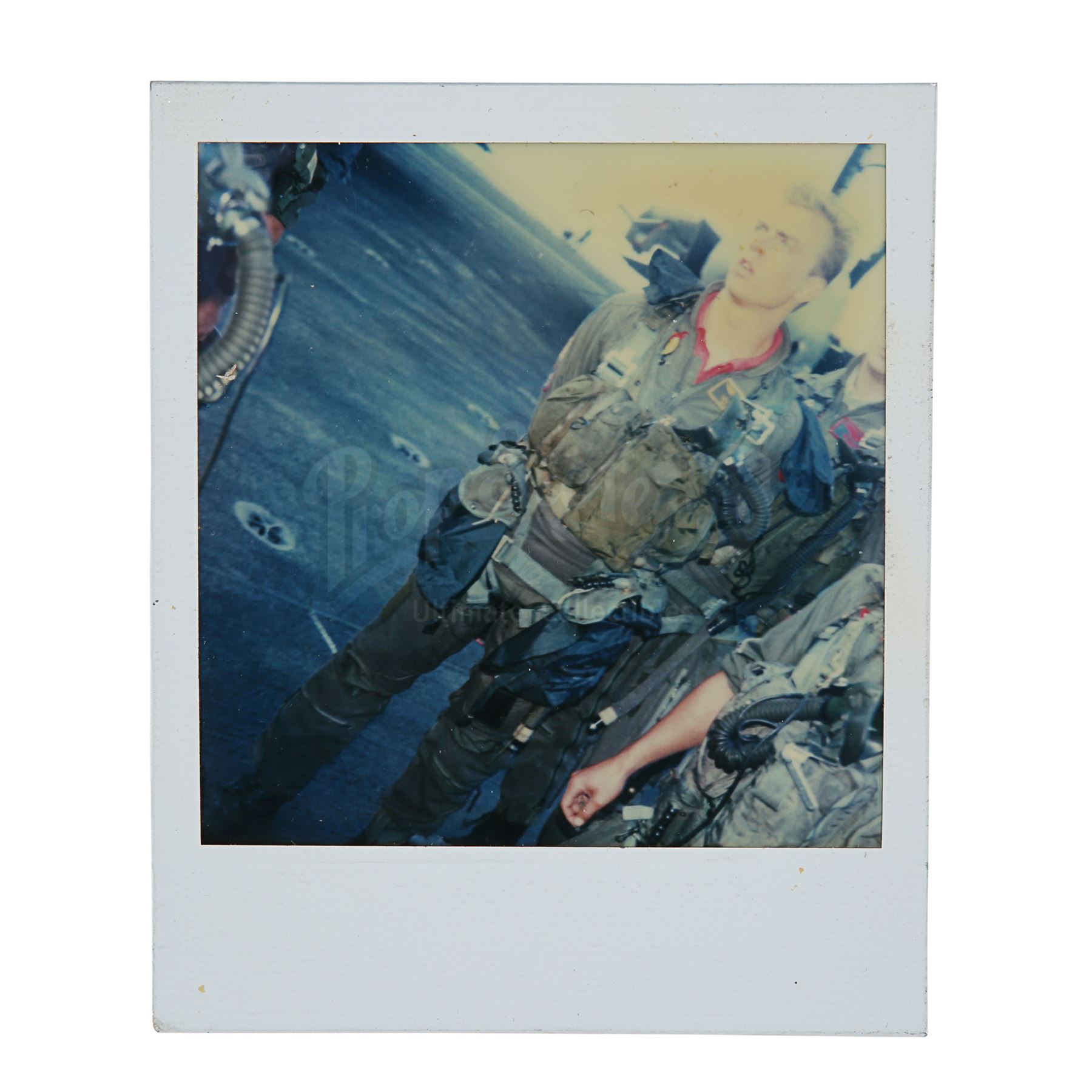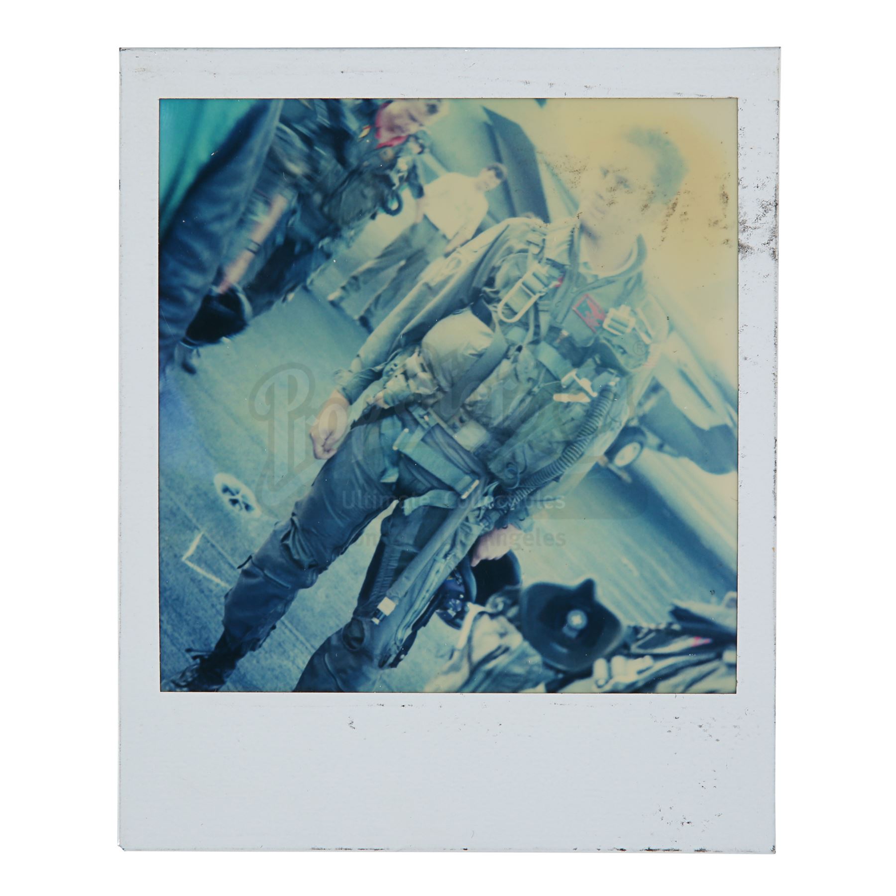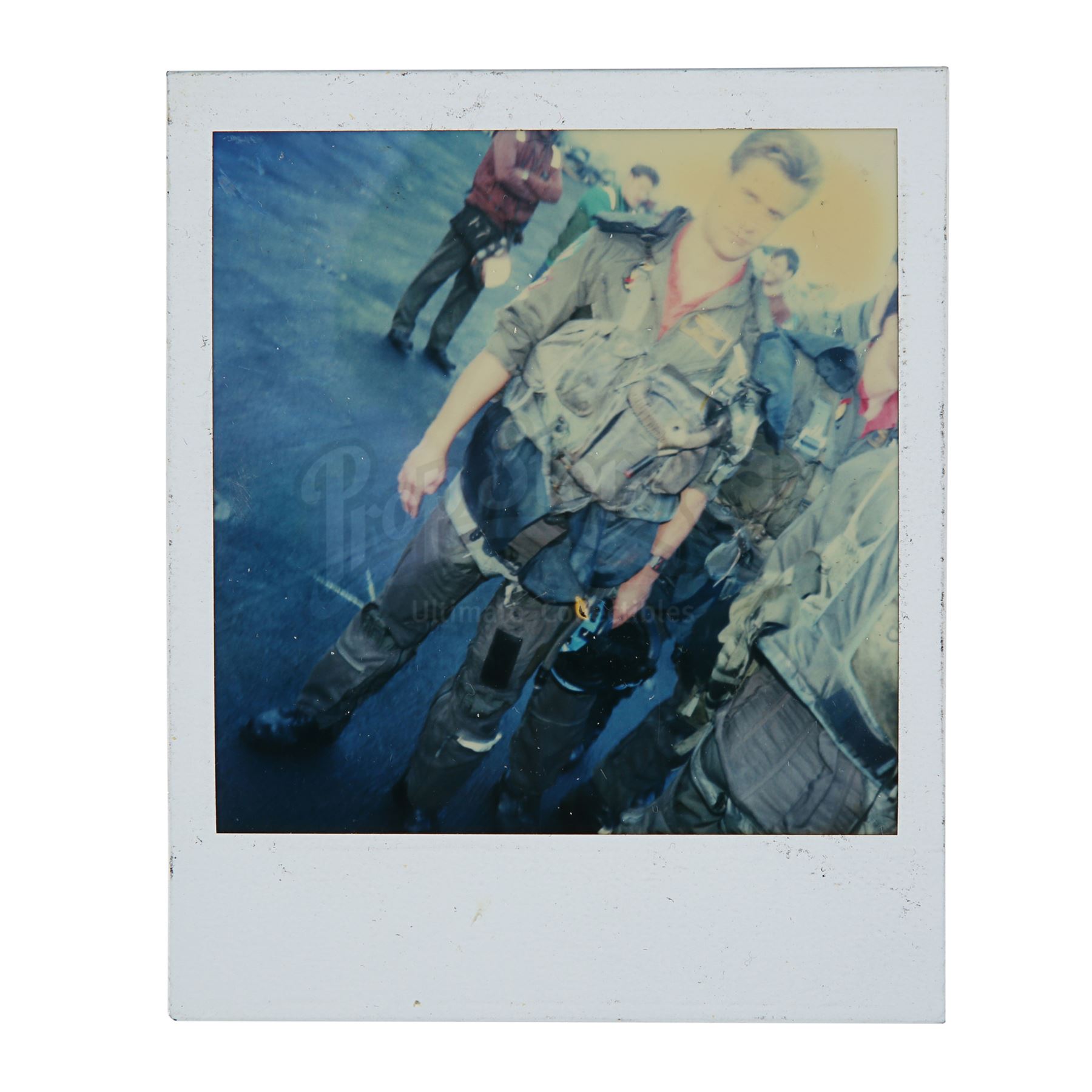 This lot will be auctioned on Thursday, July 1st. The auction will begin at 9:00am PDT and lots are sold sequentially via live auctioneer; tune in to the live streaming broadcast on auction day to follow the pace. Note other lots in the auction may close on June 29th or June 30th. Maverick (Tom Cruise), Charlie (Kelly McGillis) and principle cast continuity Polaroids from the production of Tony Scott's action film Top Gun. Taken on set and during various costume fittings, these Polaroids were used as a reference to assist the wardrobe department. The lot consists of six color images showing Maverick (Tom Cruise), Charlie (Kelly McGillis), Wolfman (Barry Tubb), Slider (Rick Rossovich), Merlin (Tim Robbins), and Hollywood (Whip Hubley). There are signs of minor wear from production use, including light scratches, several marks, and the color has faded over time on a couple of the images. They remain in good overall condition. Dimensions: (each) 4.25" x 3.5"(11 cm x 9 cm) Estimate: $2,000 - 3,000