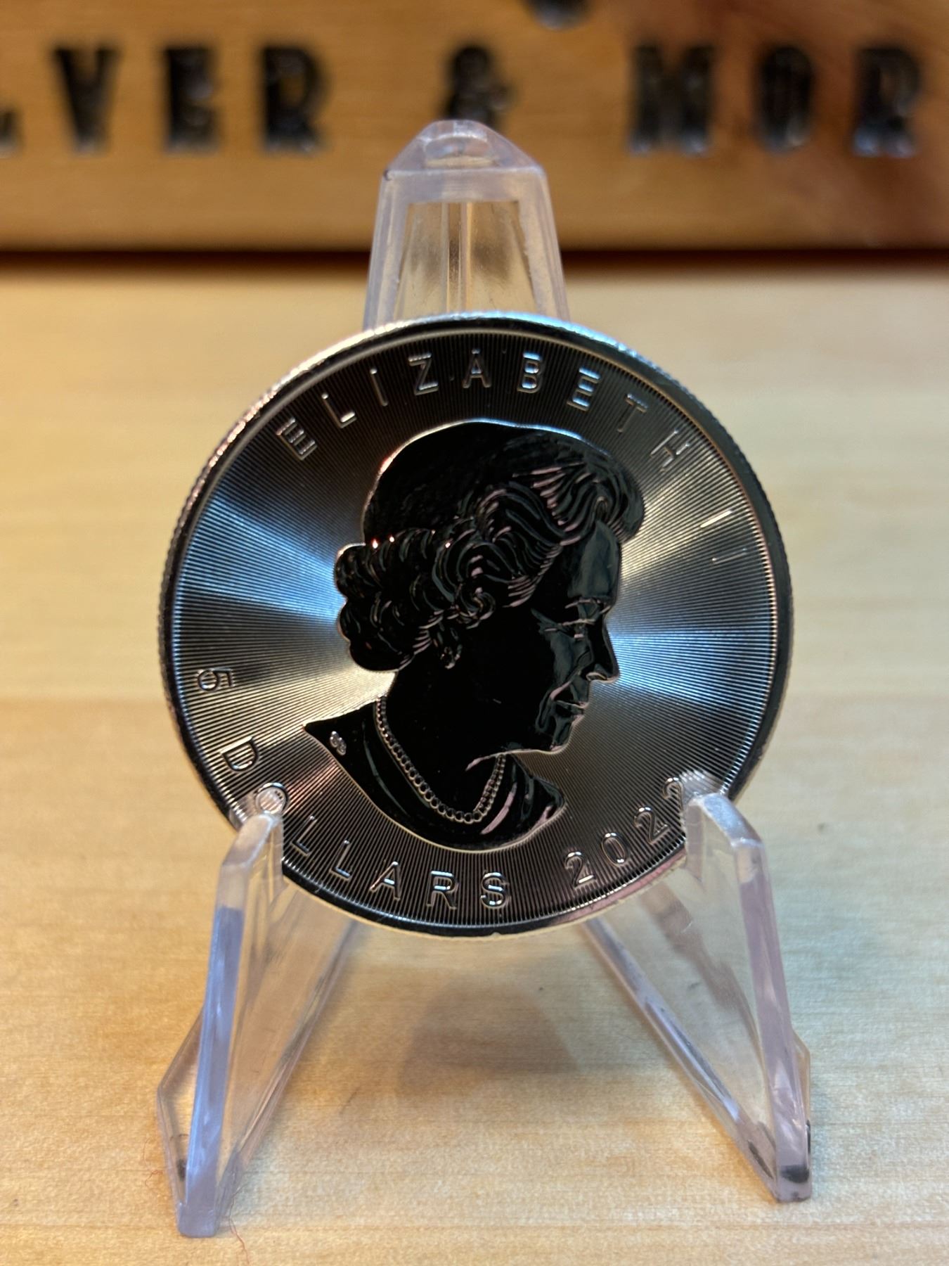 The 2022 1 oz Canadian Silver Maple Leaf is a .9999 fine silver coin featuring King Charles III on the obverse and the iconic maple leaf on the reverse. With advanced security features and MINTSHIELD™ protection, it’s perfect for collectors and investors.