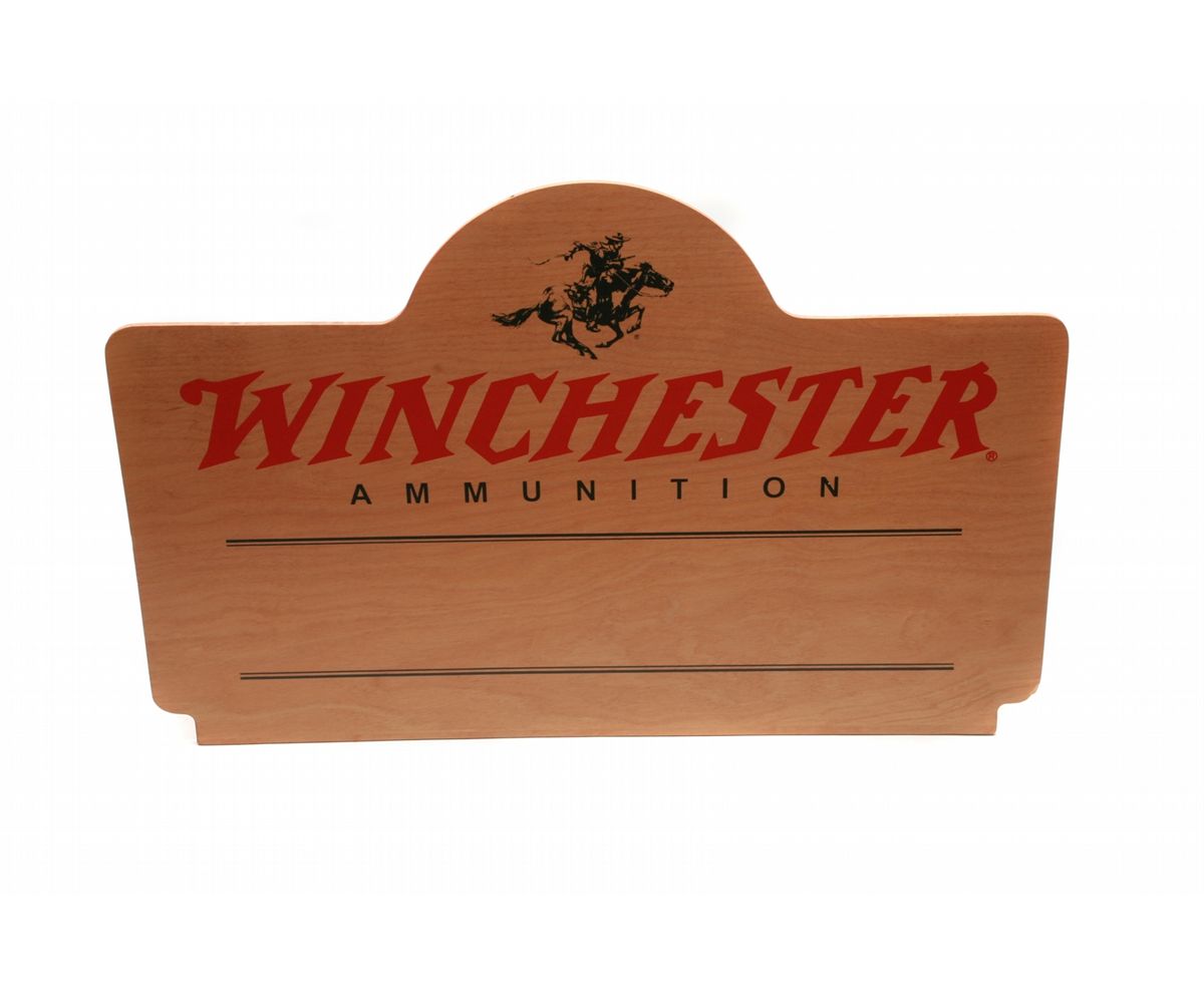 24"x16" wood Winchester rack sign for Ammunition stand - light color wood with Red & Black Winchester & Rider Logo like new condition with slight handling marks to right lower corner - non-ffl - 25VVFKIL119