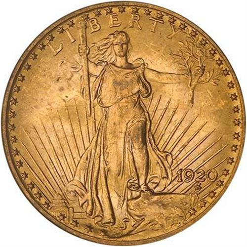 1920 $20 St. Gaudens. Uncommonly smooth with fully metallic, golden-rose features underneath the toning. Minor discoloration on the breast and knee where it may have shifted against other coins in the bag, a common sight on these handsome, large gold pieces. (#9170)
